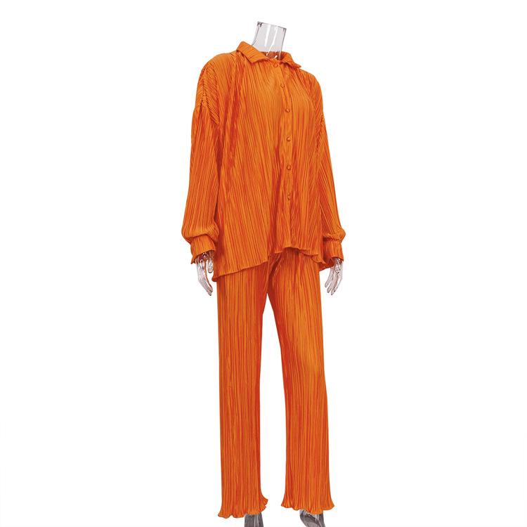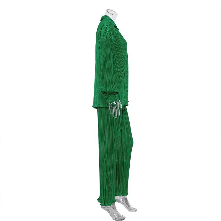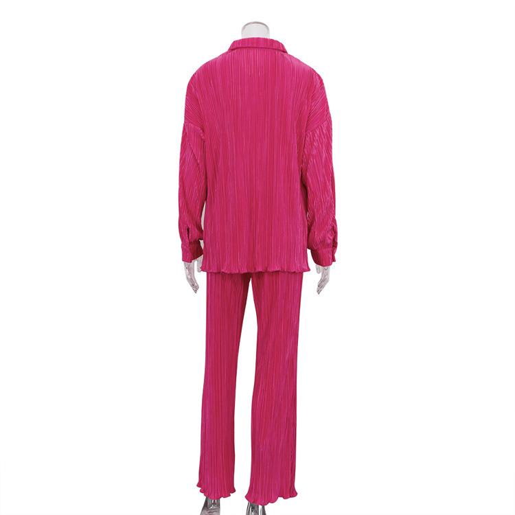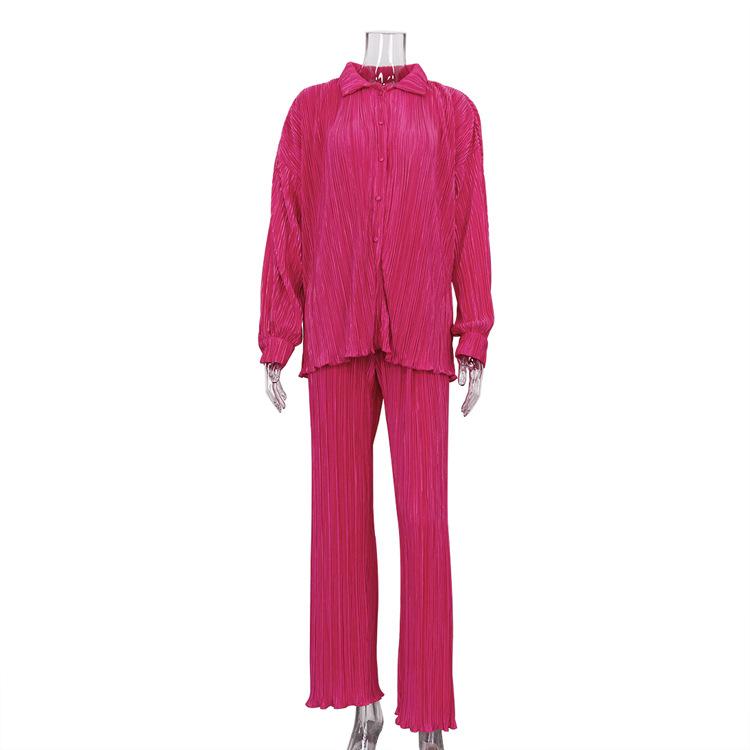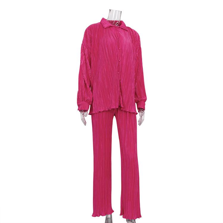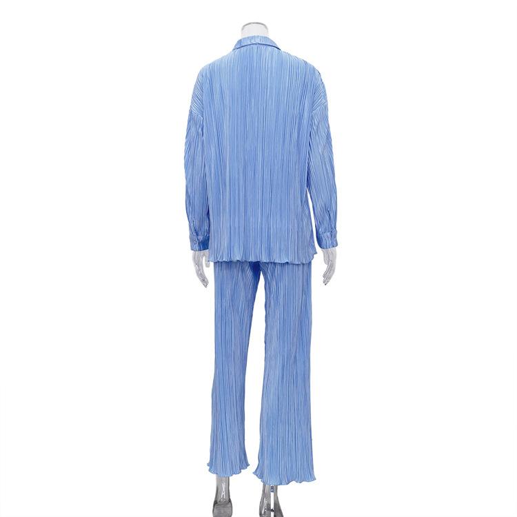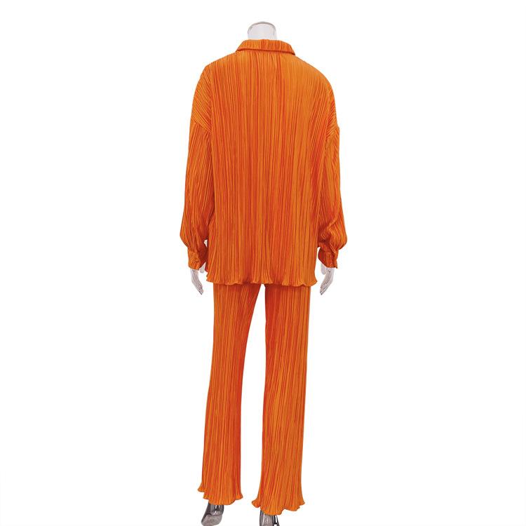 Traje casual de dos piezas para mujer europeo y americano 2023 de manga larga holgado plisado de pierna ancha otoño sexy sentido del diseño retro
