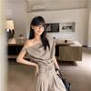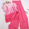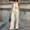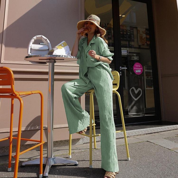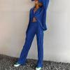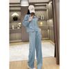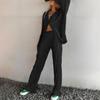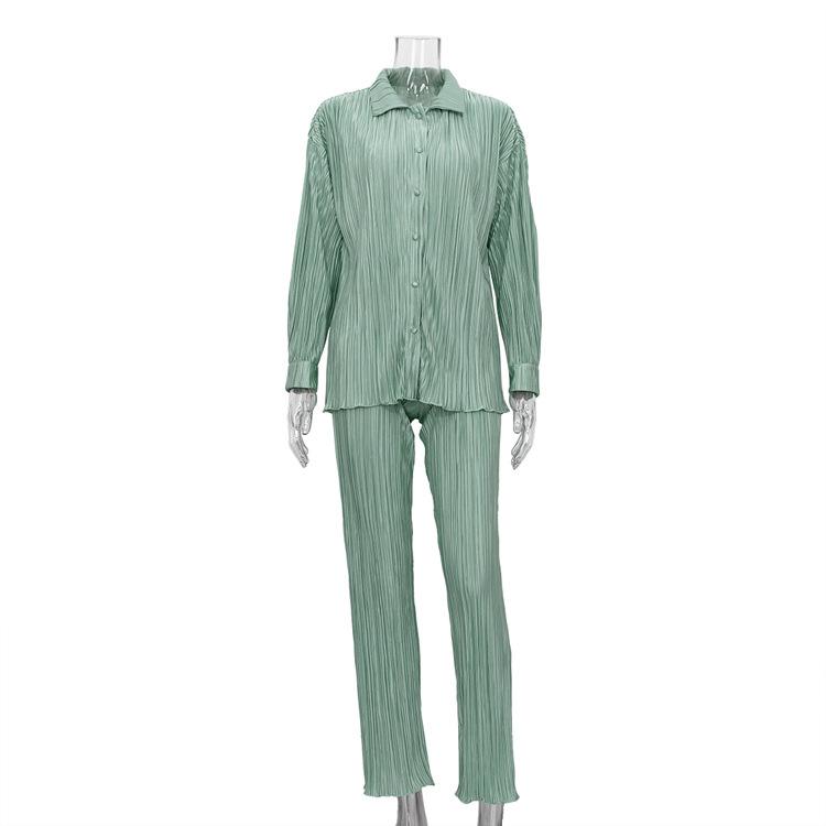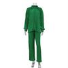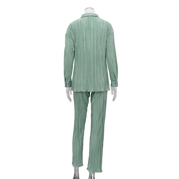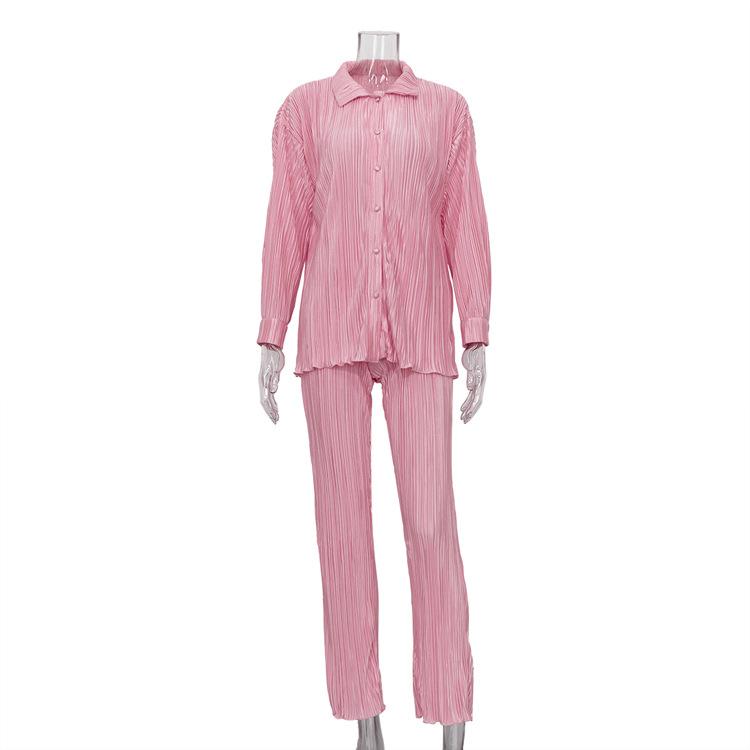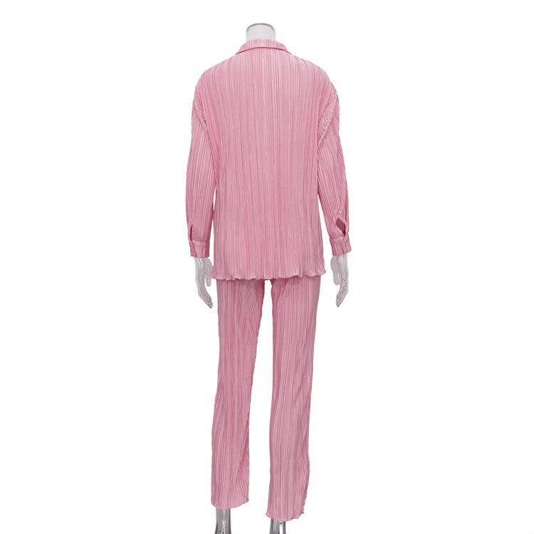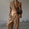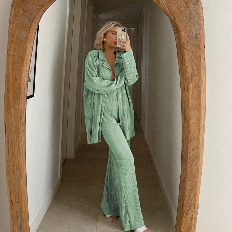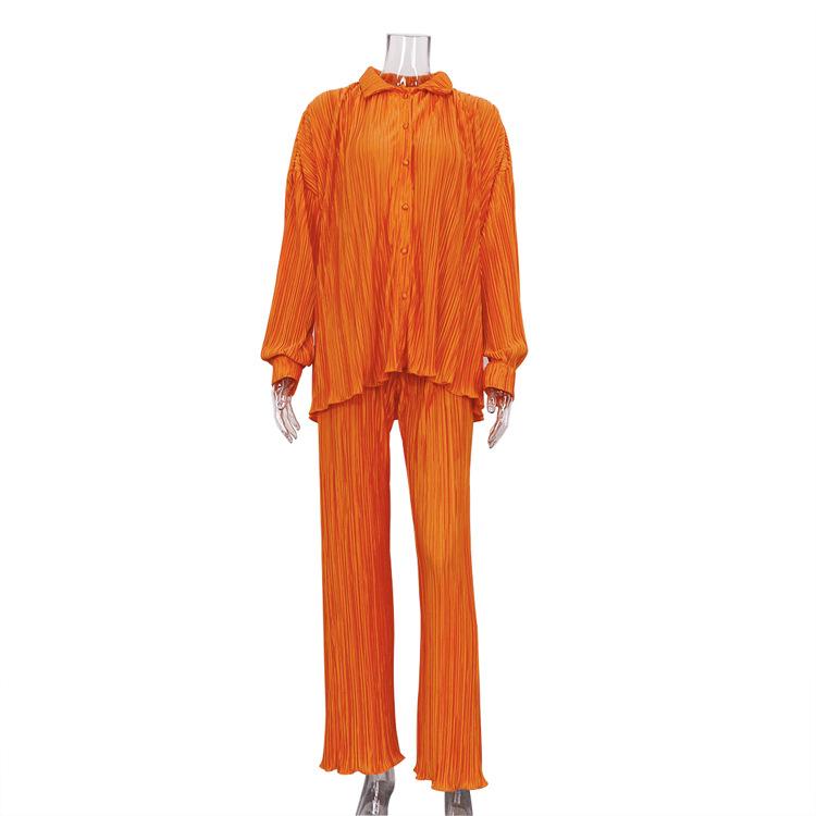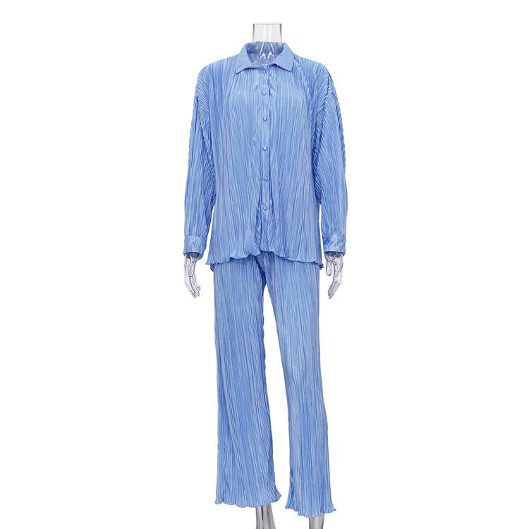 Traje casual de dos piezas para mujer europeo y americano 2023 de manga larga holgado plisado de pierna ancha otoño sexy sentido del diseño retro