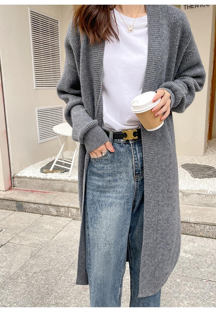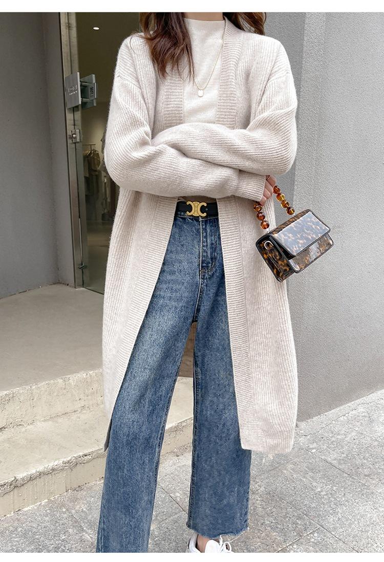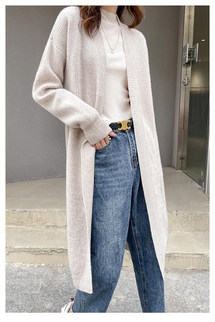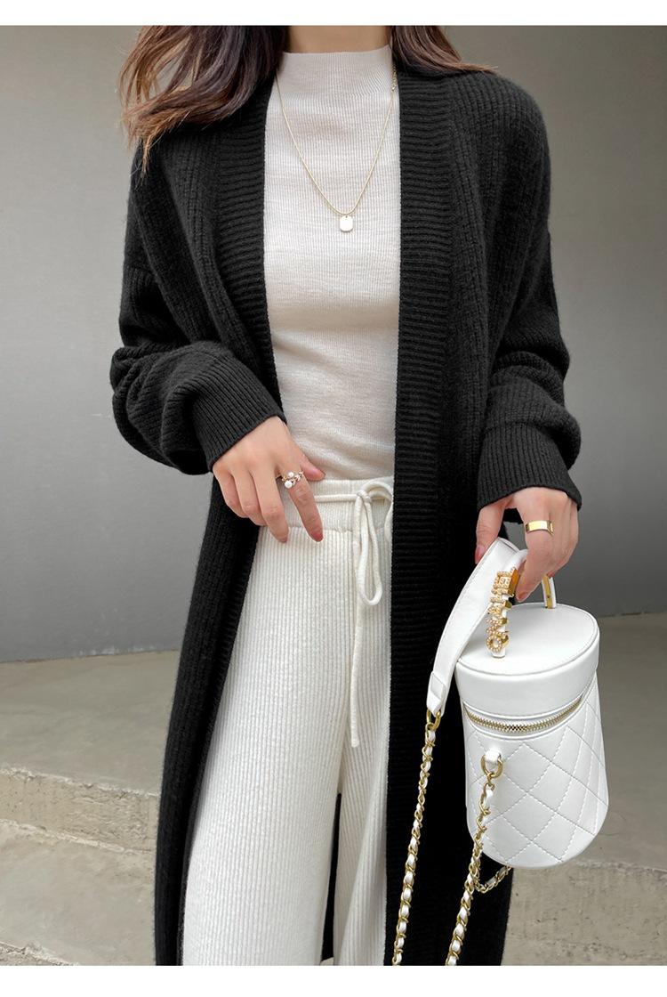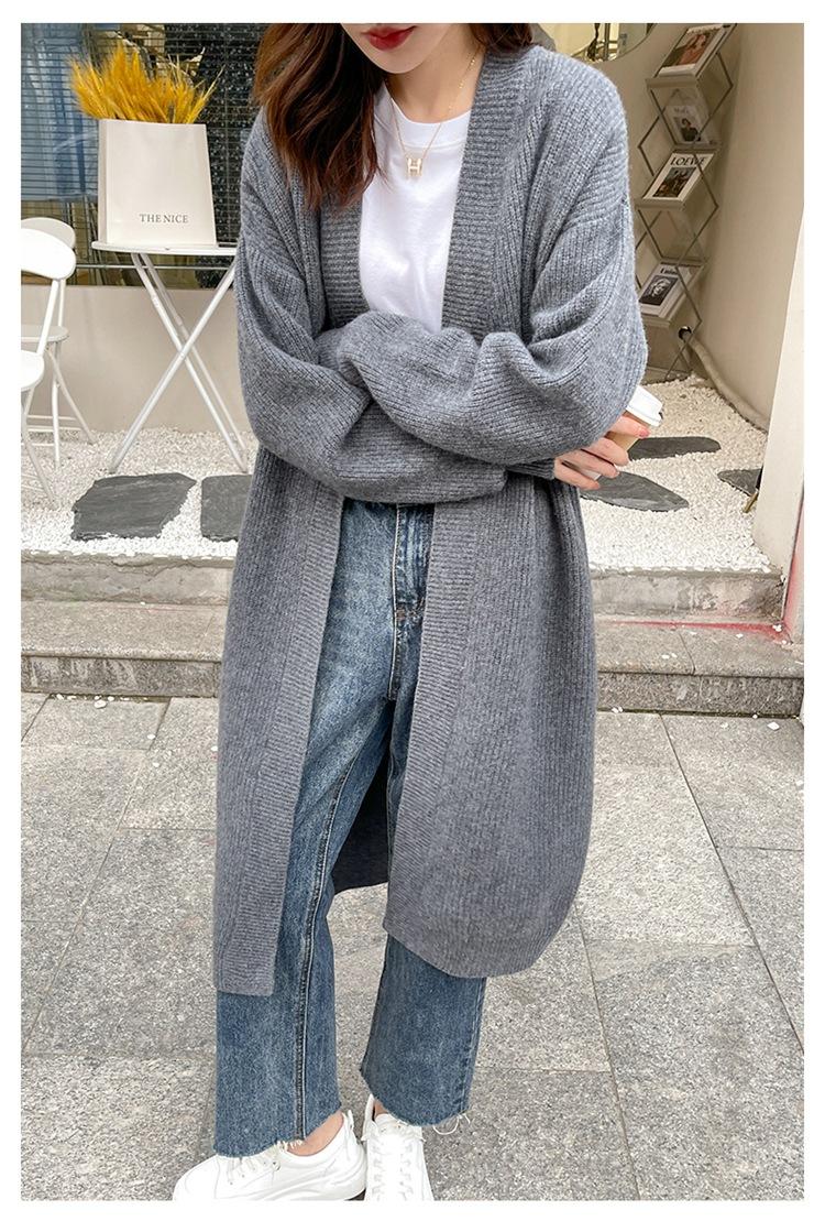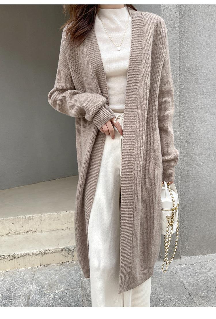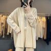 Cárdigan Tejido Holgado Estilo Perezoso Talla Grande Cuello en V Otoño e Invierno 2025 Nuevo Suéter Elegante de Color Puro Suelto Ropa Exterior para Mujer
