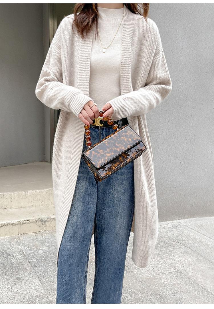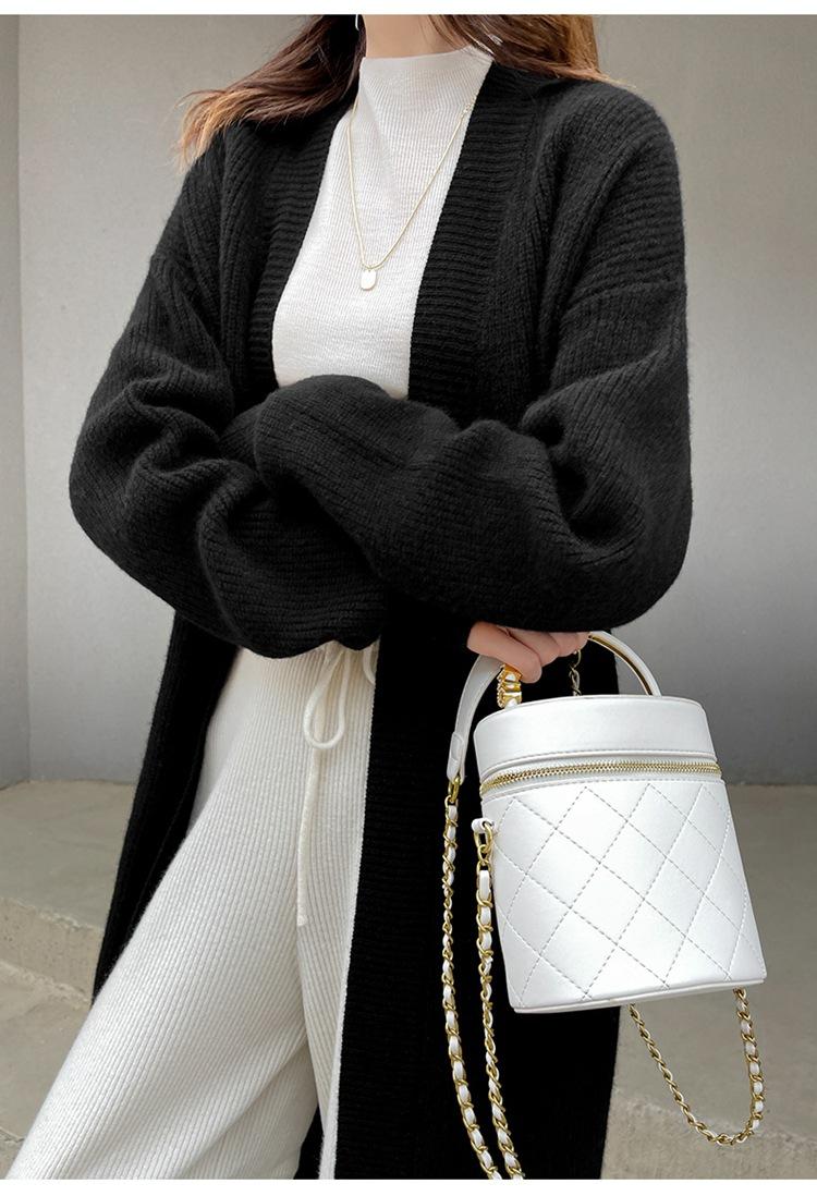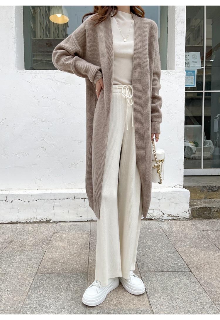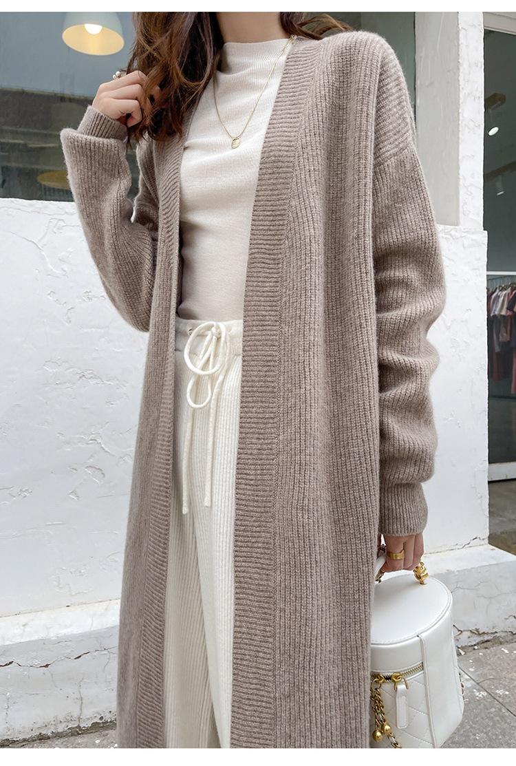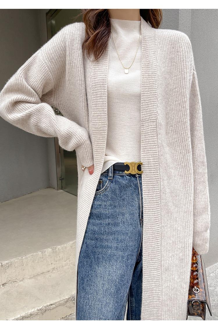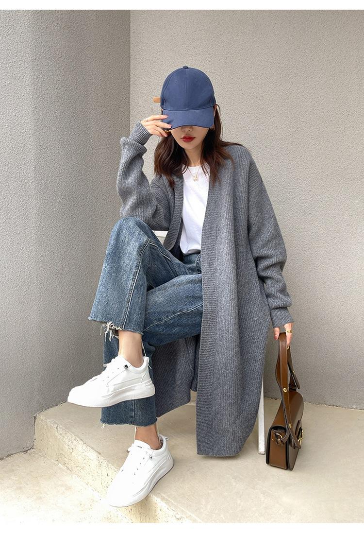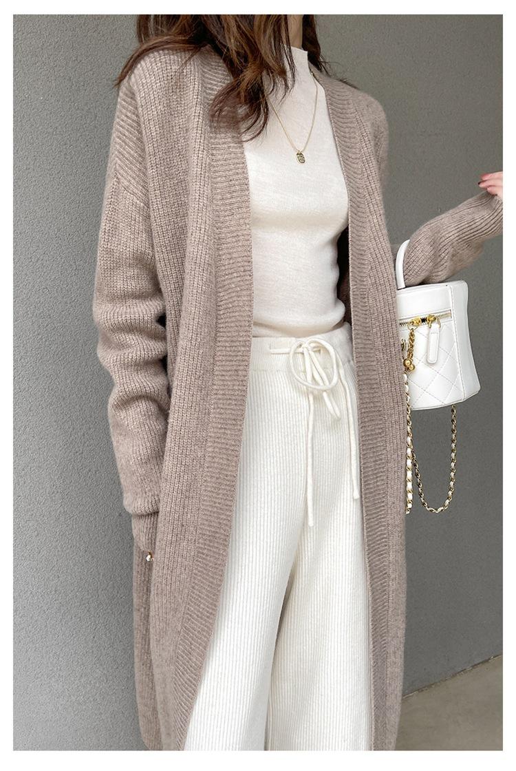 Cárdigan Tejido Holgado Estilo Perezoso Talla Grande Cuello en V Otoño e Invierno 2025 Nuevo Suéter Elegante de Color Puro Suelto Ropa Exterior para Mujer