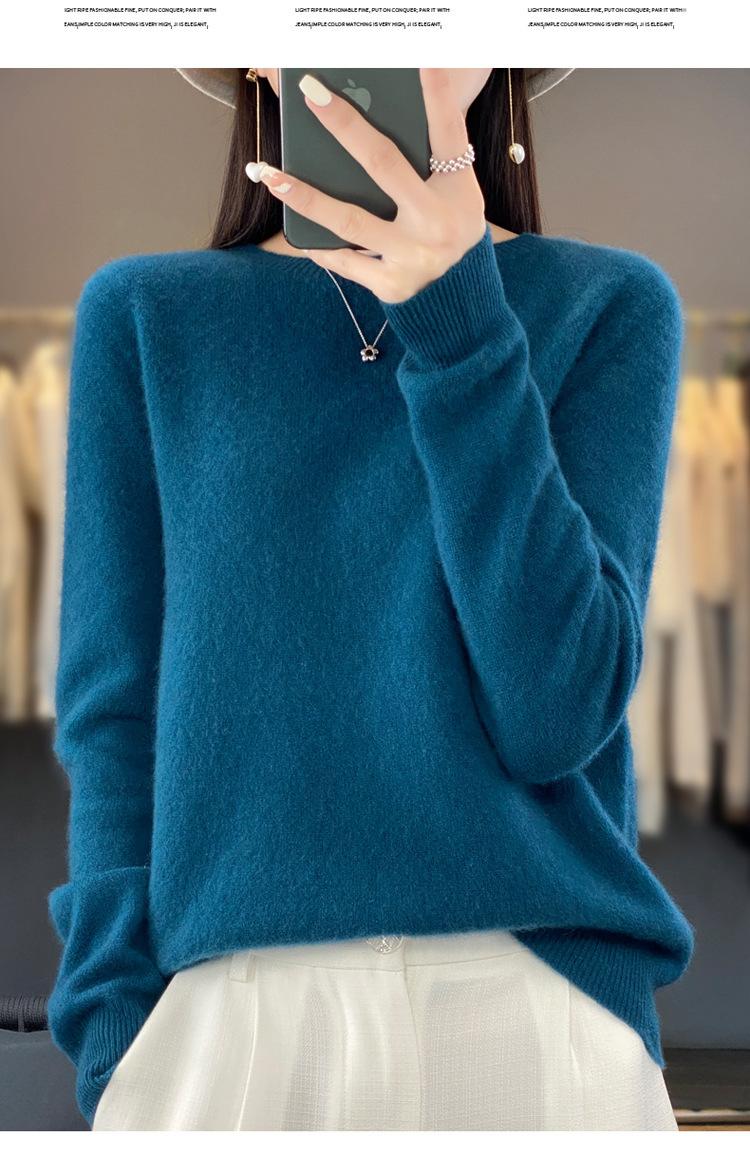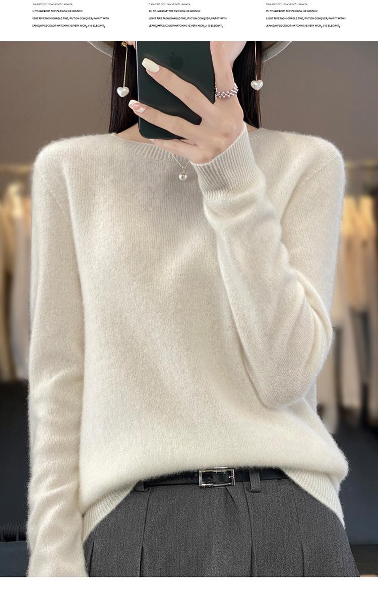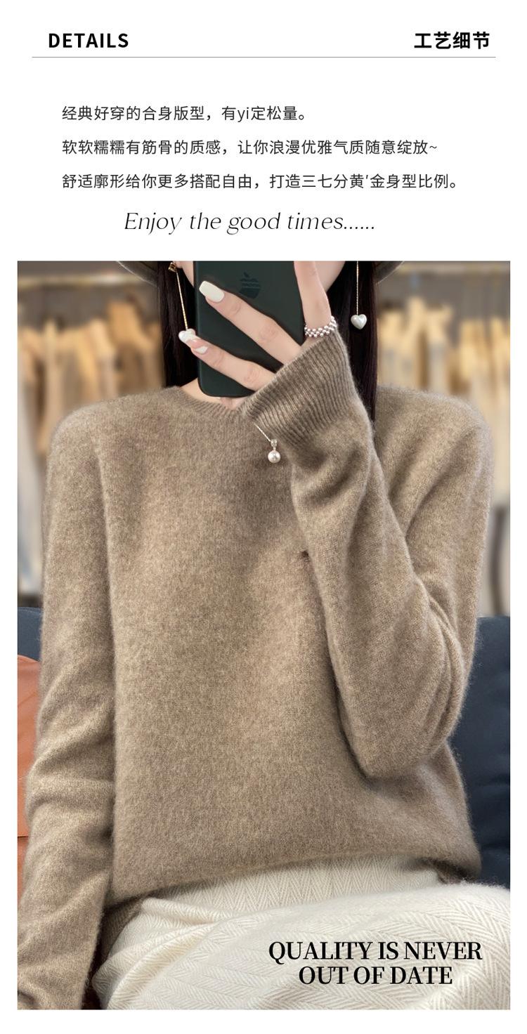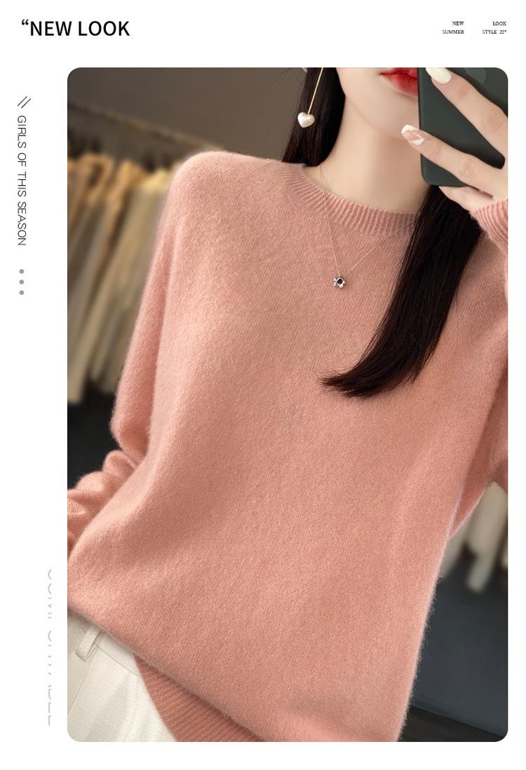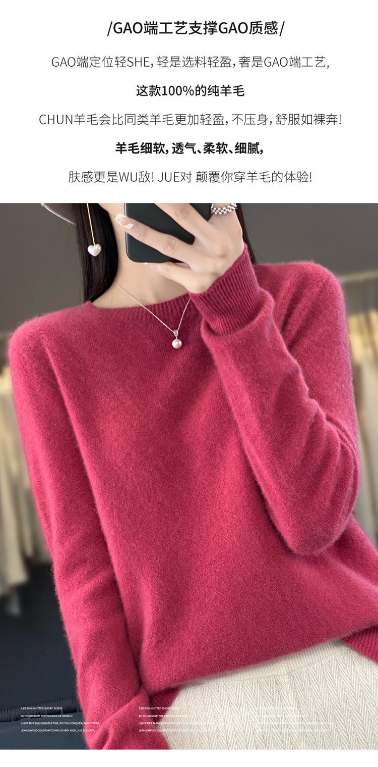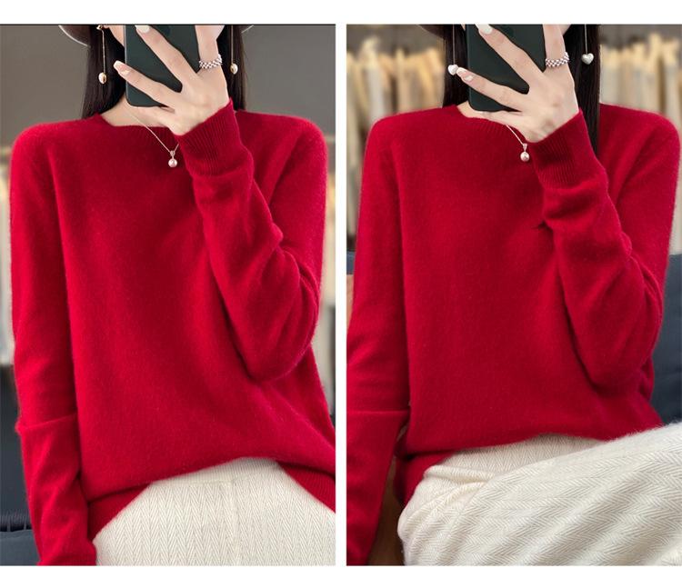 Ropa de primera línea lana pura color sólido cuello redondo suéter de punto holgado para fondo otoño e invierno Nuevo suéter de lana ropa interior para mujer