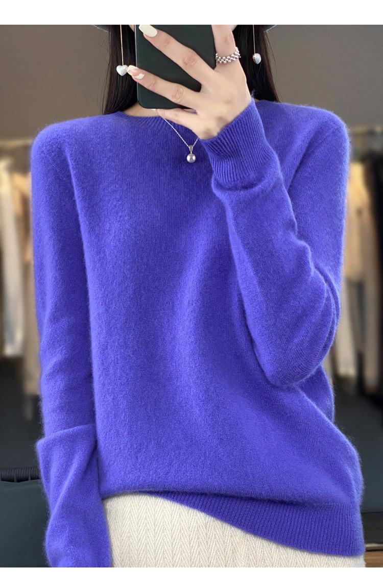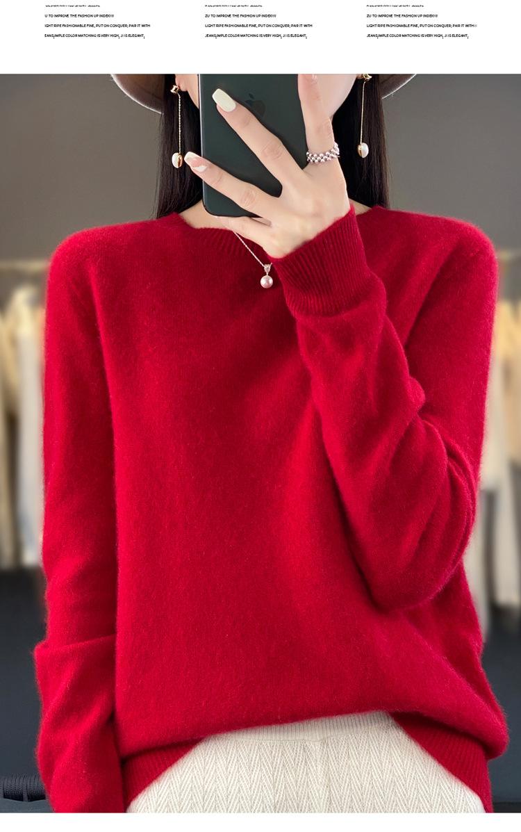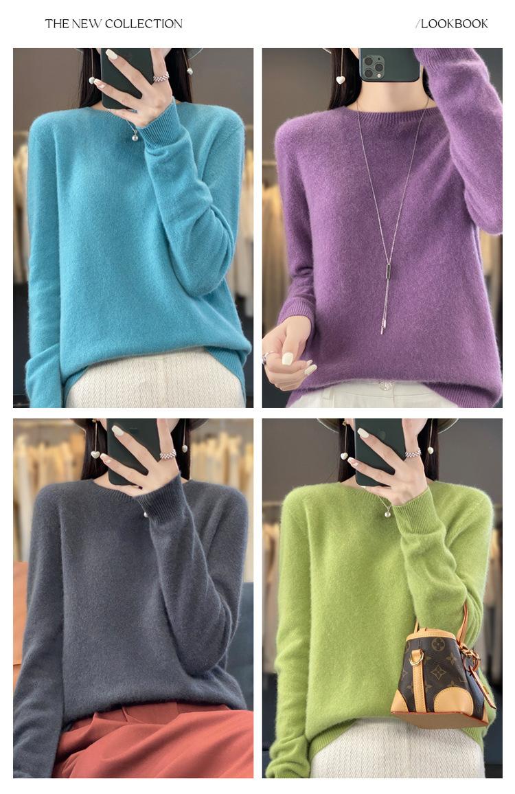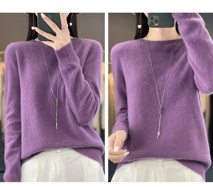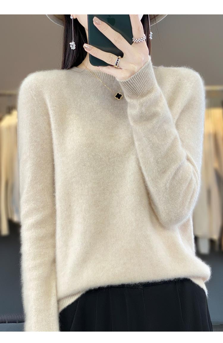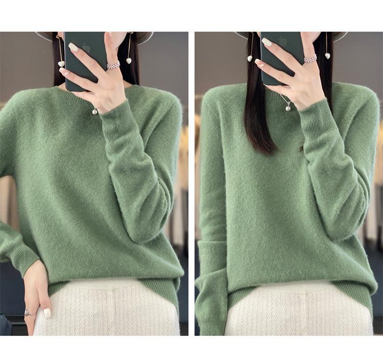 Ropa de primera línea lana pura color sólido cuello redondo suéter de punto holgado para fondo otoño e invierno Nuevo suéter de lana ropa interior para mujer