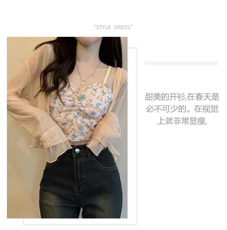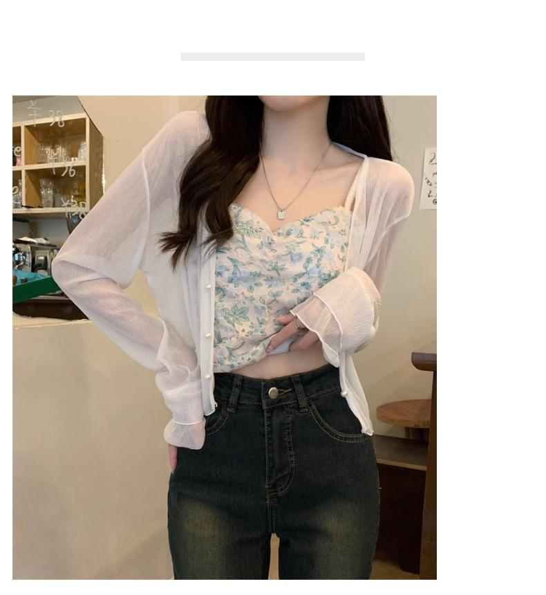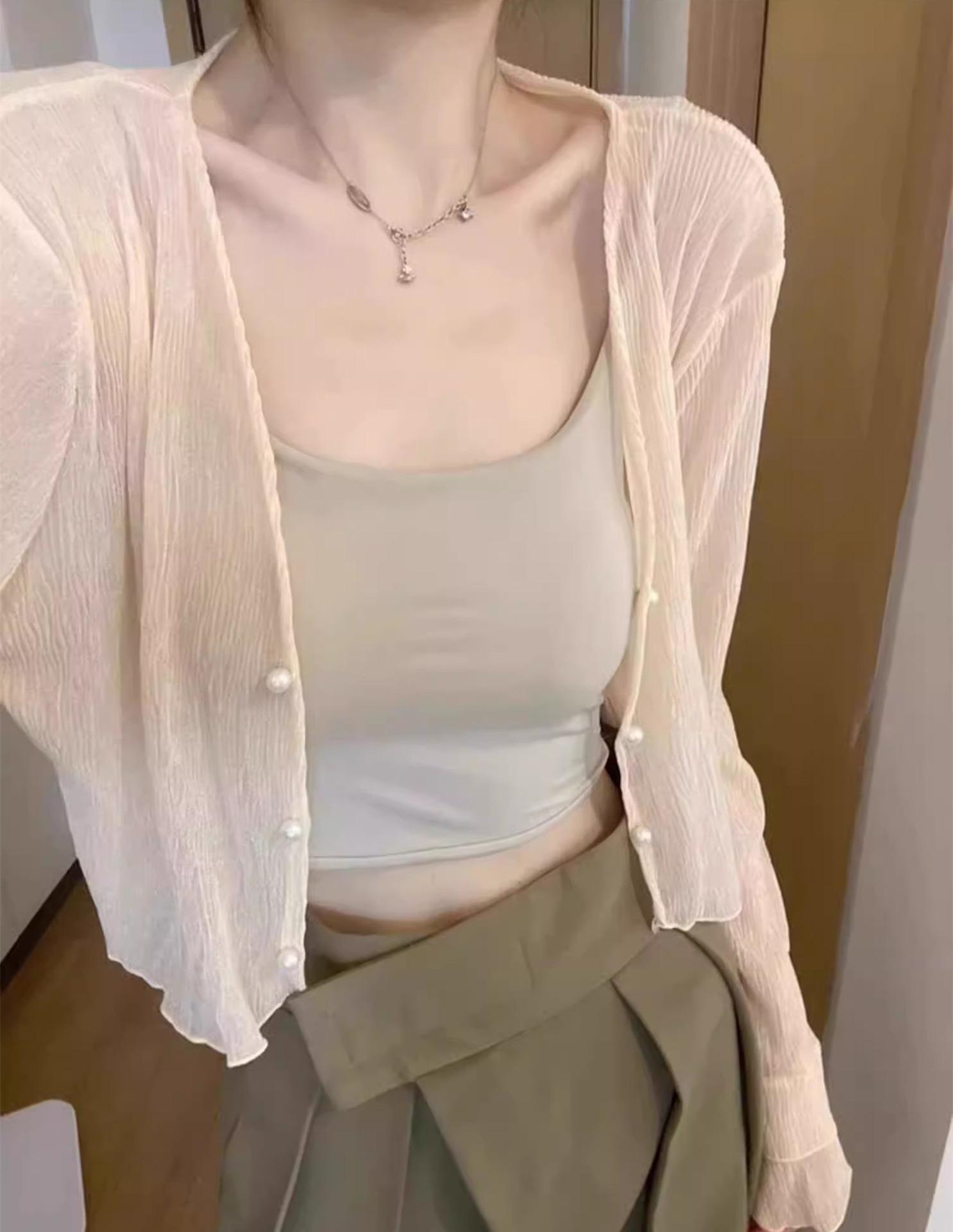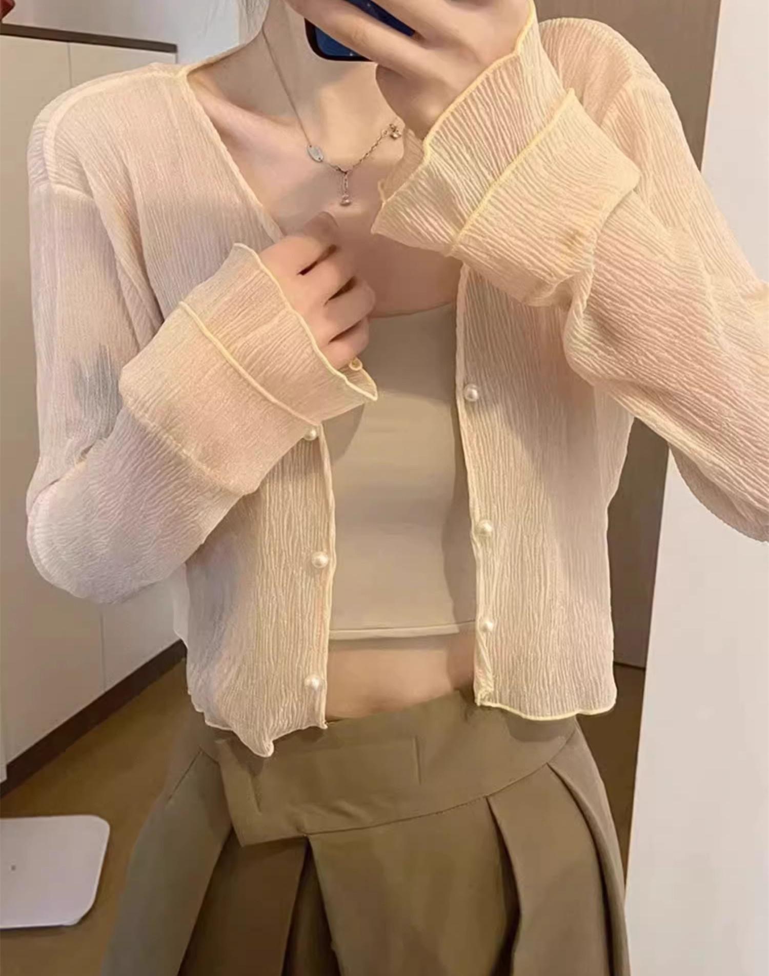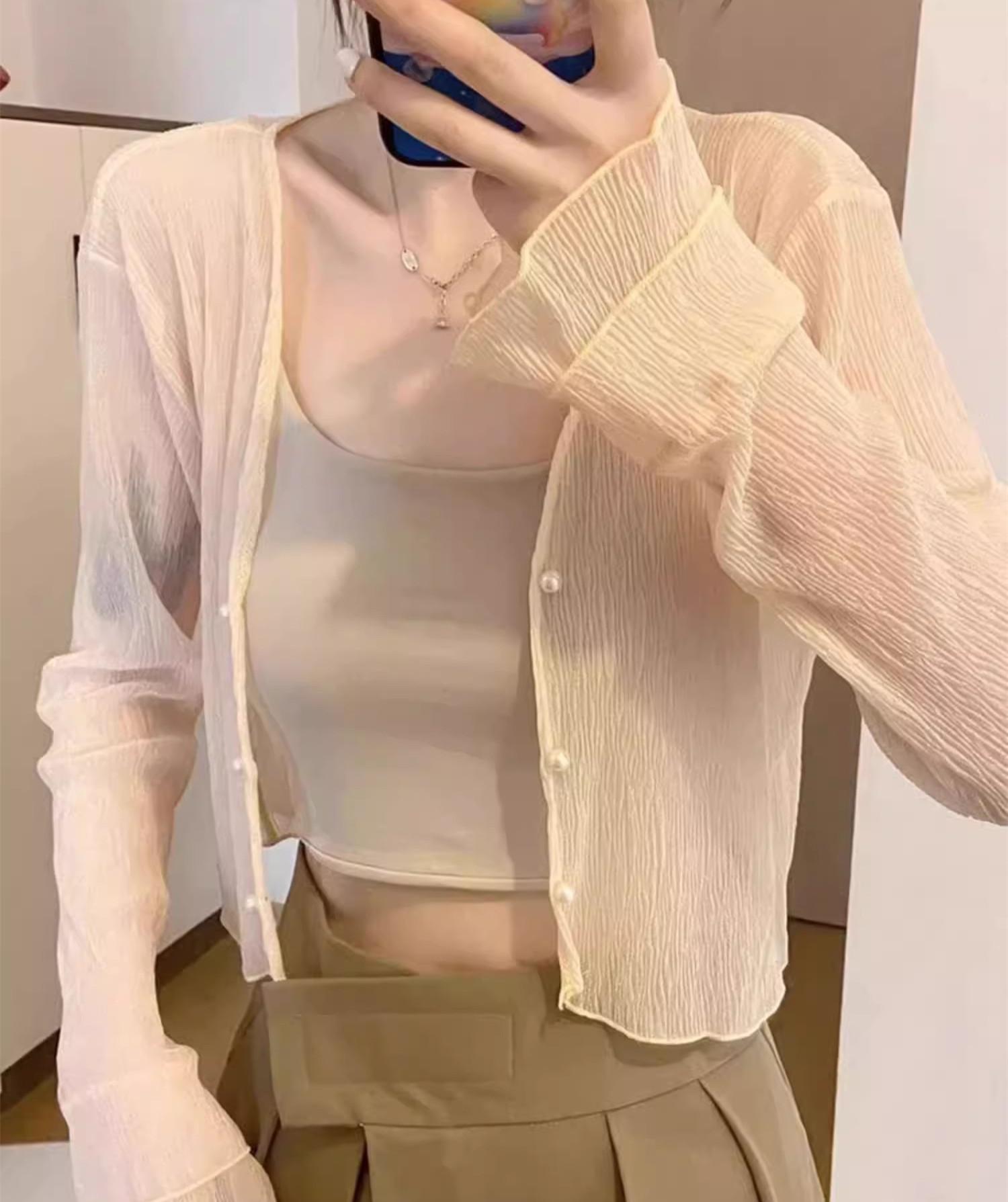 Nuevo estilo 2025, estilo francés de verano, cárdigan pequeño de gasa con protector solar de manga larga para mujer, para playa, con aire acondicionado