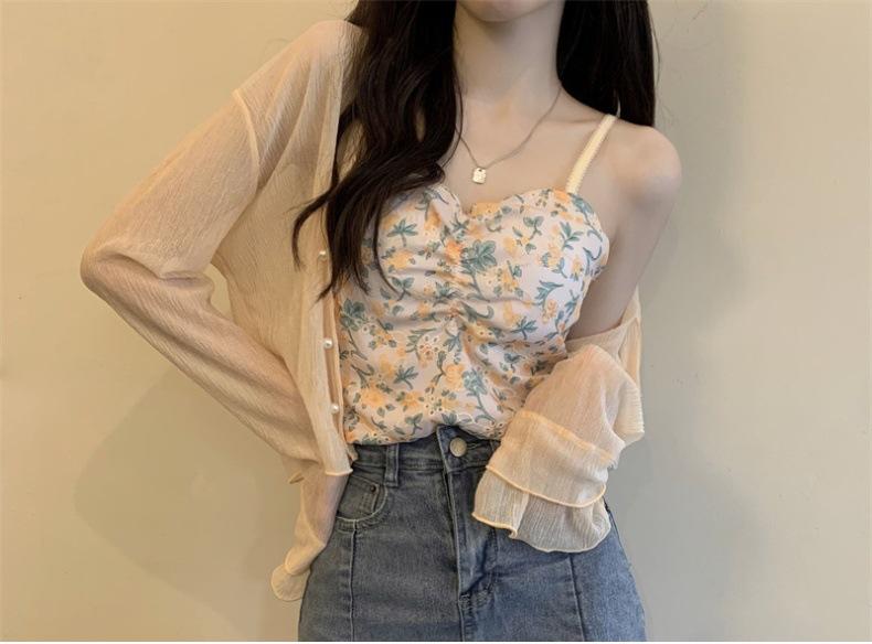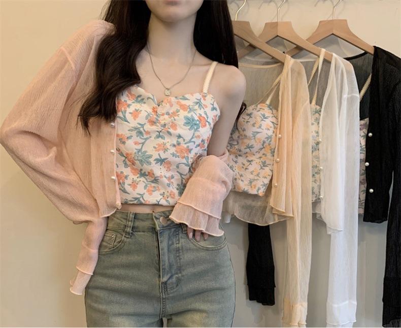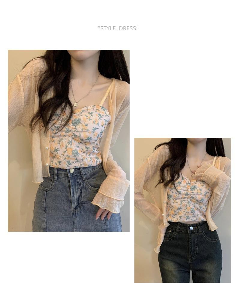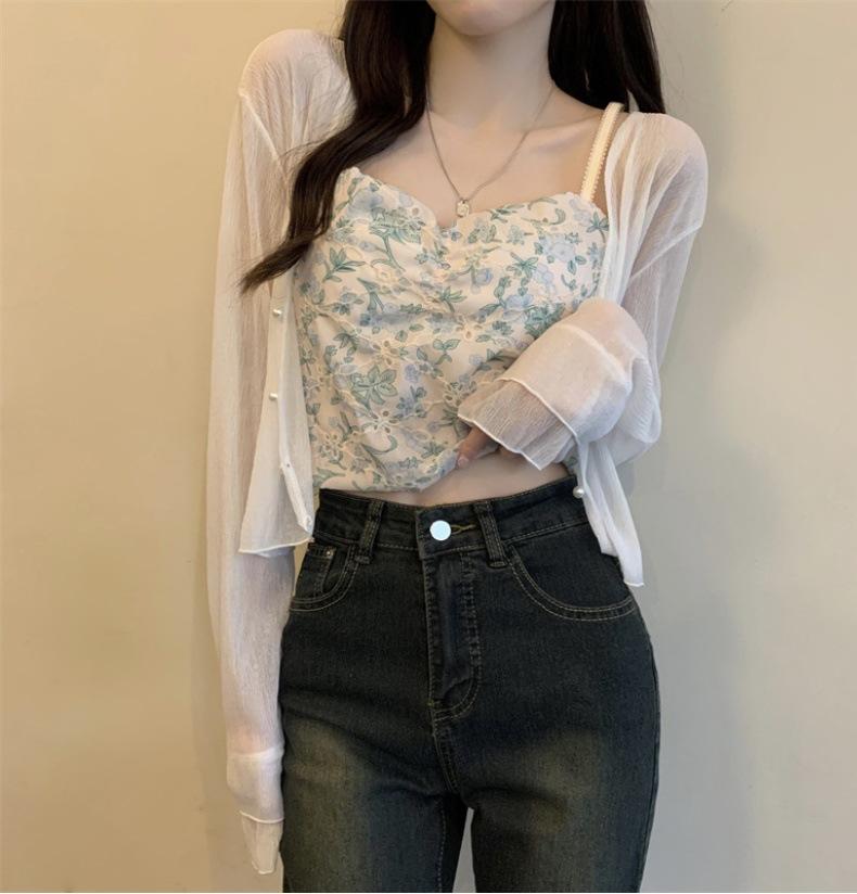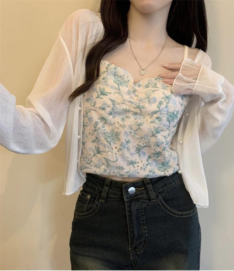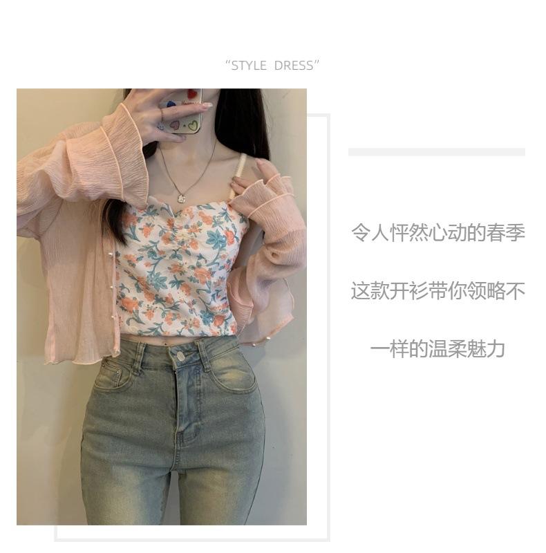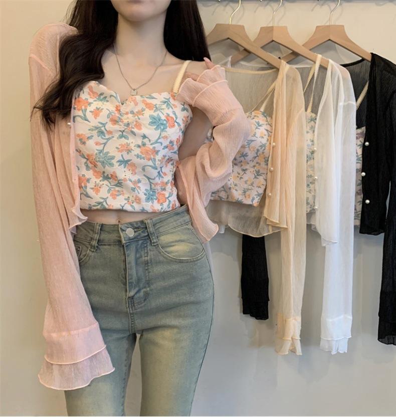Nuevo estilo 2025, estilo francés de verano, cárdigan pequeño de gasa con protector solar de manga larga para mujer, para playa, con aire acondicionado