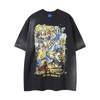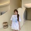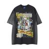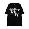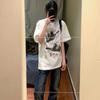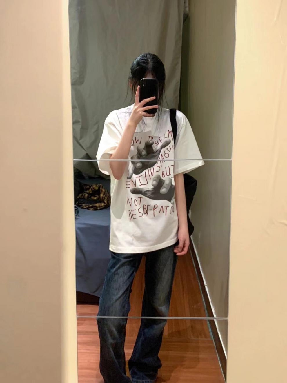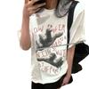 Camiseta de manga corta con estampado de letras de dedo retro americano para niña, cuello redondo, suelta, estilo hip-hop, de algodón, informal, de verano