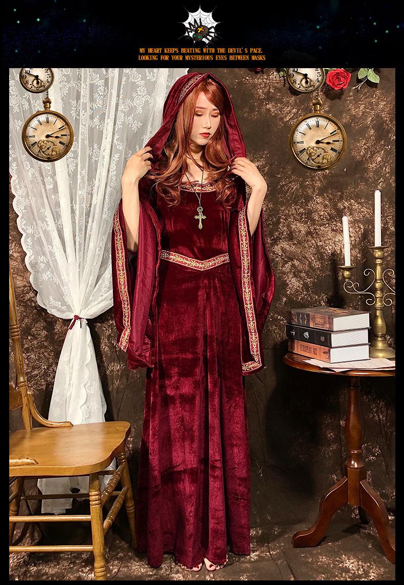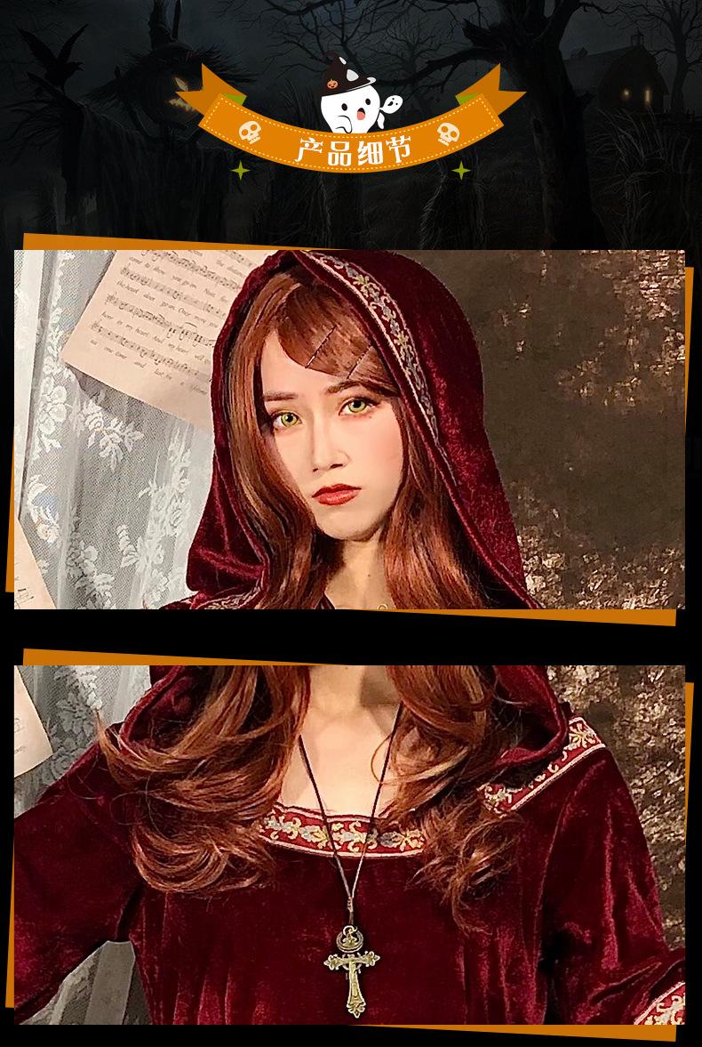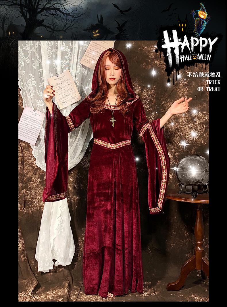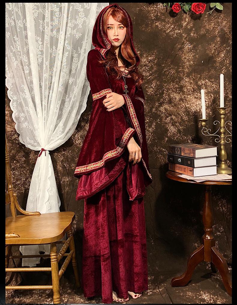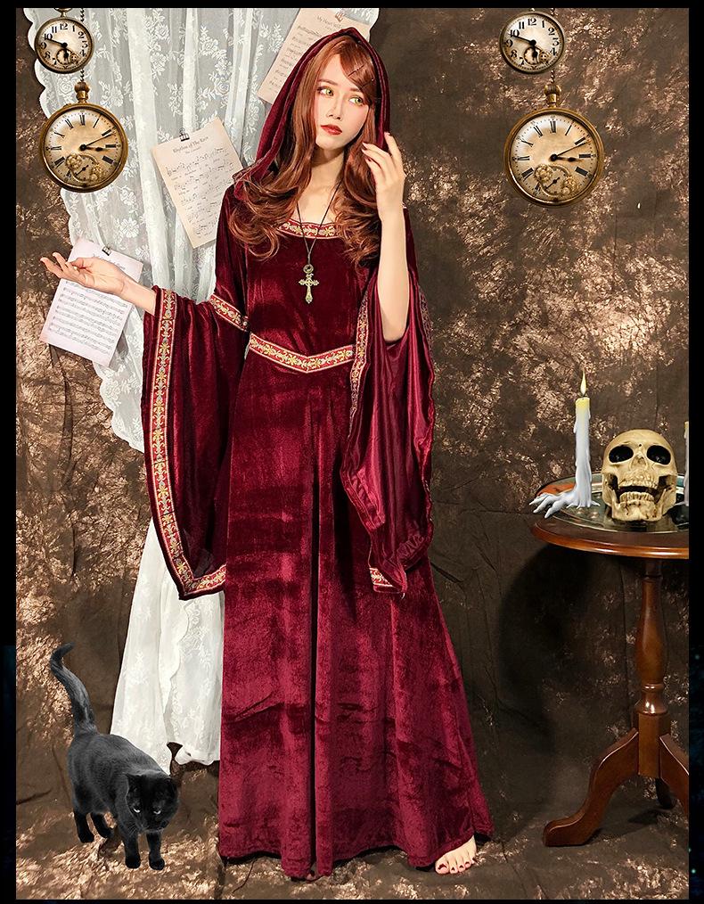 Disfraz de Cosplay para Adulto de Halloween Novia Fantasma Roja Vampiro con Capucha Falda Larga Mago Bruja Bata