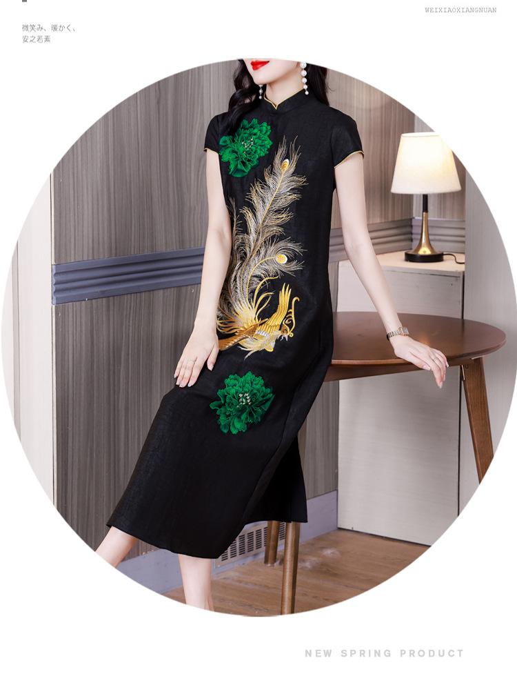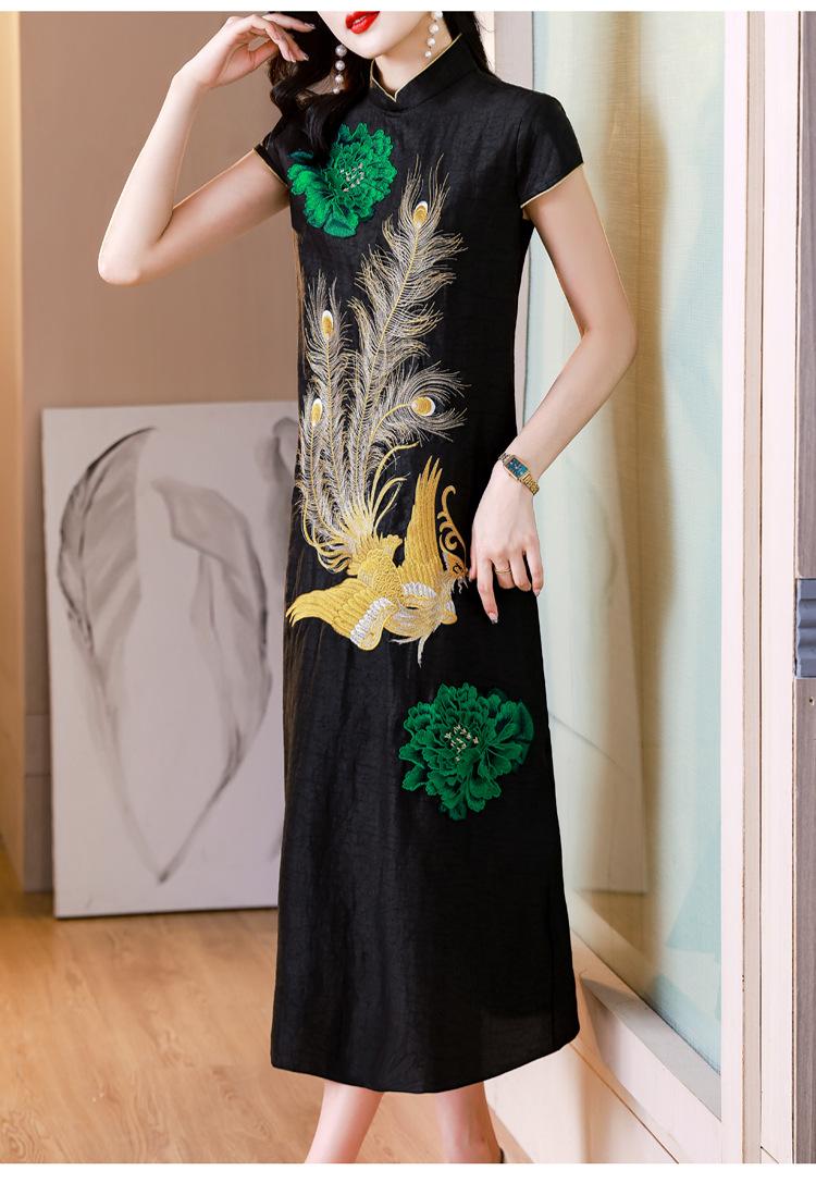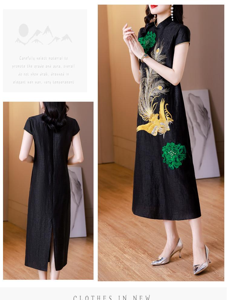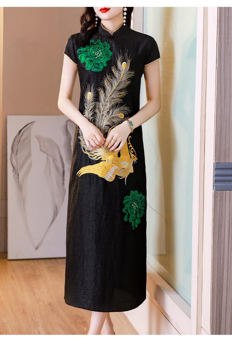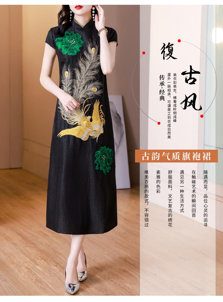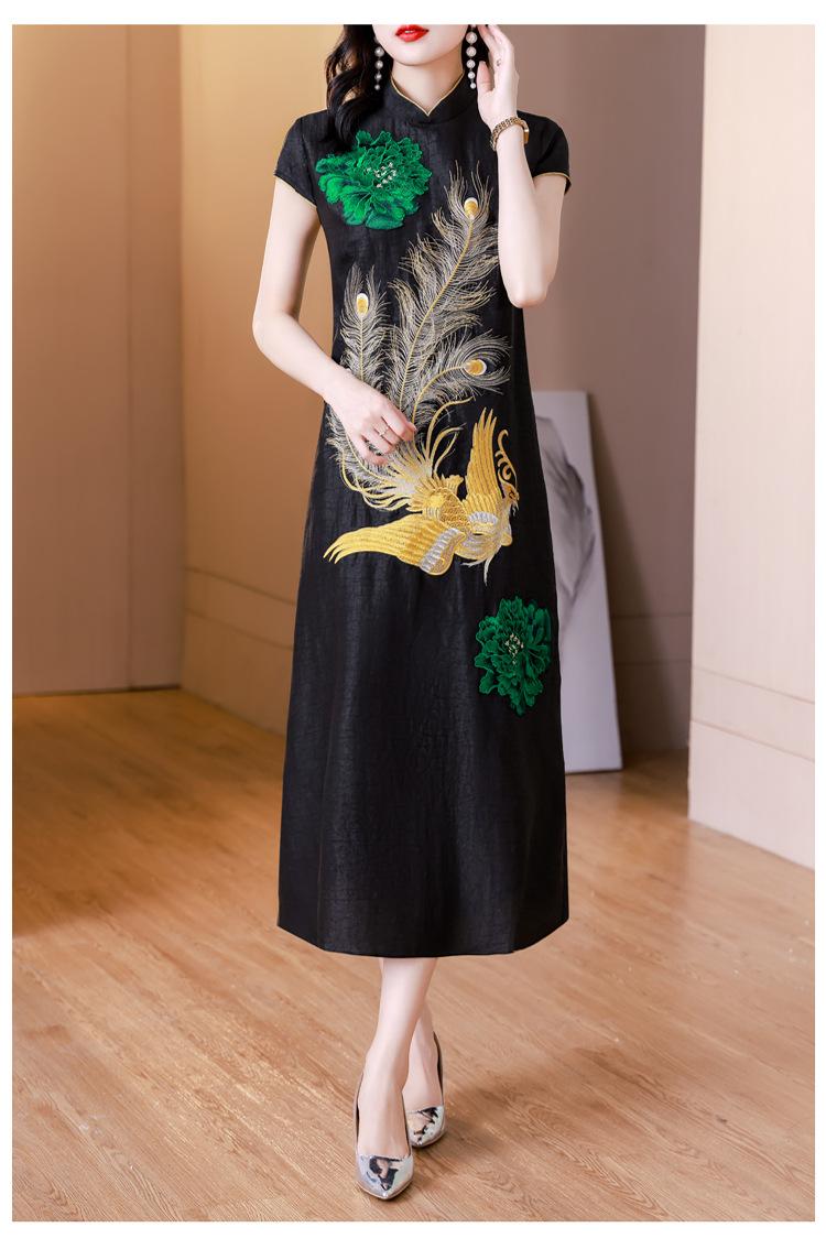 Nuevo vestido de seda morera de estilo chino para mujer, verano 2023, nuevo vestido cheongsam bordado elegante de estilo chino retro