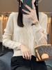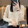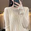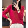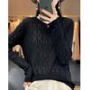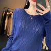 Suéter hueco de lana para mujer, otoño e invierno, suéter holgado de cuello redondo con temperamento, camisa de fondo, suéter al por mayor, 2023