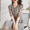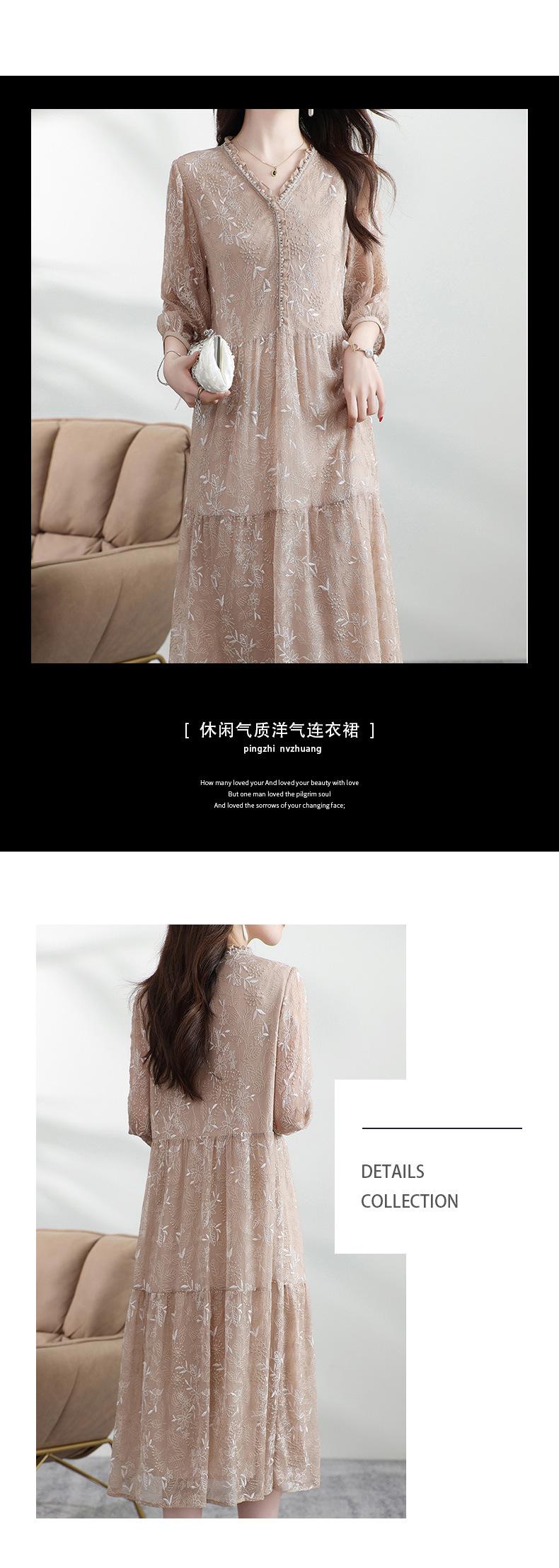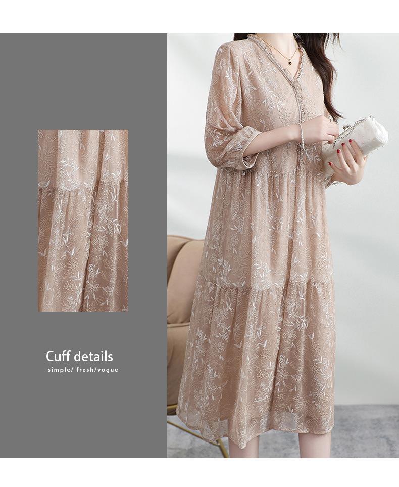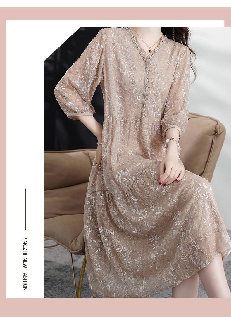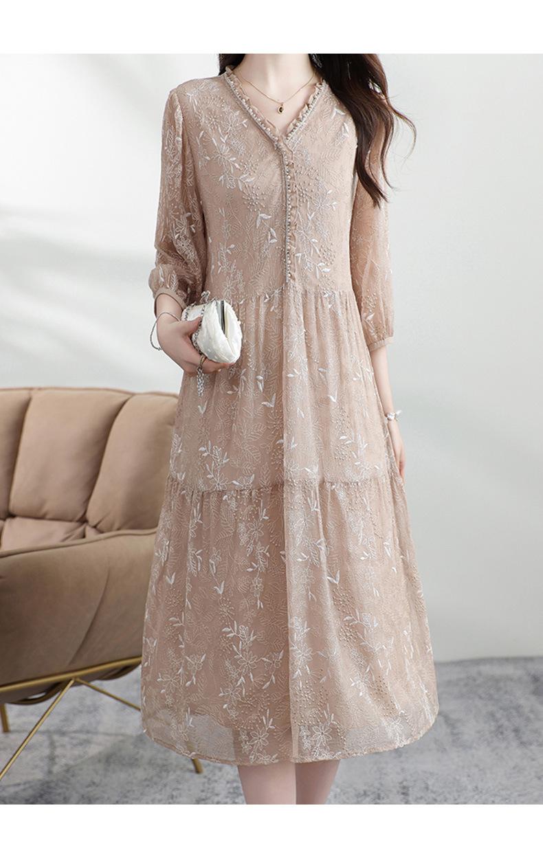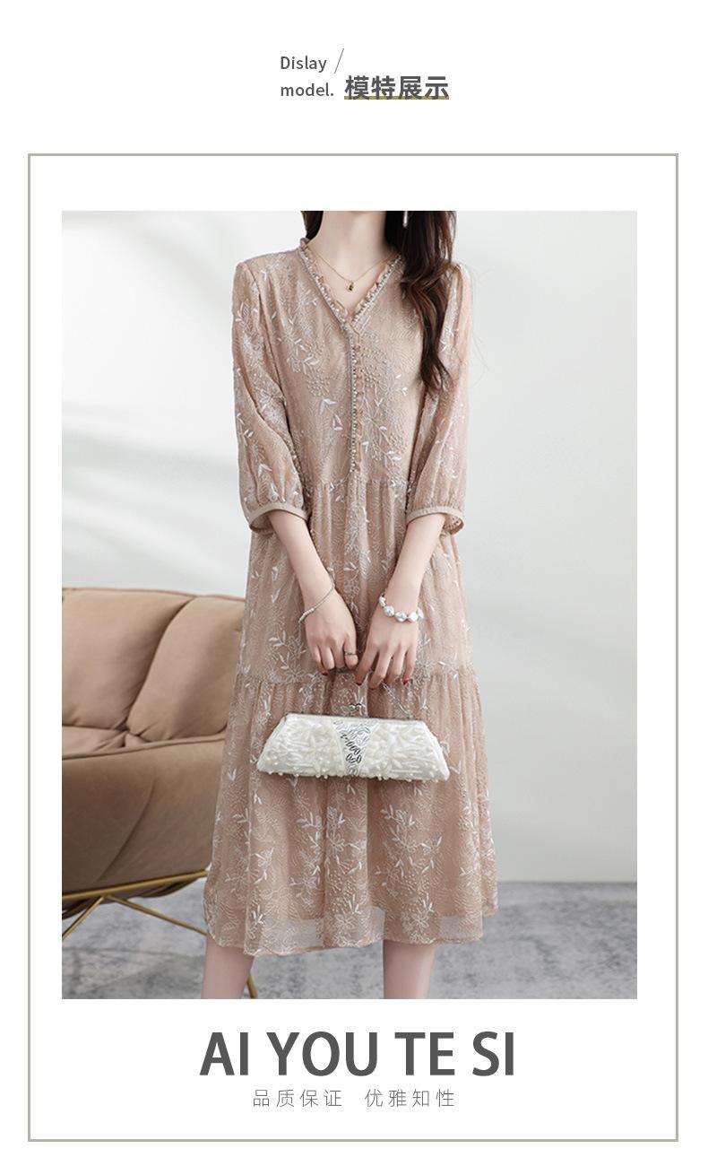 Vestido de seda morera bordado estilo francés con escote en V suave, elegante, largo medio, suelto, para mujer, verano