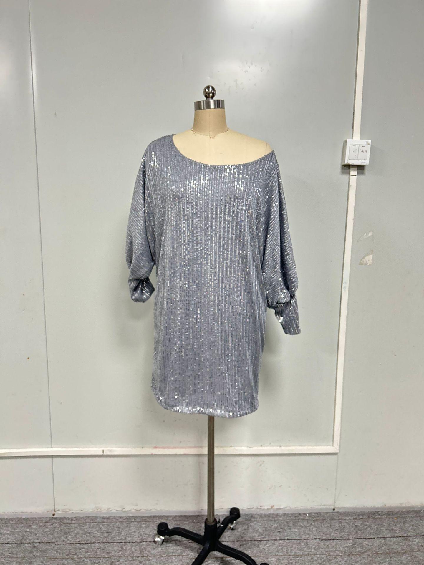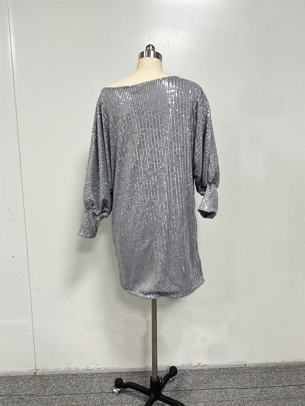 Primavera y verano 2025 nueva ropa de mujer de comercio exterior transfronterizo moda simple cuello en V falda hombro oblicuo vestido de cuentas vestido