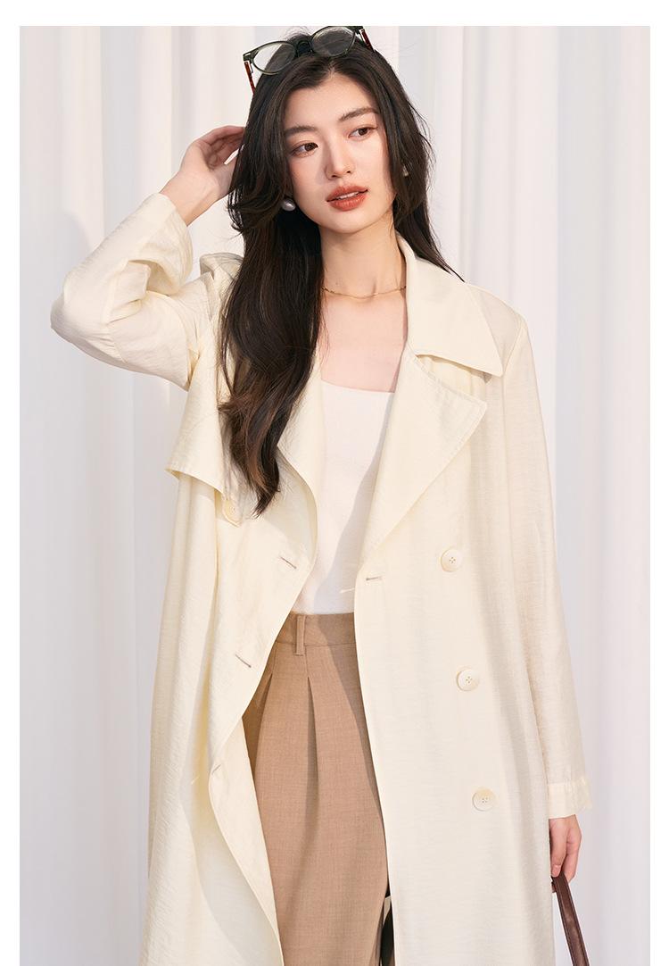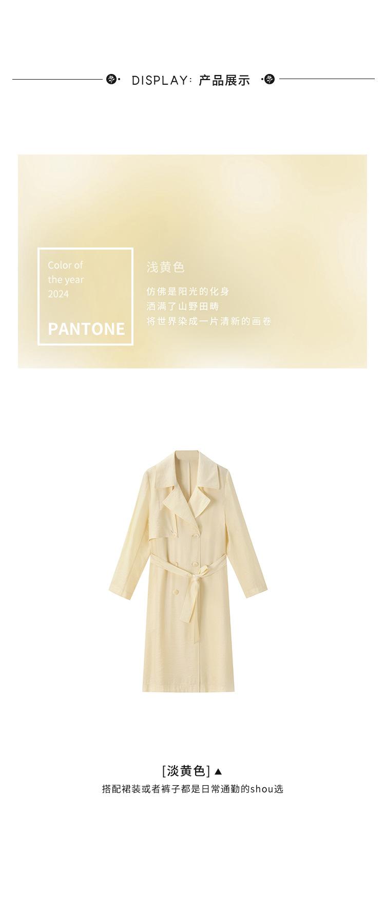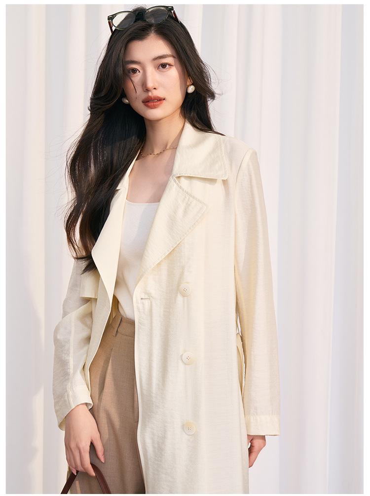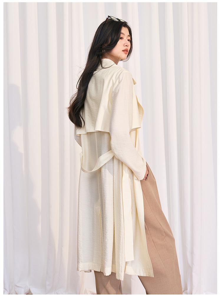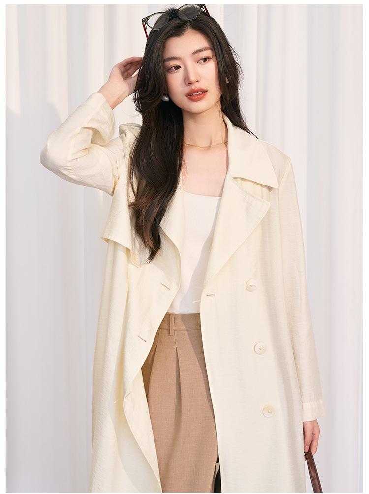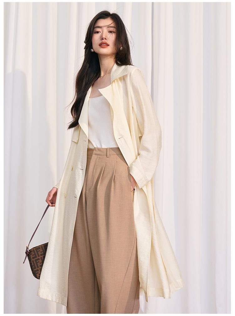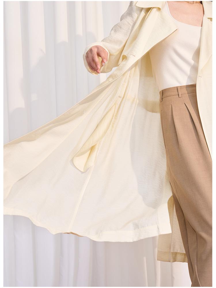 [Shengdu] Primavera Nuevo Estilo Coreano Estilo Casual Simple Amarillo Claro Algodón Tencel Chaqueta Cortavientos Ligera y Larga