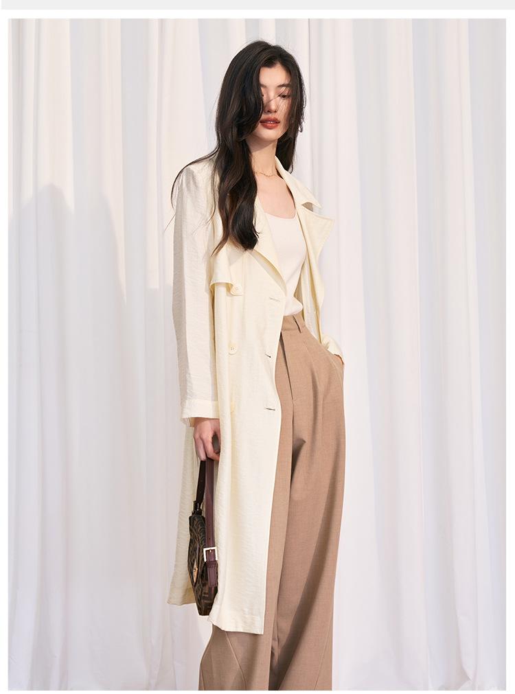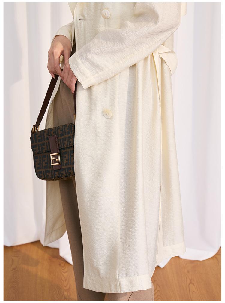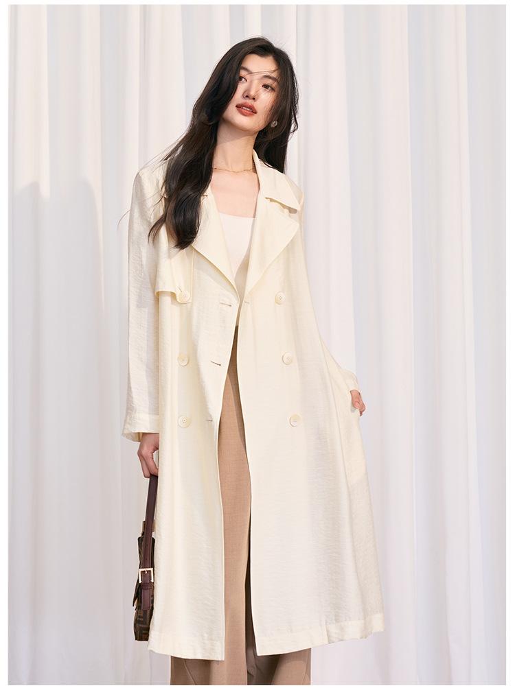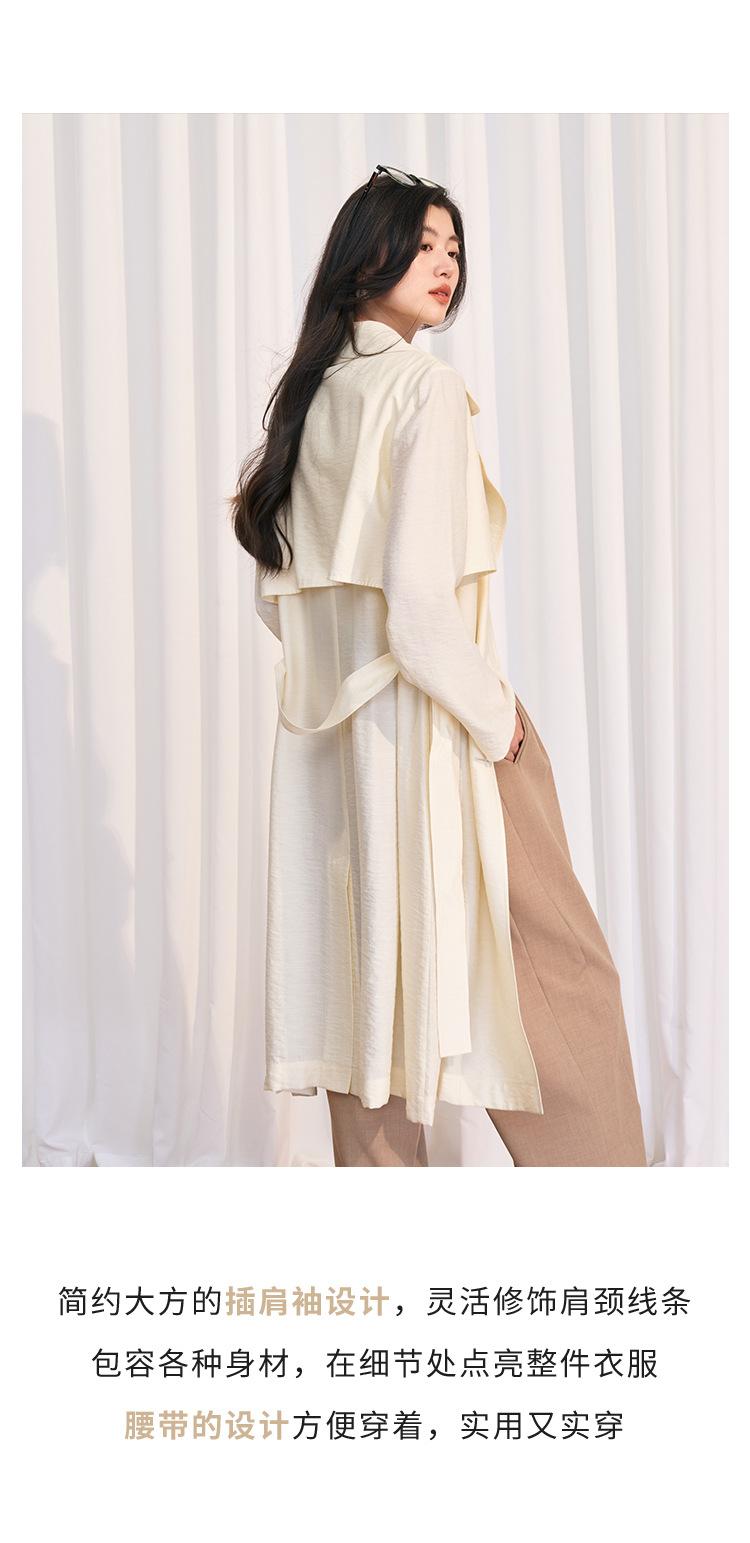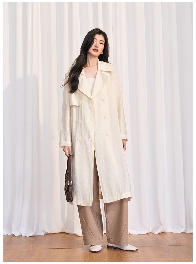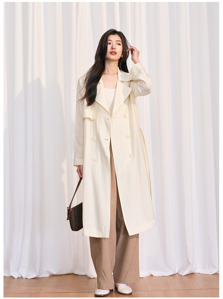 [Shengdu] Primavera Nuevo Estilo Coreano Estilo Casual Simple Amarillo Claro Algodón Tencel Chaqueta Cortavientos Ligera y Larga
