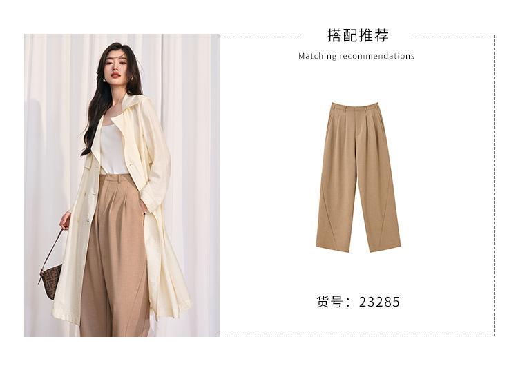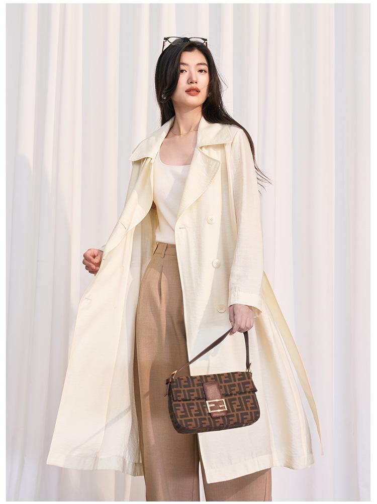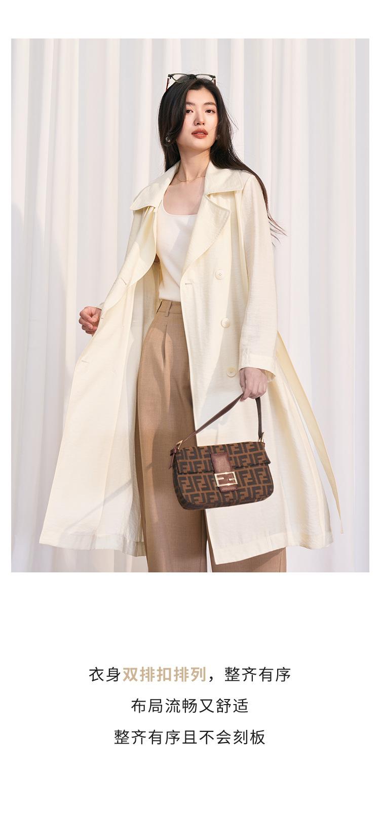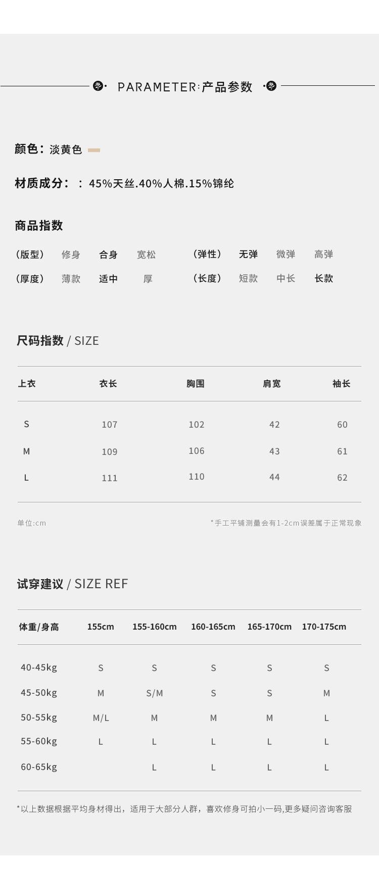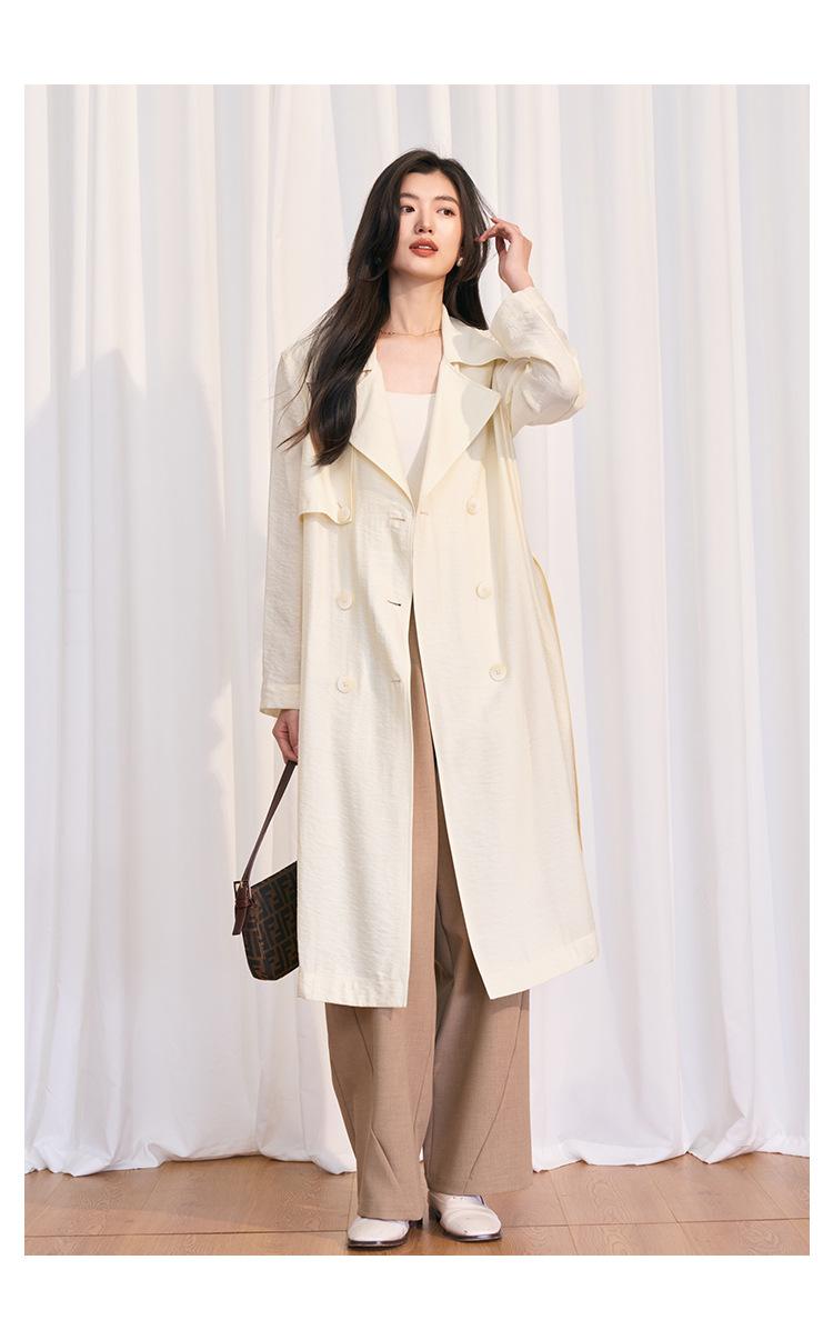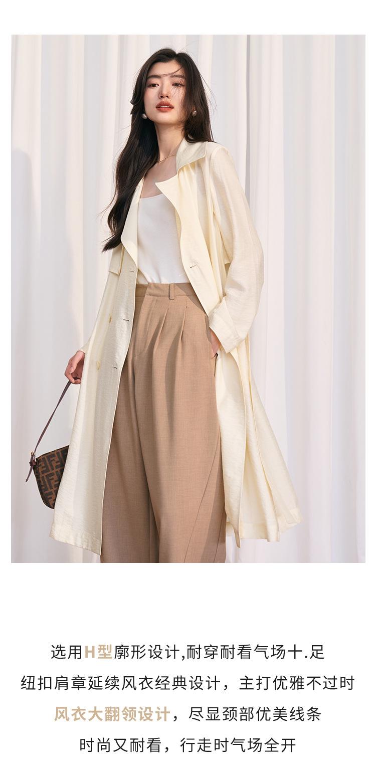 [Shengdu] Primavera Nuevo Estilo Coreano Estilo Casual Simple Amarillo Claro Algodón Tencel Chaqueta Cortavientos Ligera y Larga
