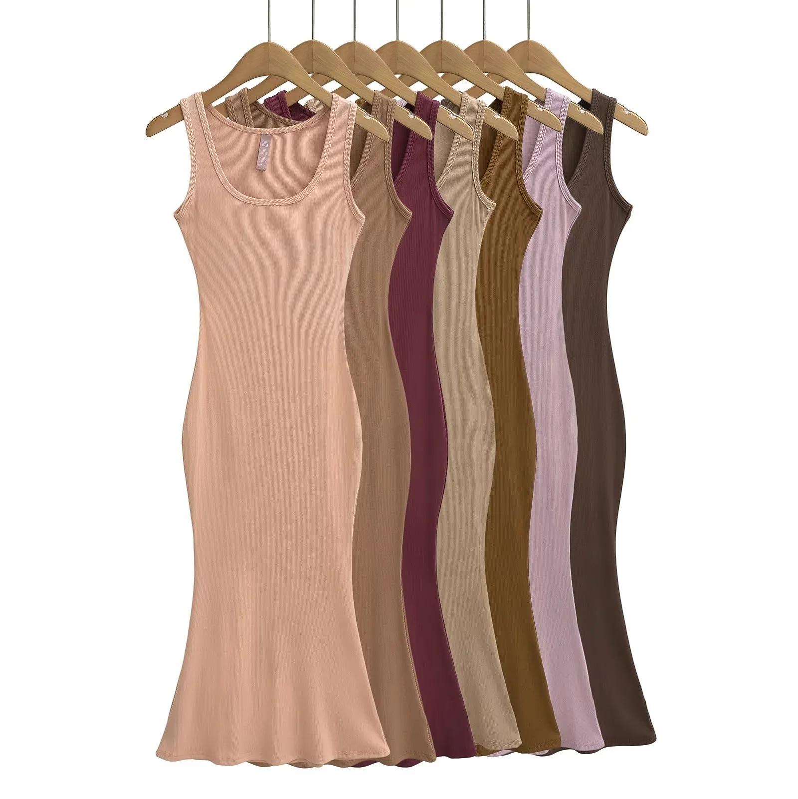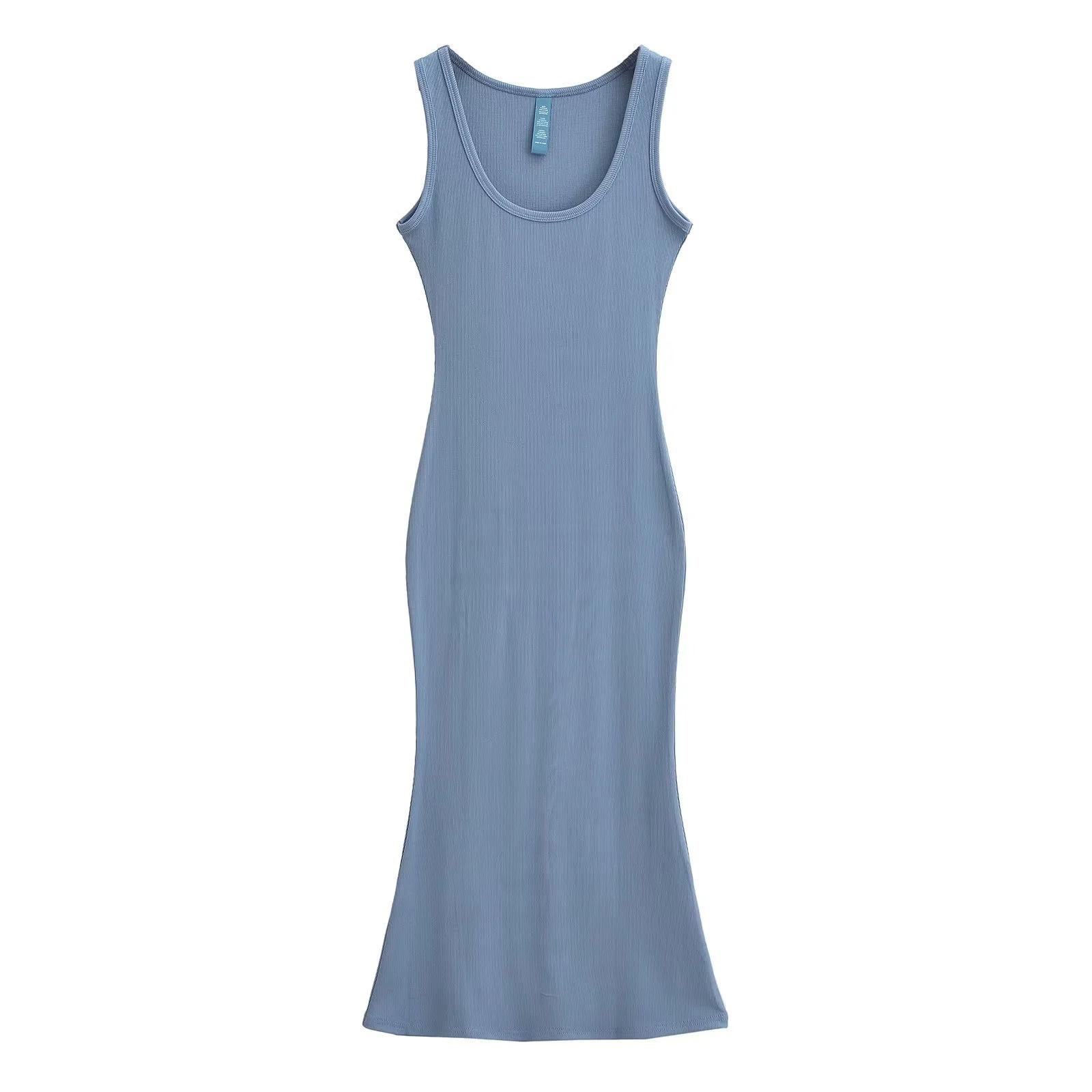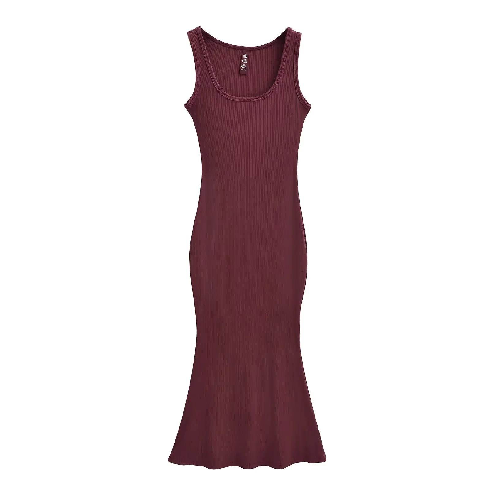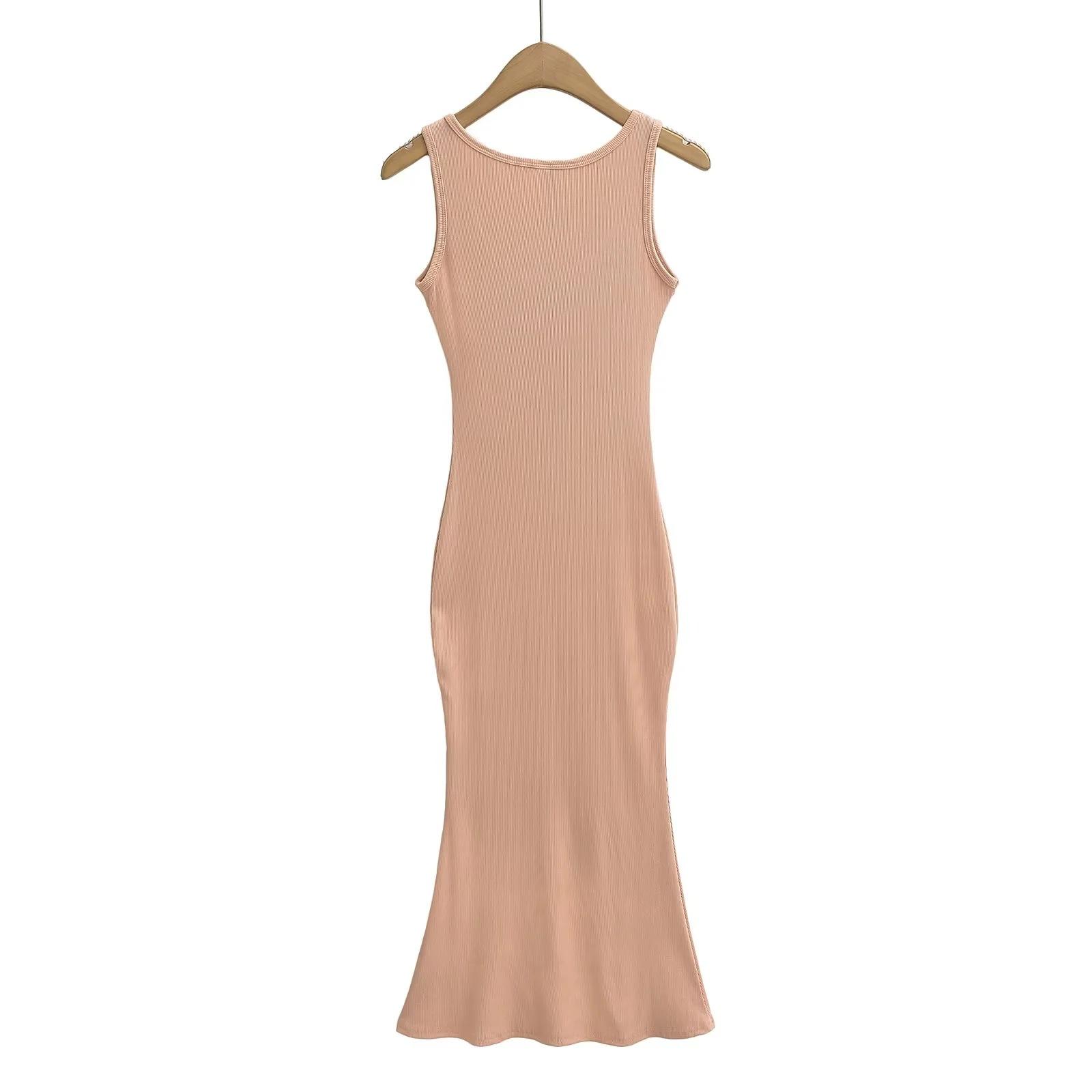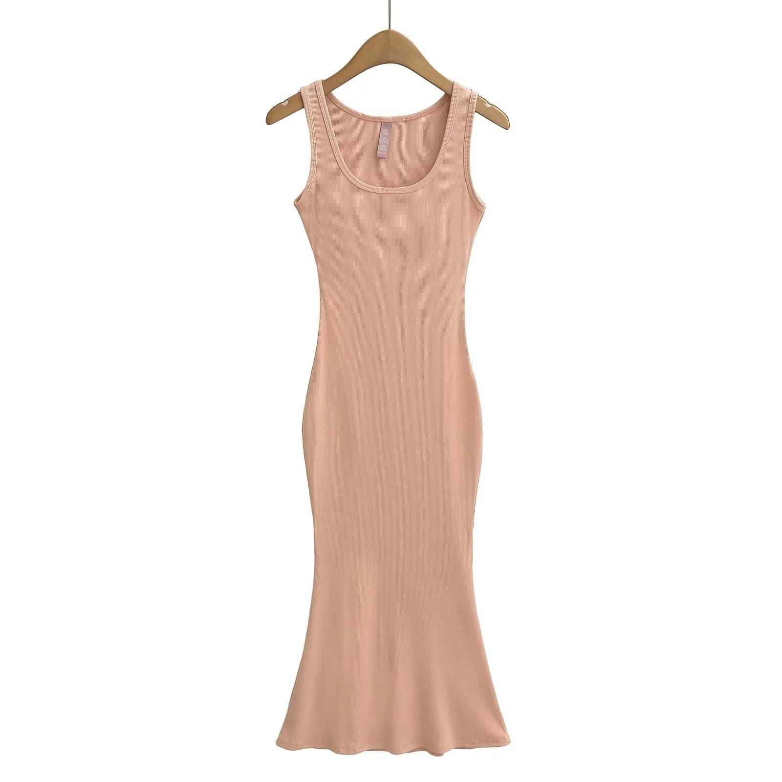 Europeo y americano ins falda chaleco sin mangas de cuello redondo grande para mujer 2024 Nuevo cintura ajustada sexy hilo ajustado vaina falda cola de pez