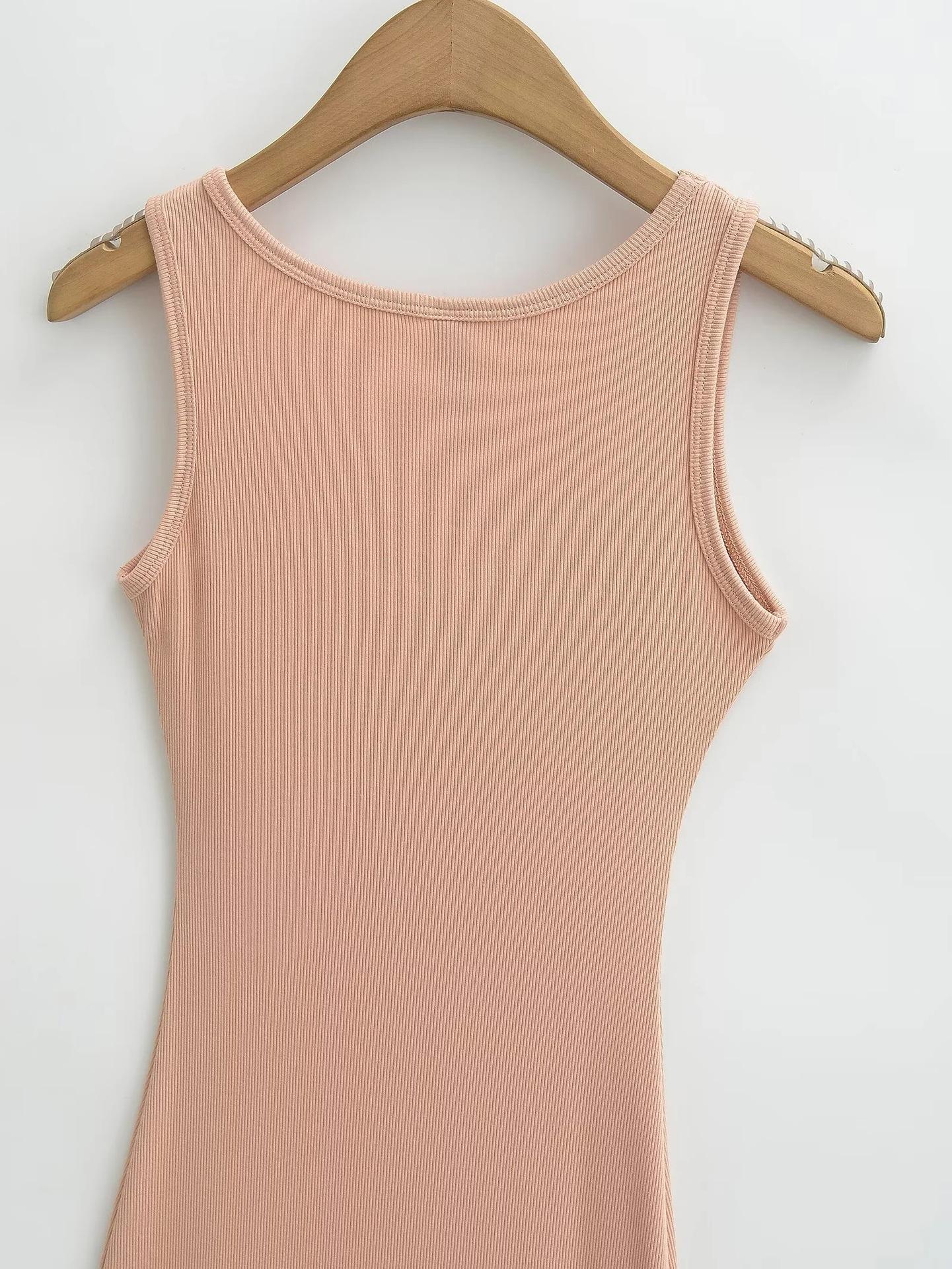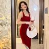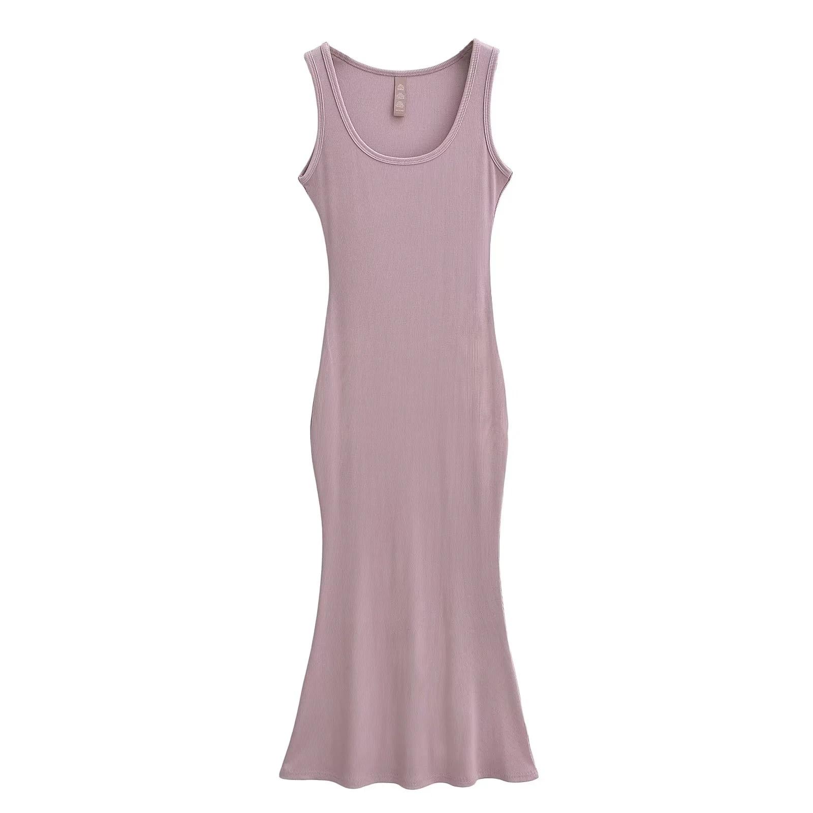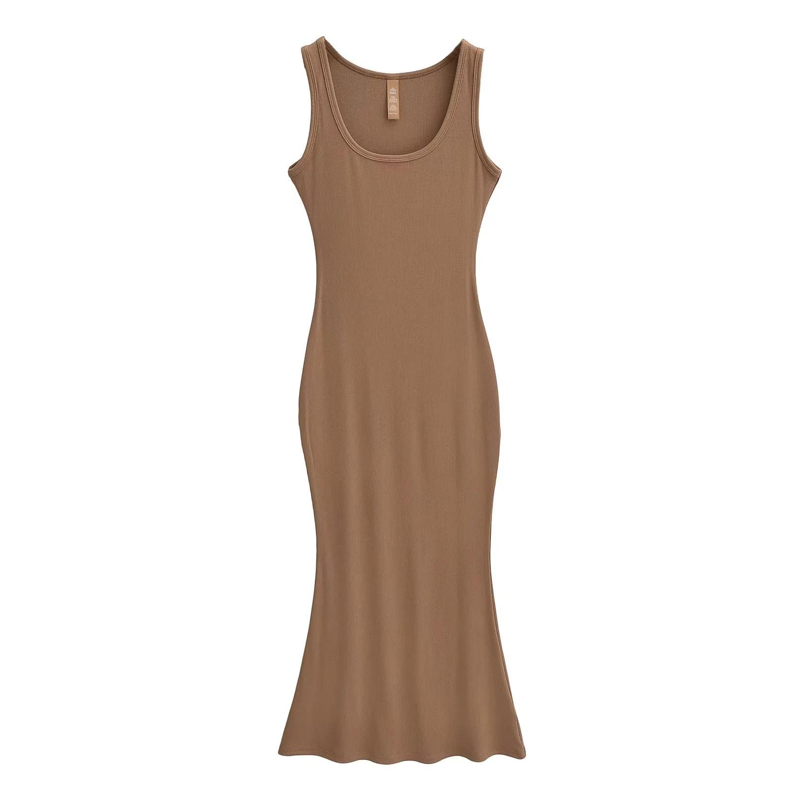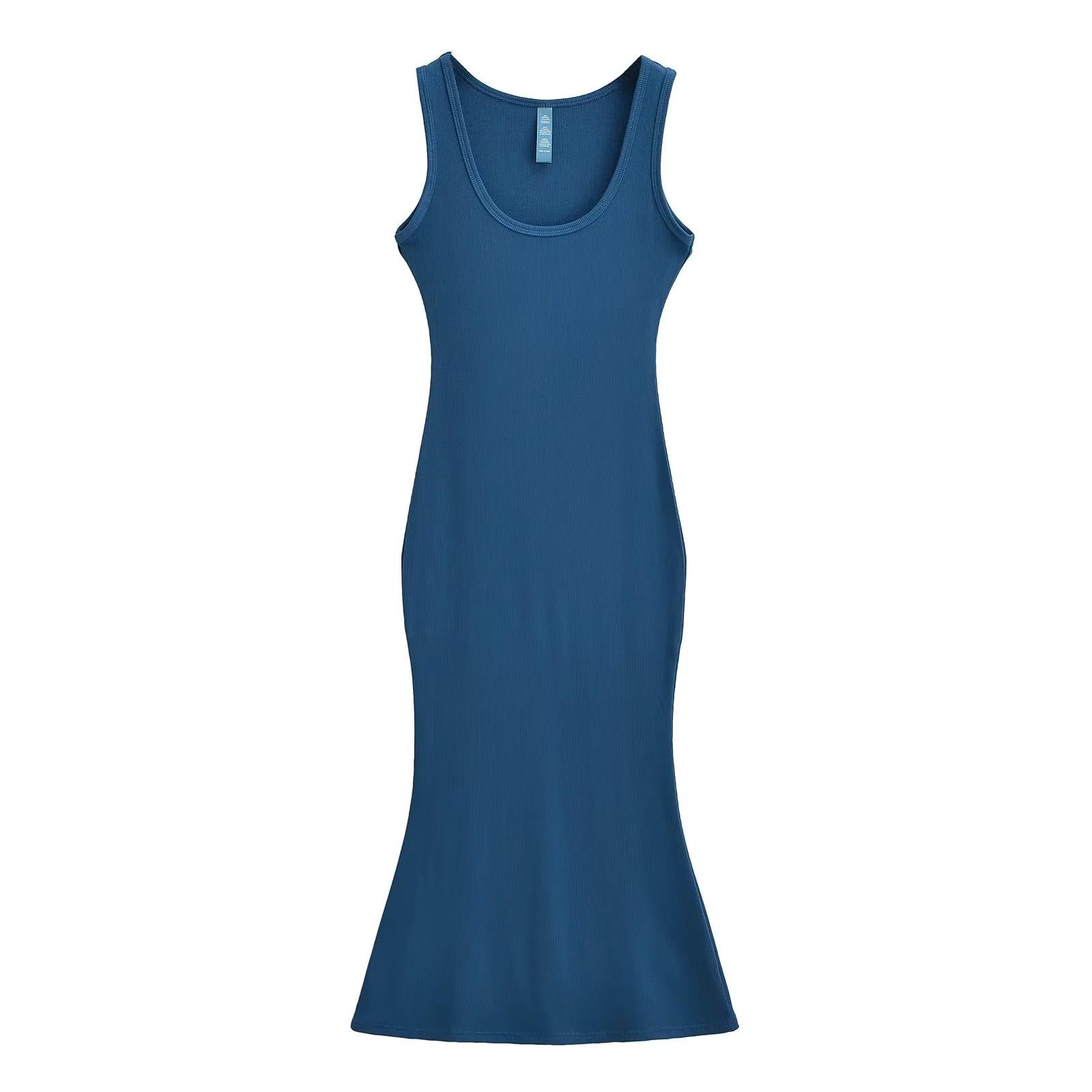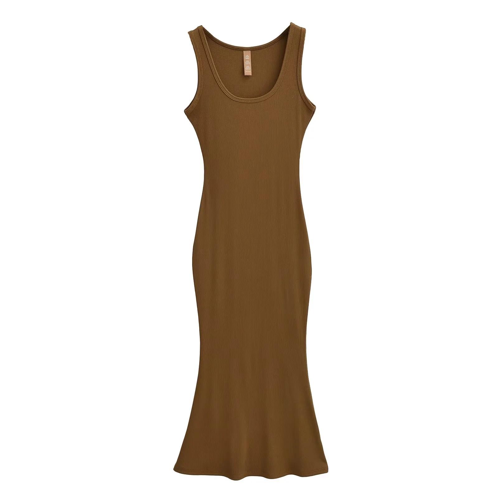 Europeo y americano ins falda chaleco sin mangas de cuello redondo grande para mujer 2024 Nuevo cintura ajustada sexy hilo ajustado vaina falda cola de pez