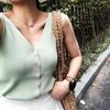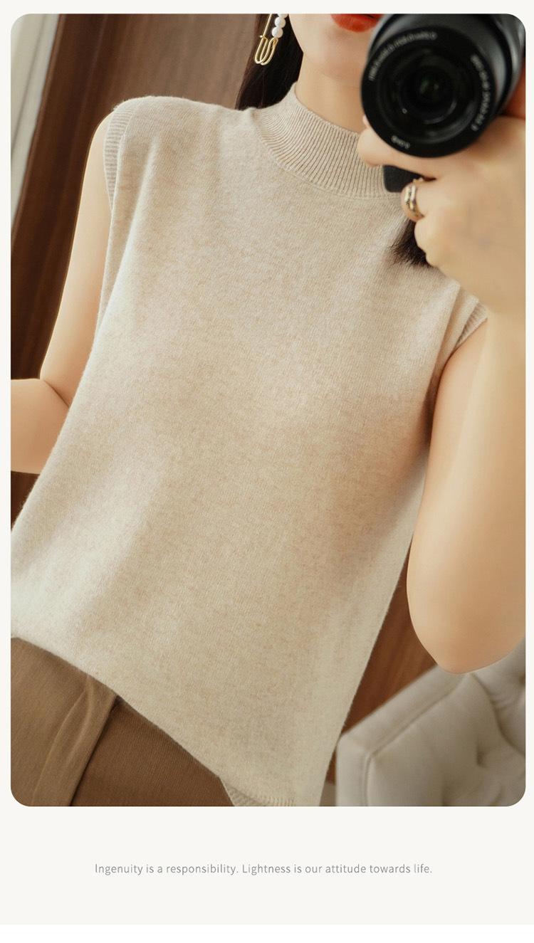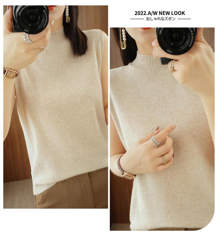 Camisa básica sin mangas, cuello medio alto, seda de hielo tejida, primavera y verano, nuevo chaleco para mujer, fino, moderno, combina con todo, moderno