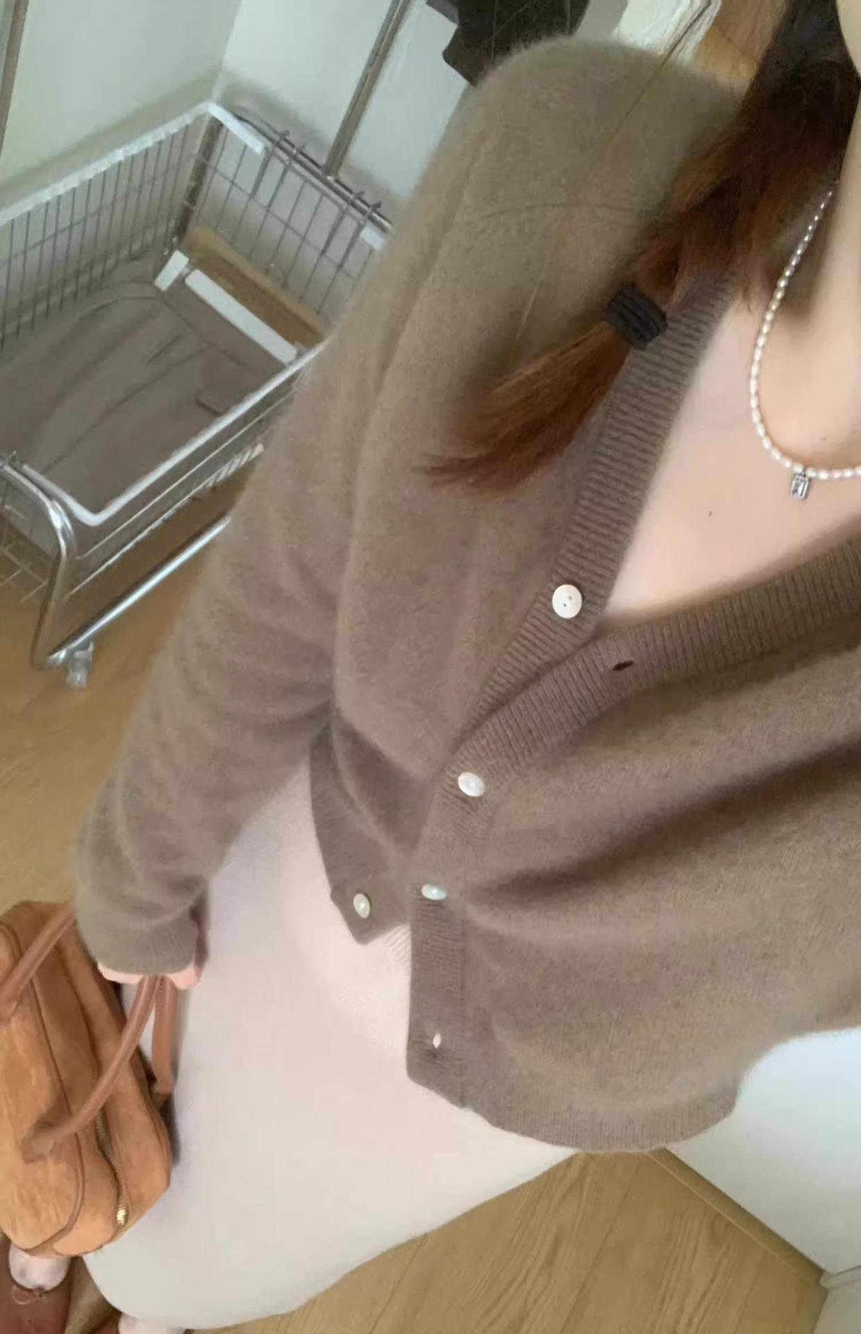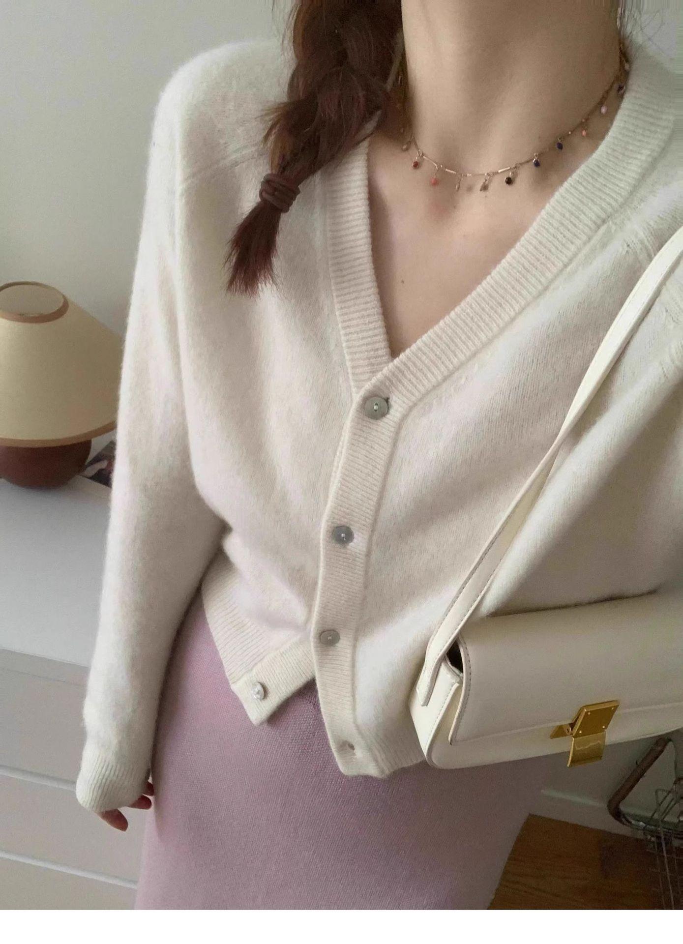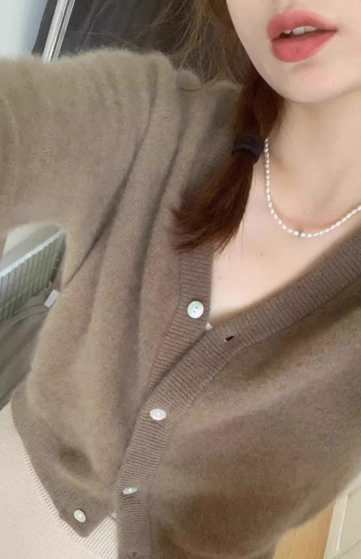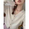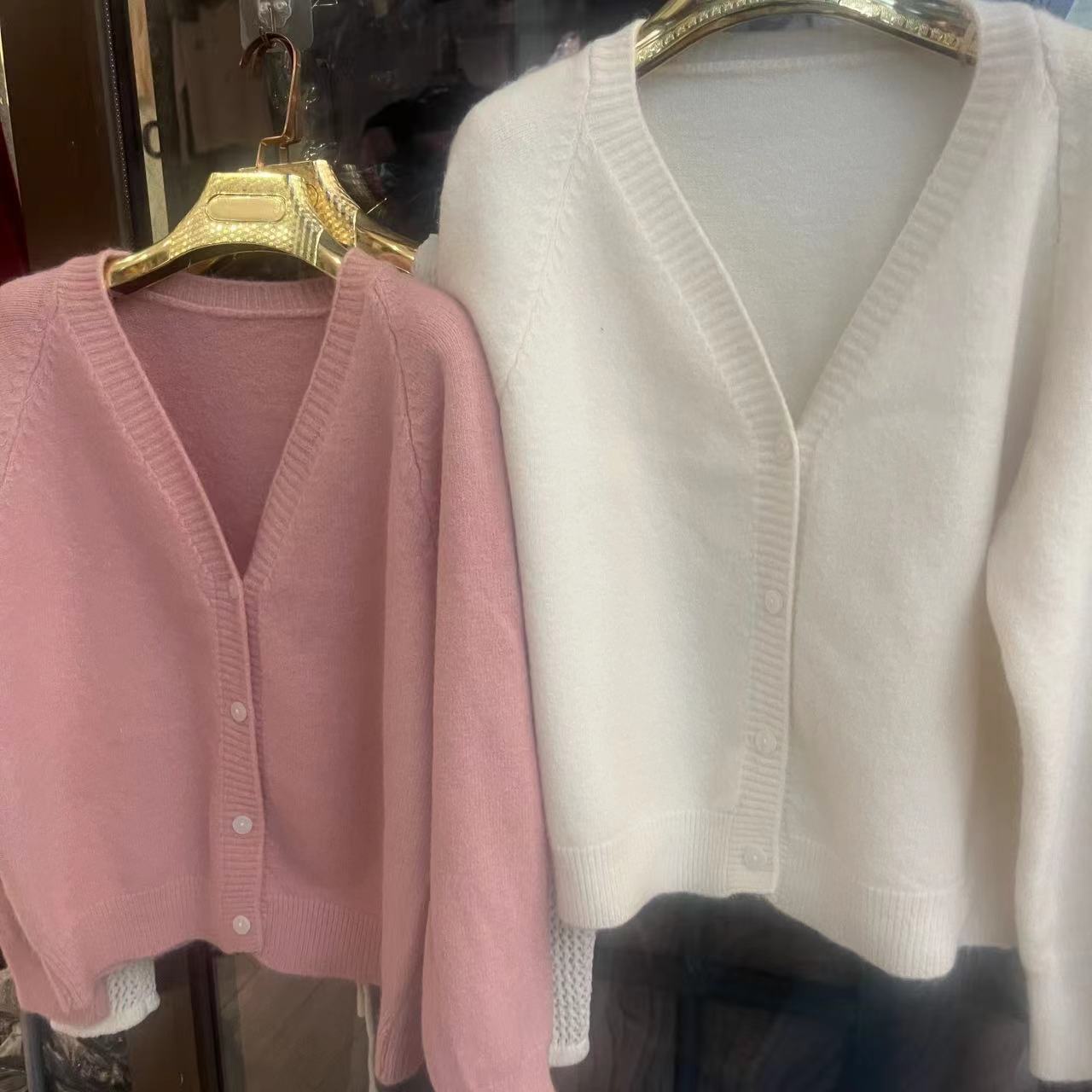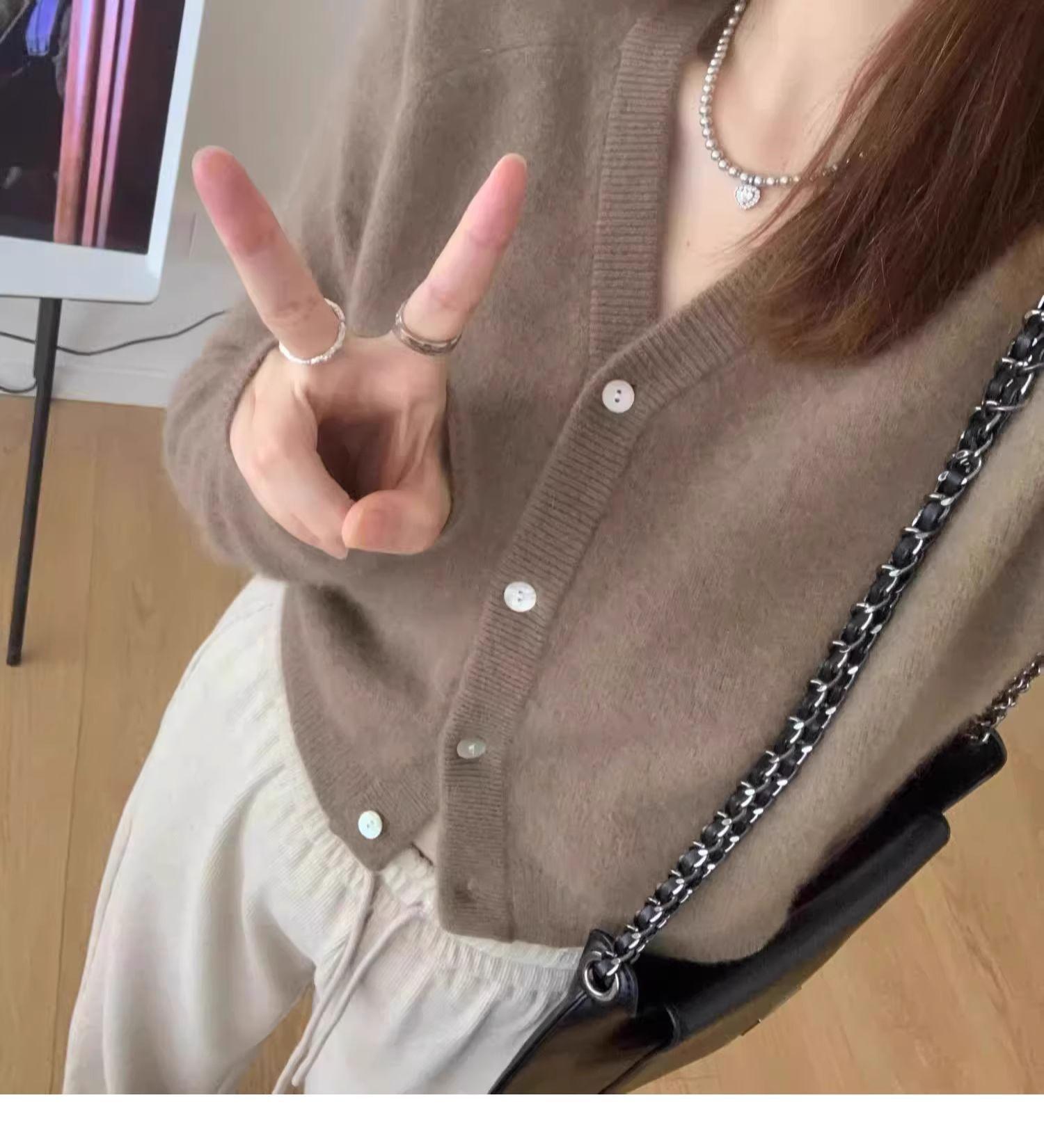 Cárdigan de punto con cuello en V nuevo de primavera y otoño 2024 para mujer, suéter corto ajustado de color sólido, temperamento adelgazante, chaqueta de pequeña fragancia