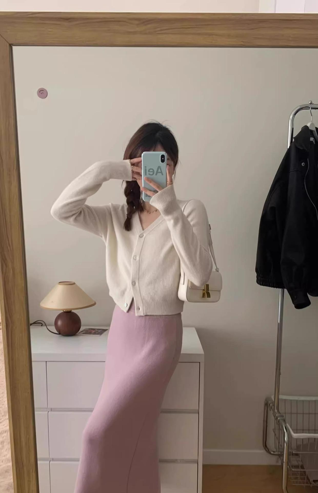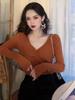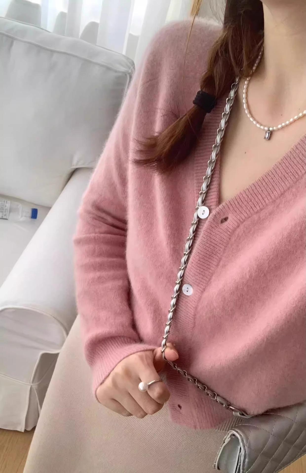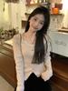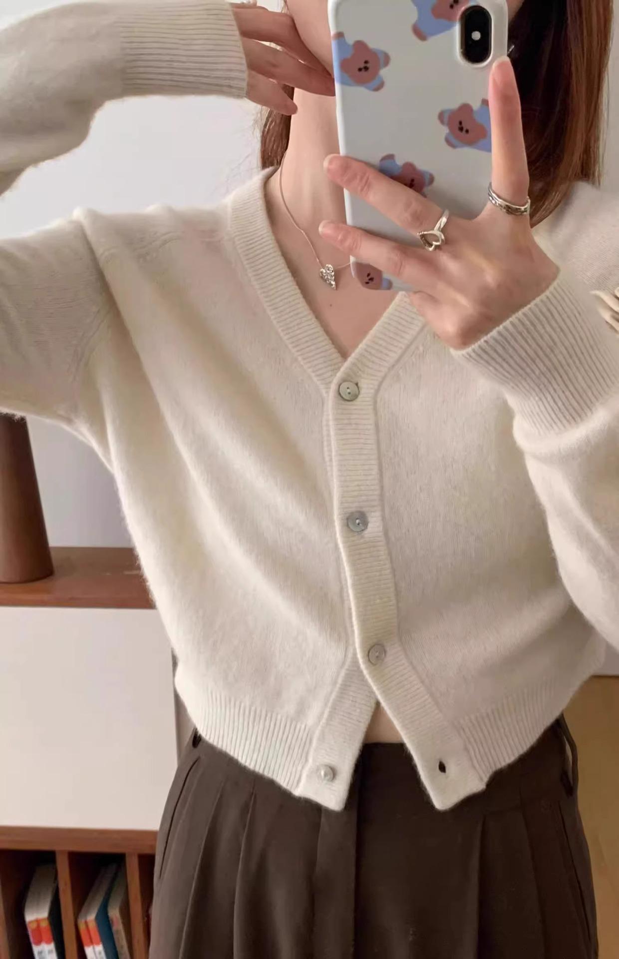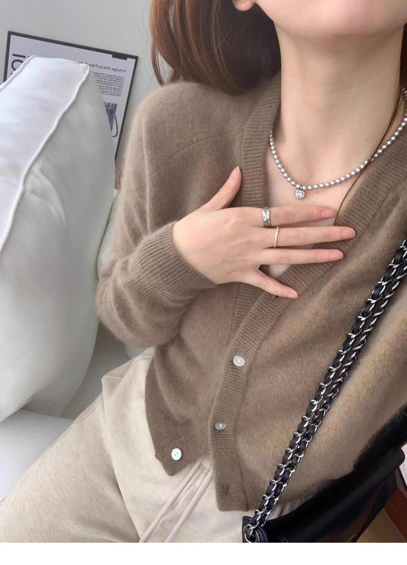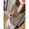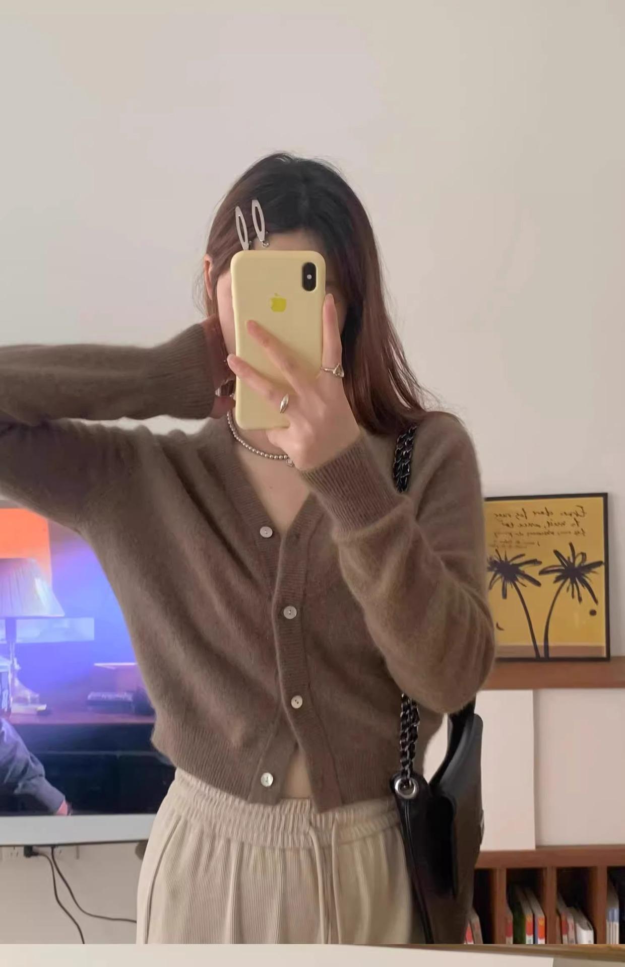 Cárdigan de punto con cuello en V nuevo de primavera y otoño 2024 para mujer, suéter corto ajustado de color sólido, temperamento adelgazante, chaqueta de pequeña fragancia