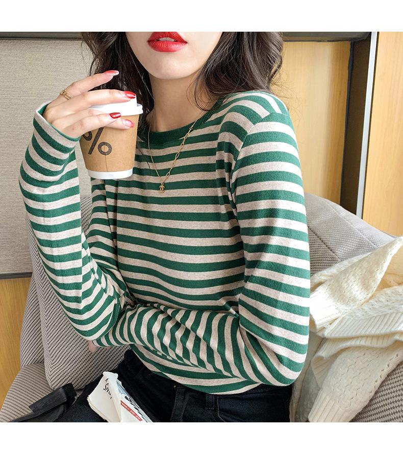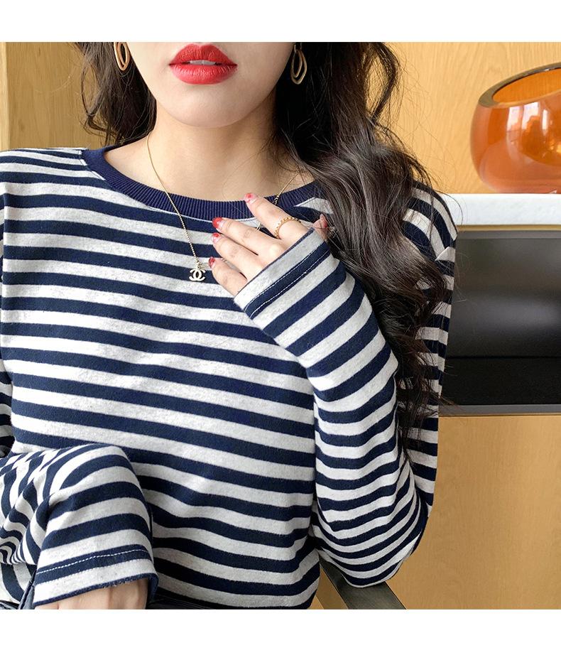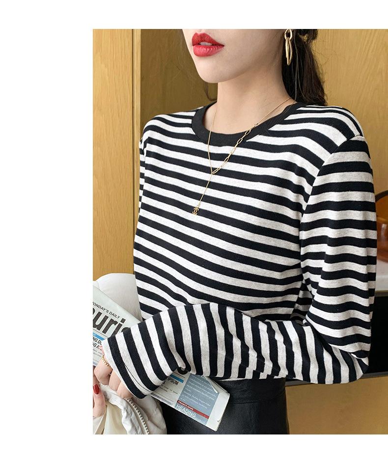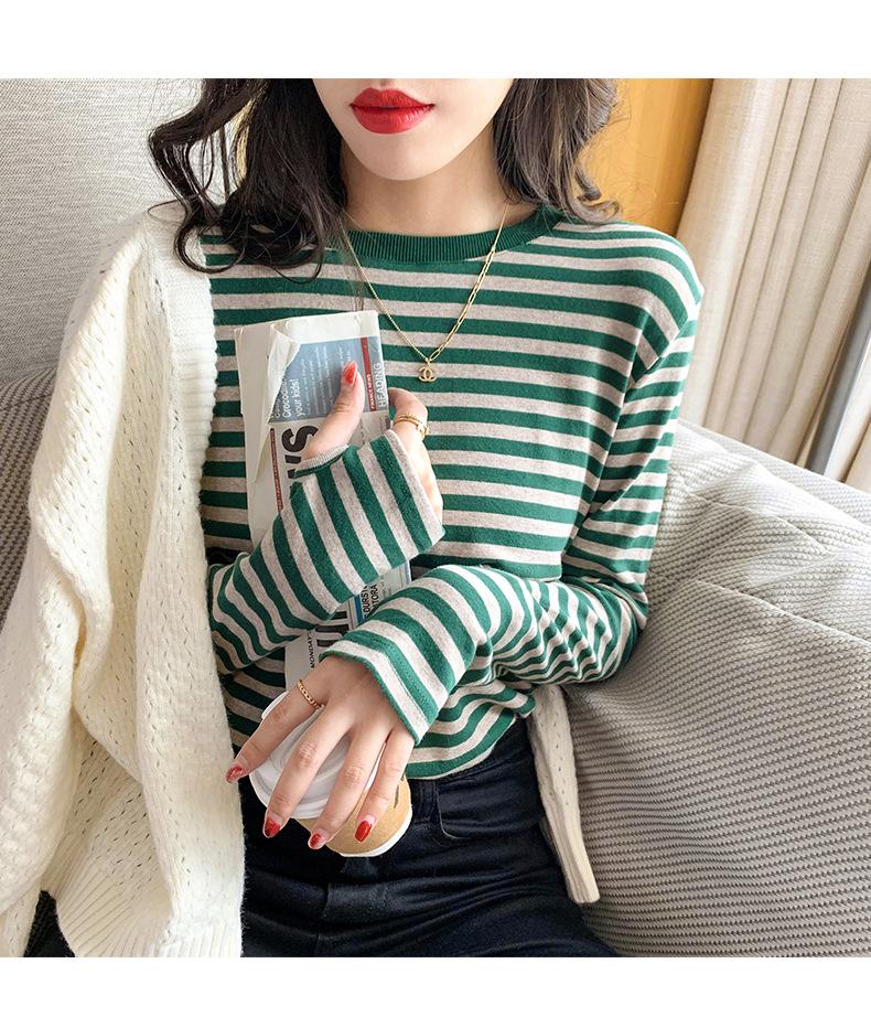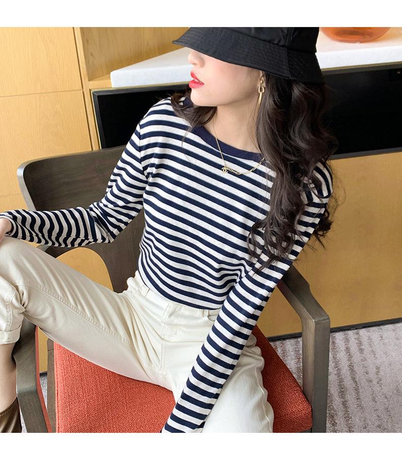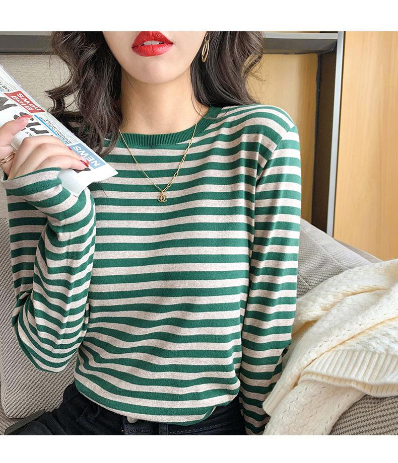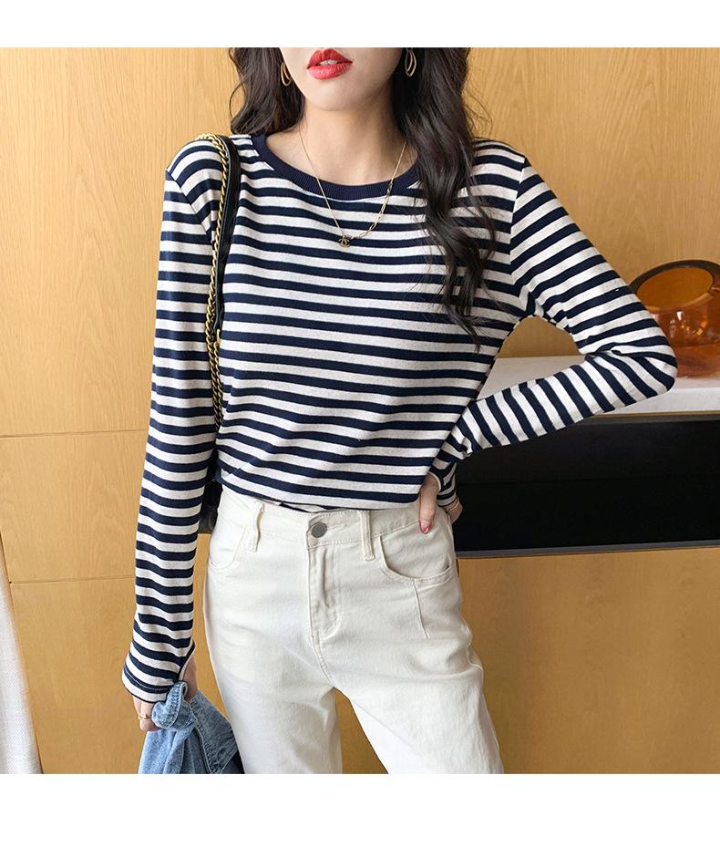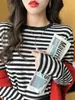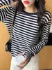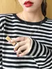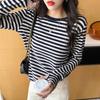 Camiseta básica a rayas Ropa interior para mujer Primavera y otoño 2025 Nuevo bloqueo de color Elegante cuello redondo Camiseta de manga larga Ins Top