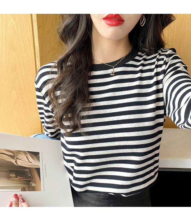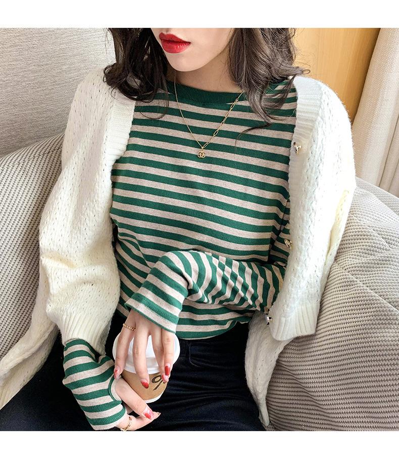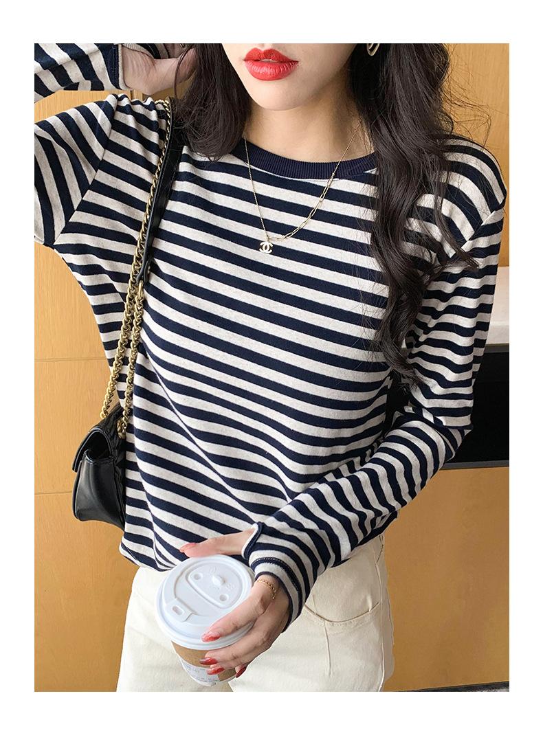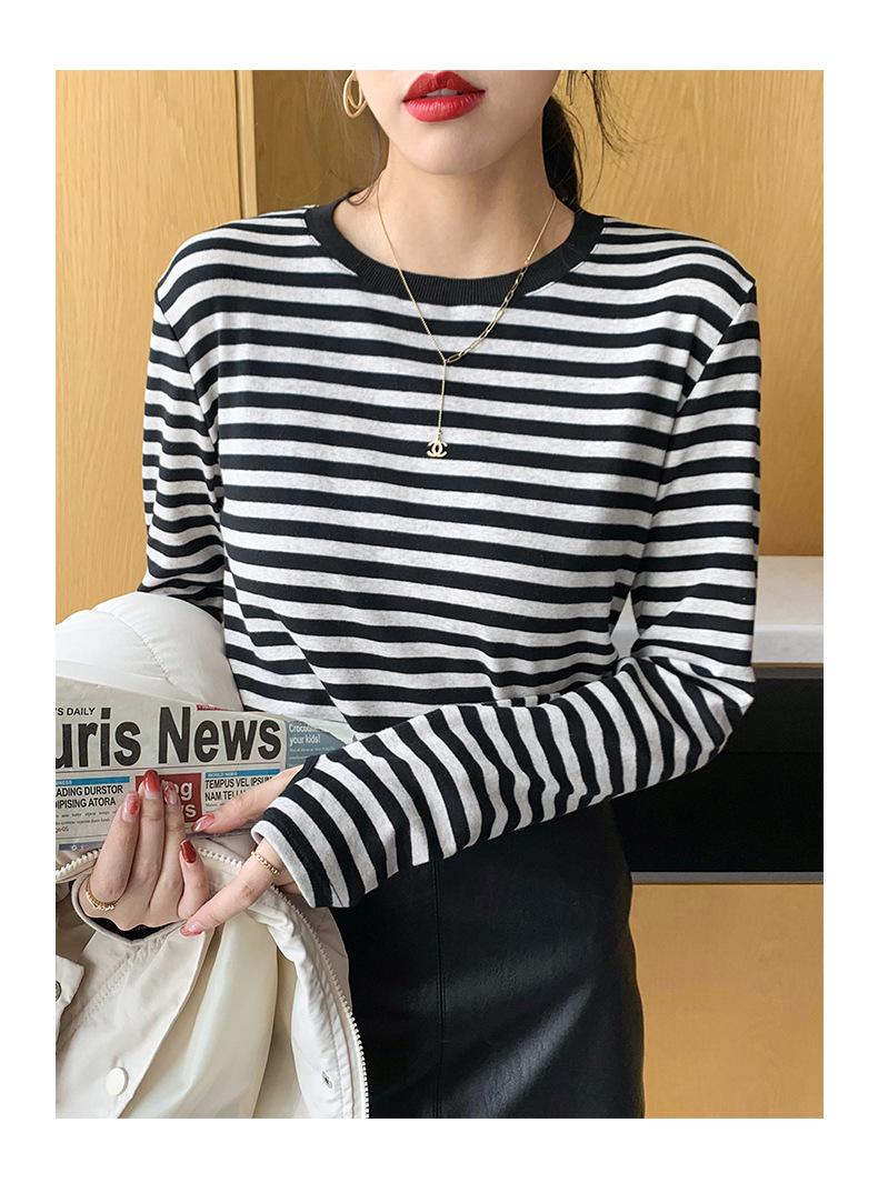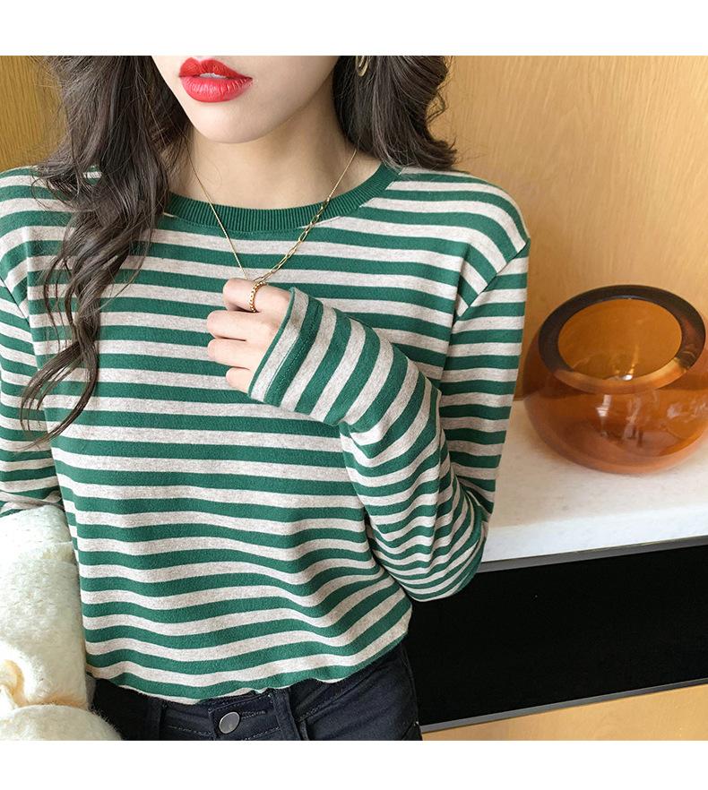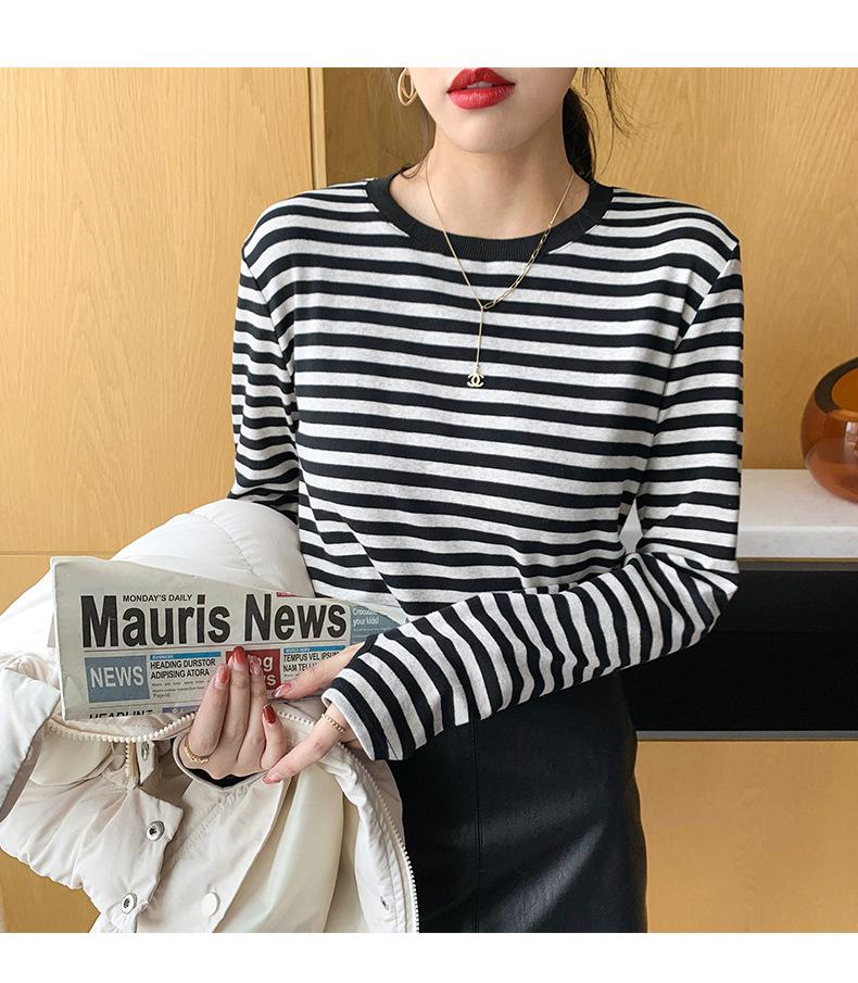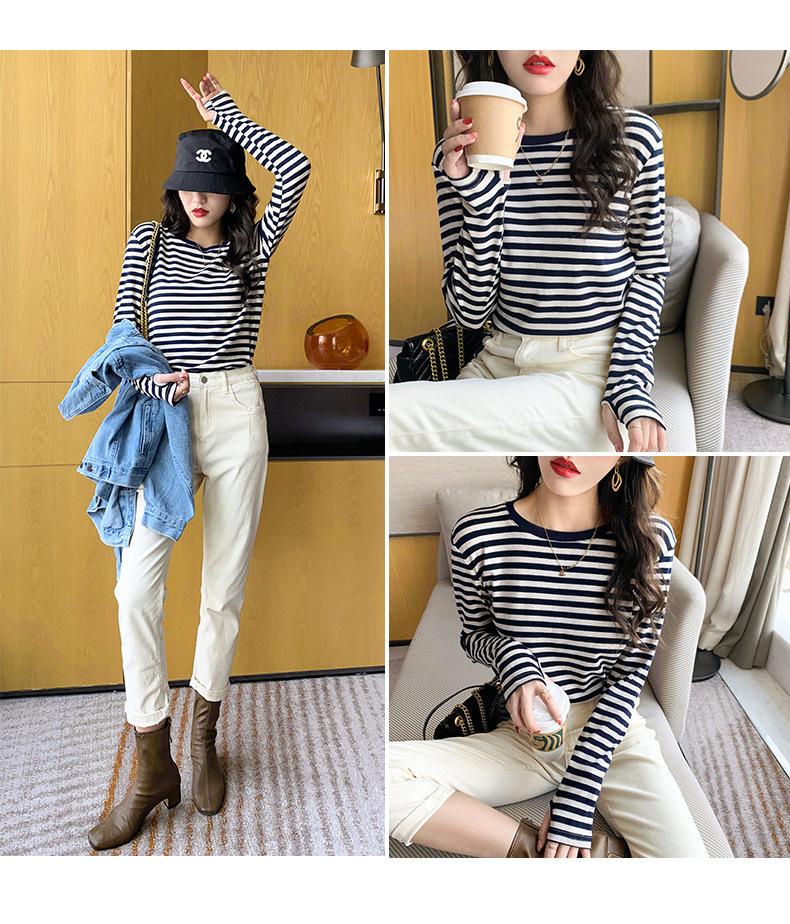 Camiseta básica a rayas Ropa interior para mujer Primavera y otoño 2025 Nuevo bloqueo de color Elegante cuello redondo Camiseta de manga larga Ins Top