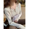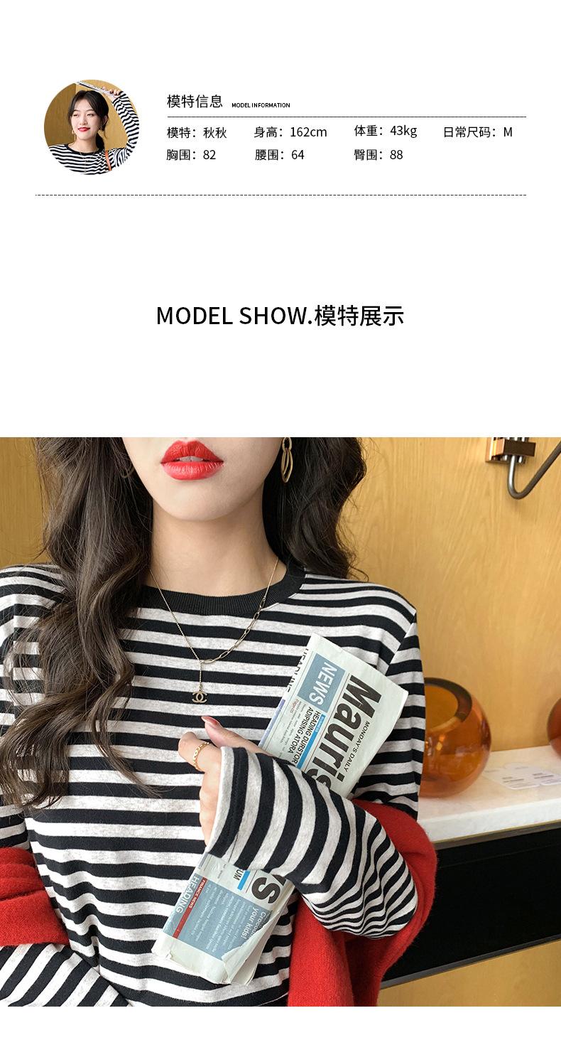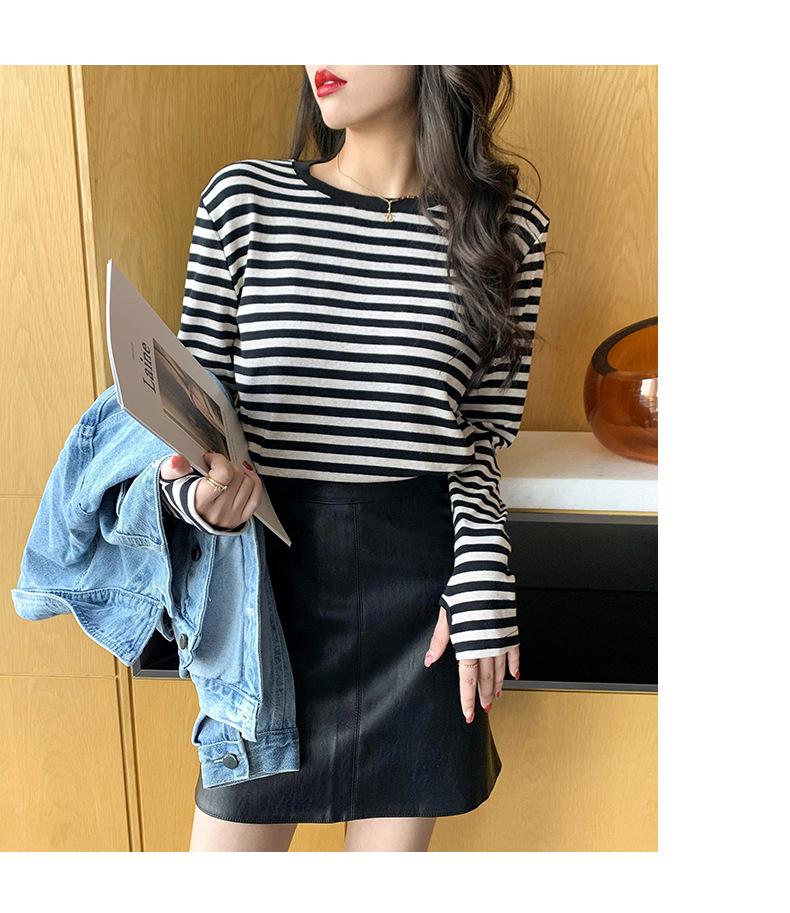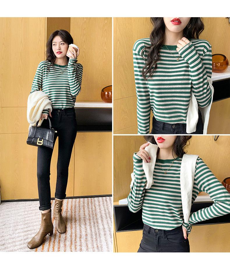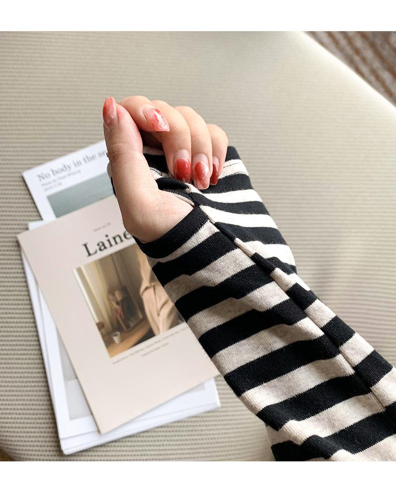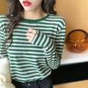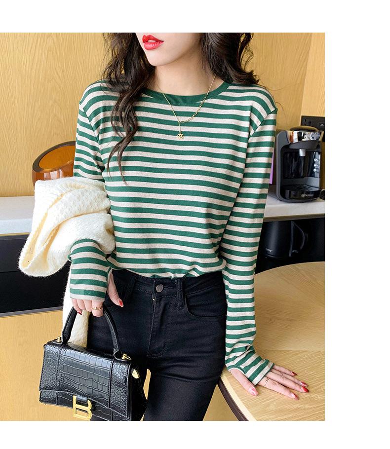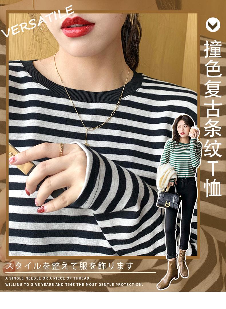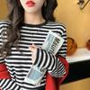 Camiseta básica a rayas Ropa interior para mujer Primavera y otoño 2025 Nuevo bloqueo de color Elegante cuello redondo Camiseta de manga larga Ins Top