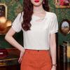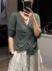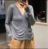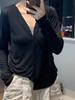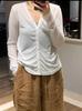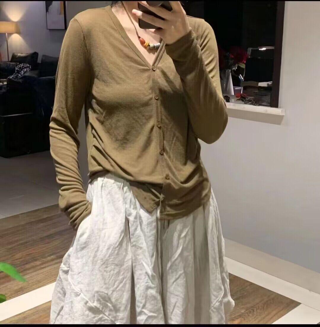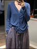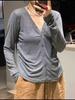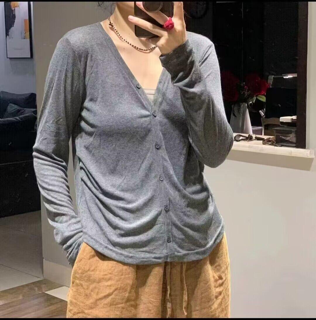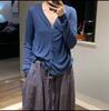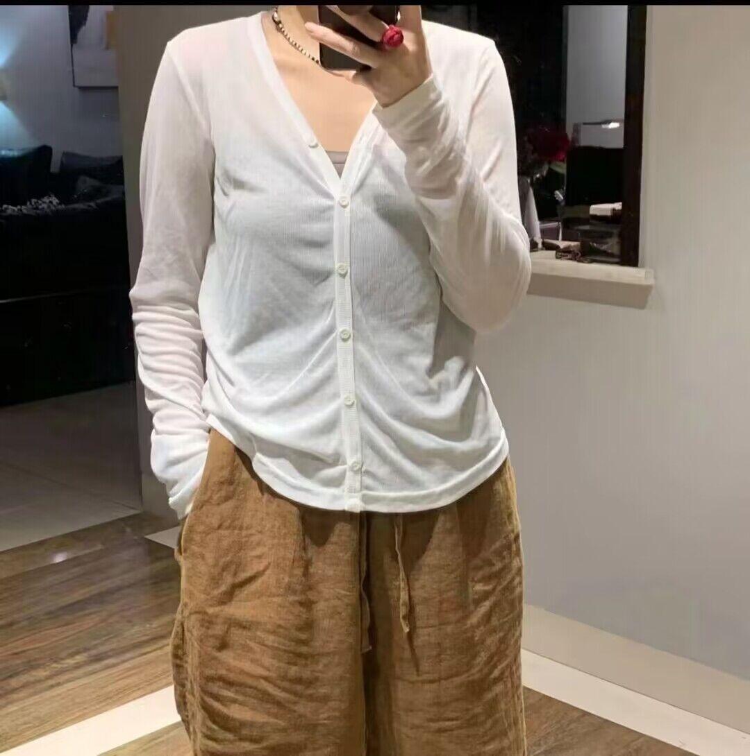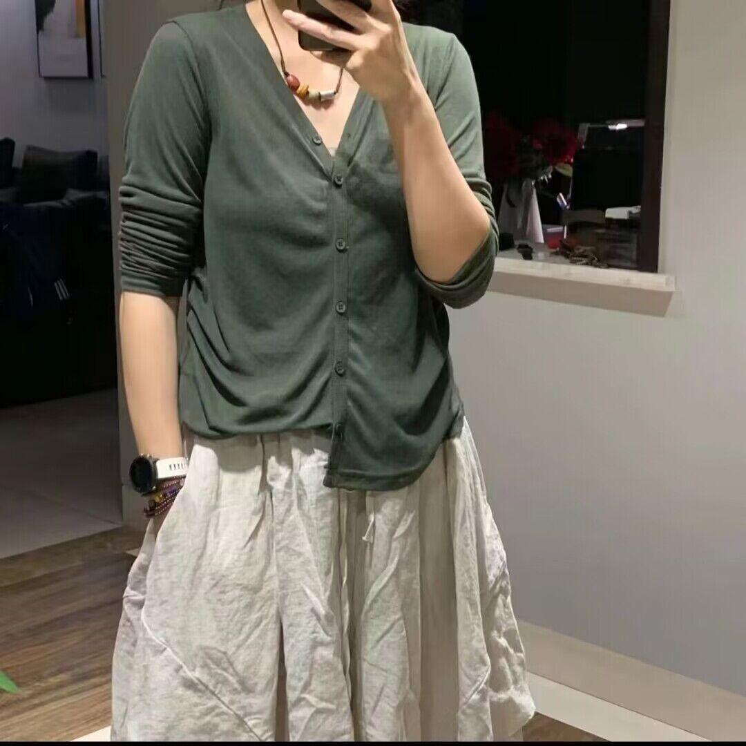 Suyouli 2024 primavera y verano camisa de manga larga con cuello en V cárdigan protector solar para mujer color sólido artístico holgado versátil casual adelgazante T