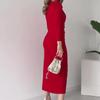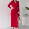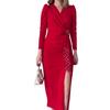 Otoño 2024 nuevo vestido europeo y americano transfronterizo de Amazon transfronterizo popular rojo temperamento plisado en la cintura manga larga