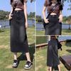 Falda vaquera blanca, negra y gris nueva primavera y verano figura en forma de pera cintura alta falda larga dividida