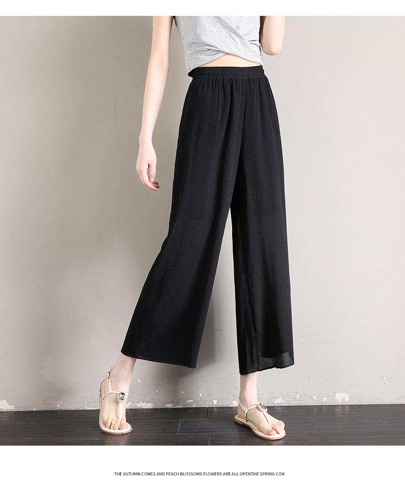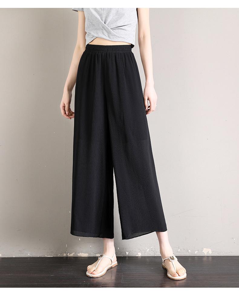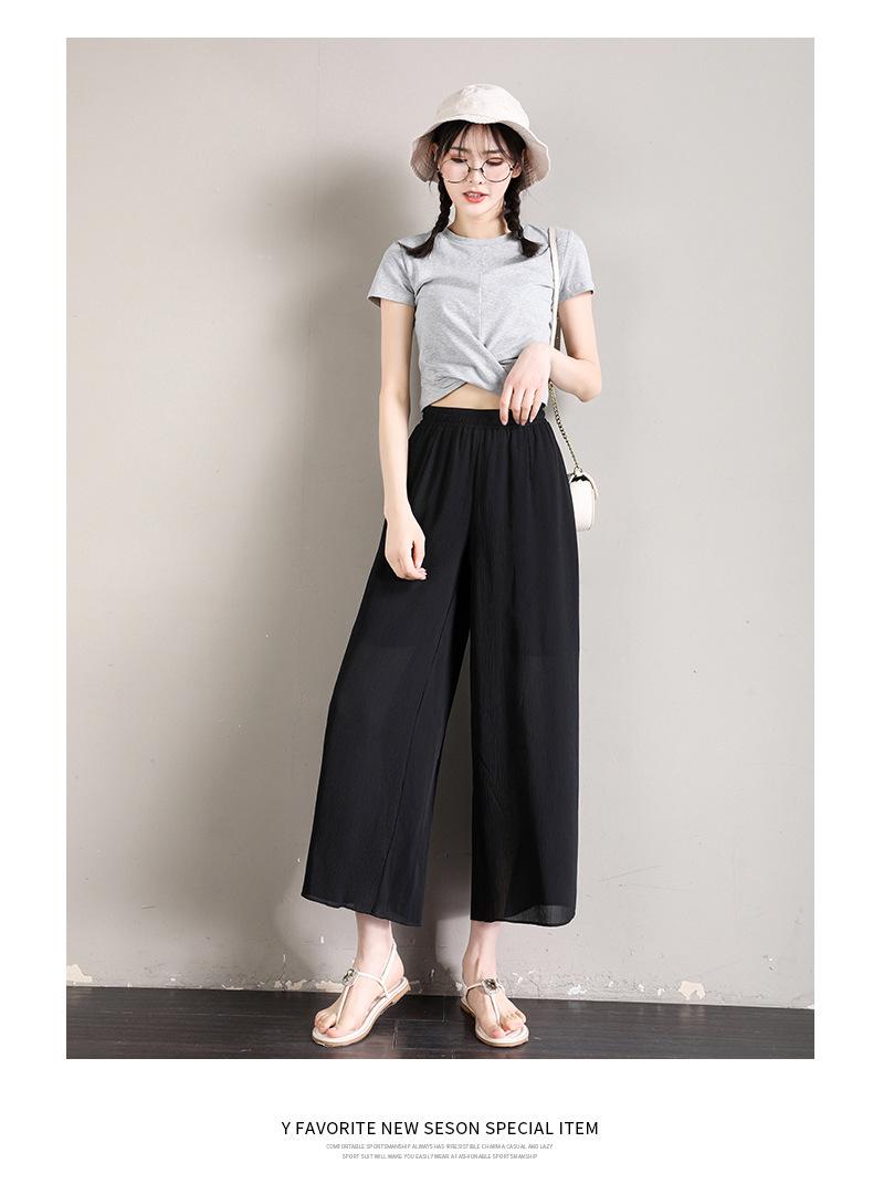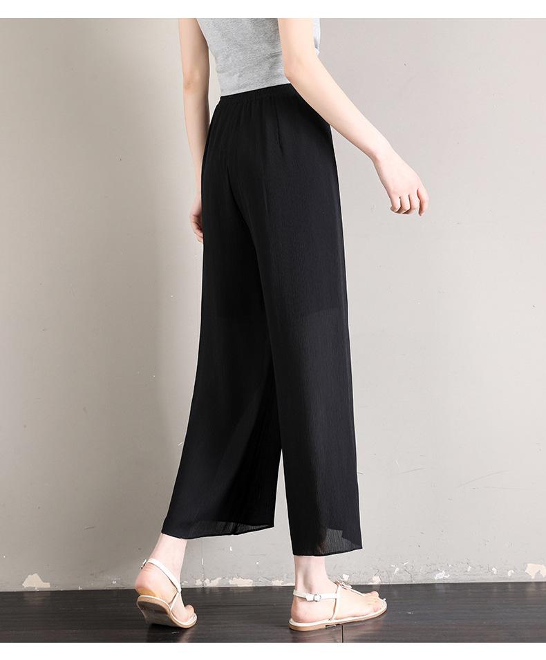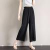 Pantalones de Pierna Ancha de Seda Helada para Mujer Verano Pantalones de Gasa Delgados 2025 Nuevo Cintura Alta Drapeados Rectos Nueve Puntos Pantalones Casuales para Mujer