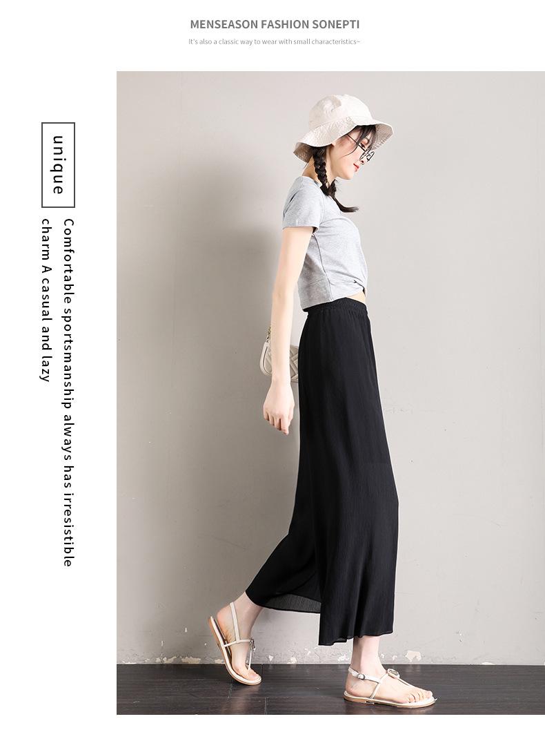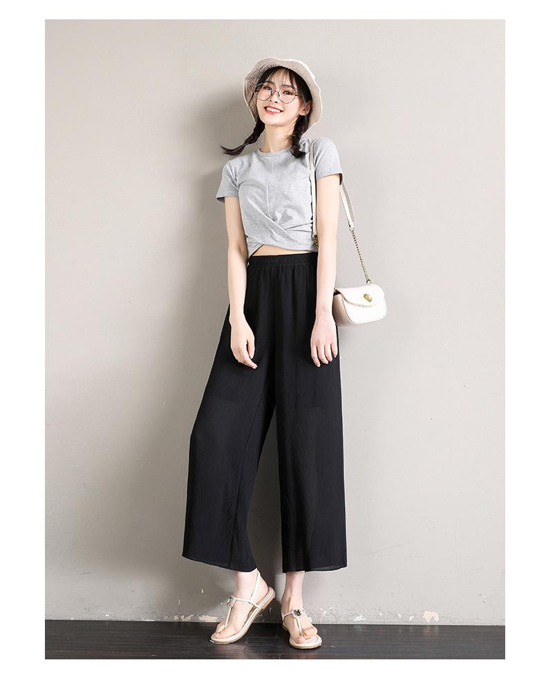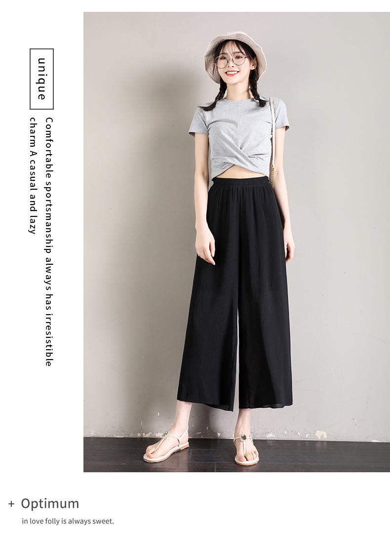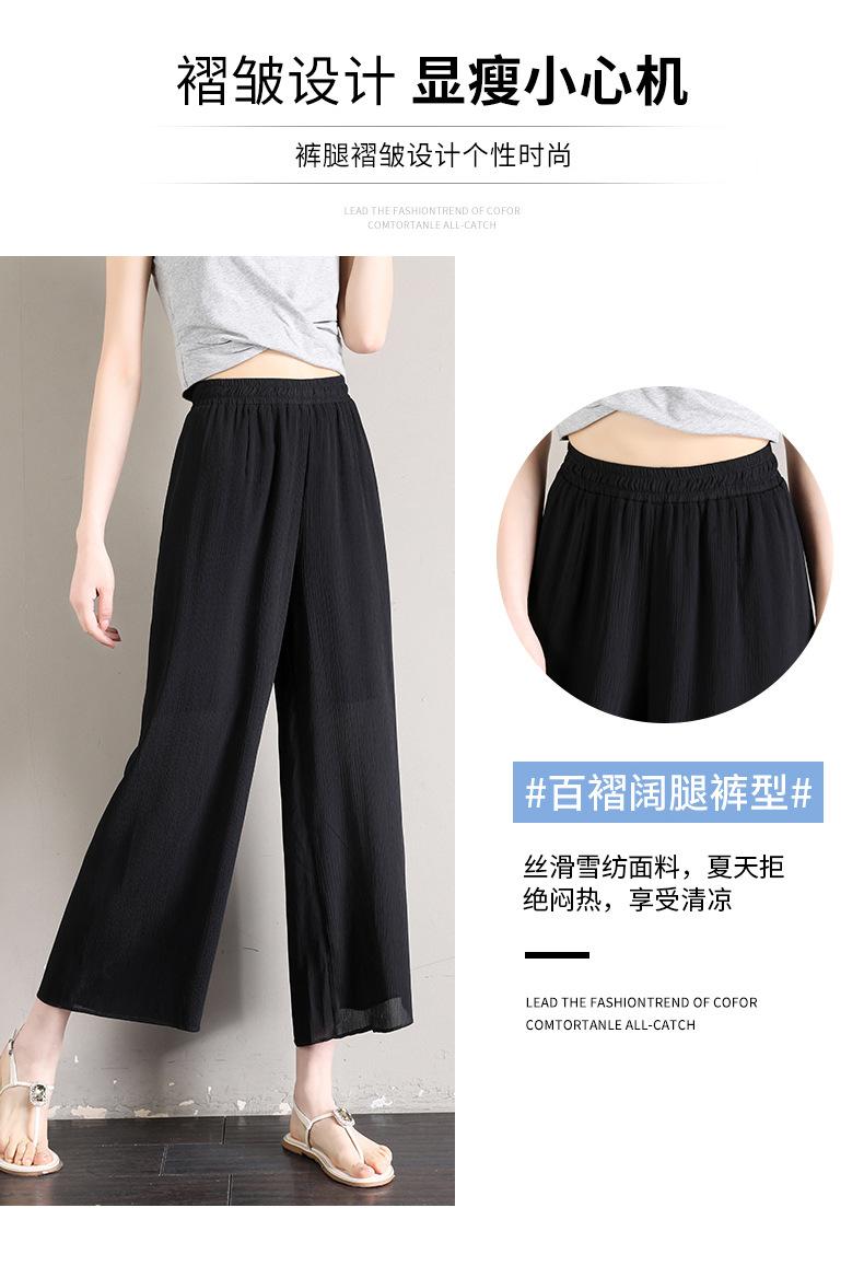 Pantalones de Pierna Ancha de Seda Helada para Mujer Verano Pantalones de Gasa Delgados 2025 Nuevo Cintura Alta Drapeados Rectos Nueve Puntos Pantalones Casuales para Mujer