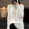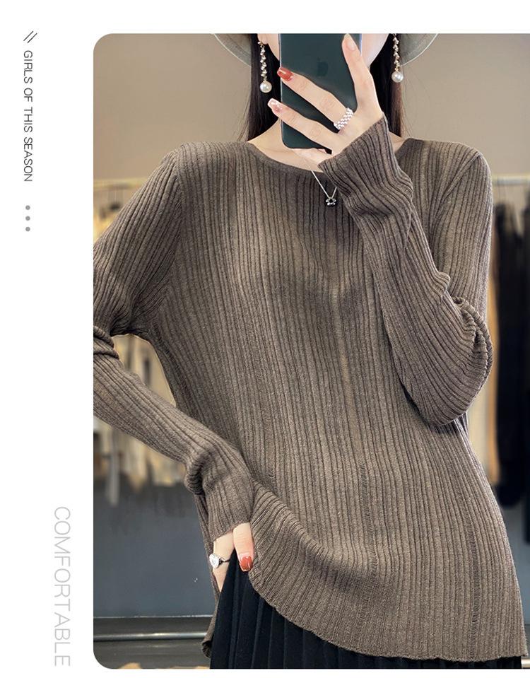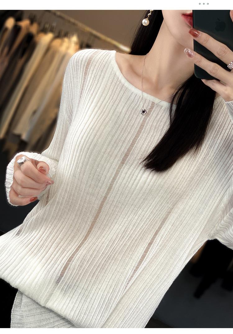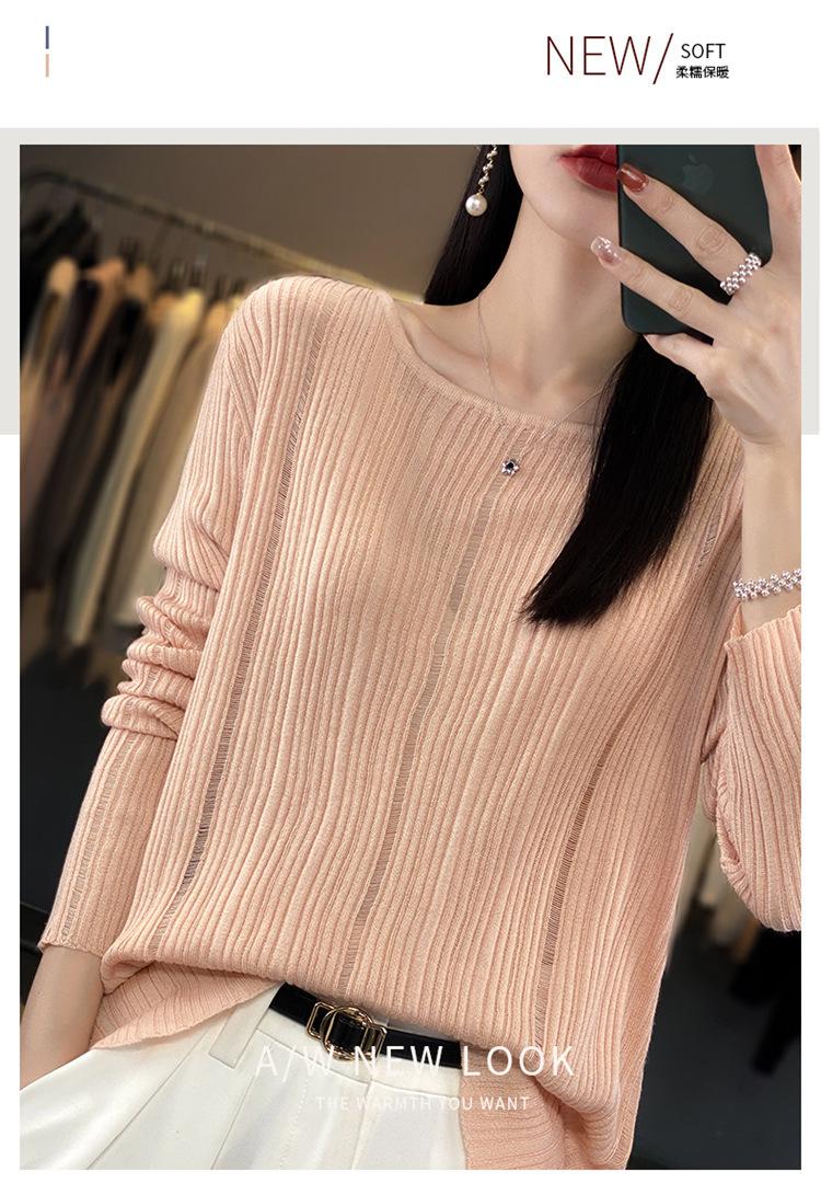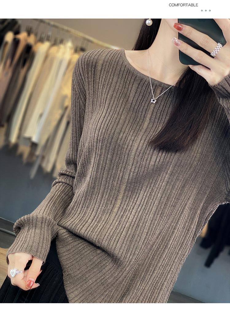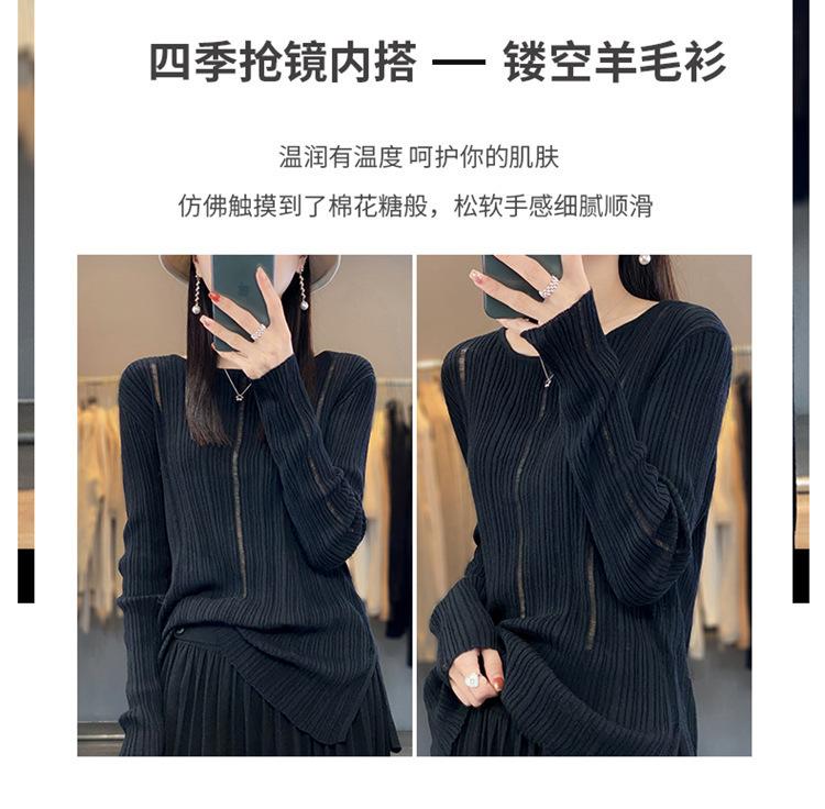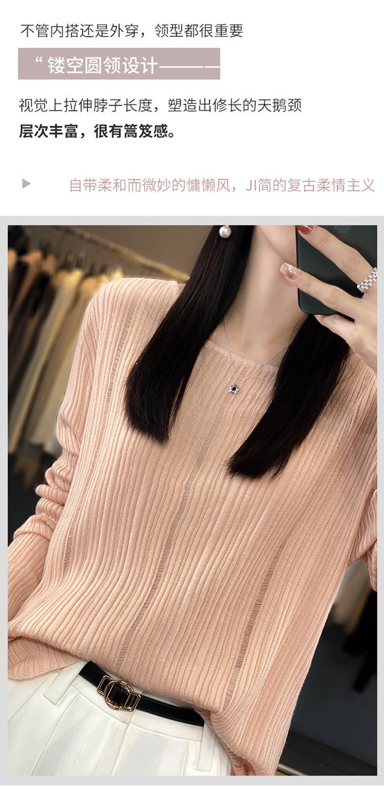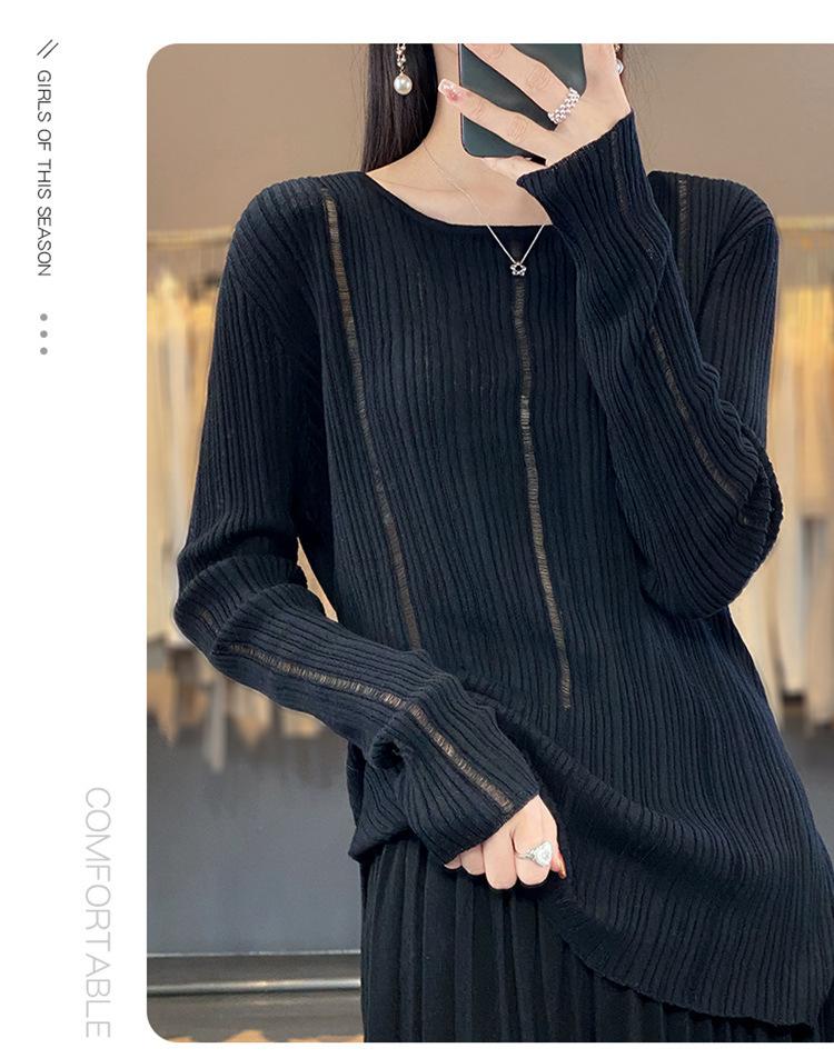 Otoño e invierno 2023 Nuevo estilo coreano para mujer cuello redondo lana peinada manga larga suéter calado para mujer camisa básica de color sólido