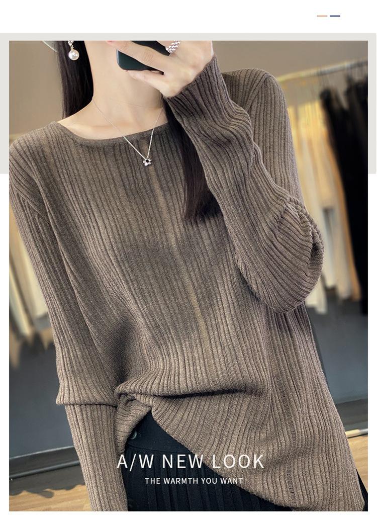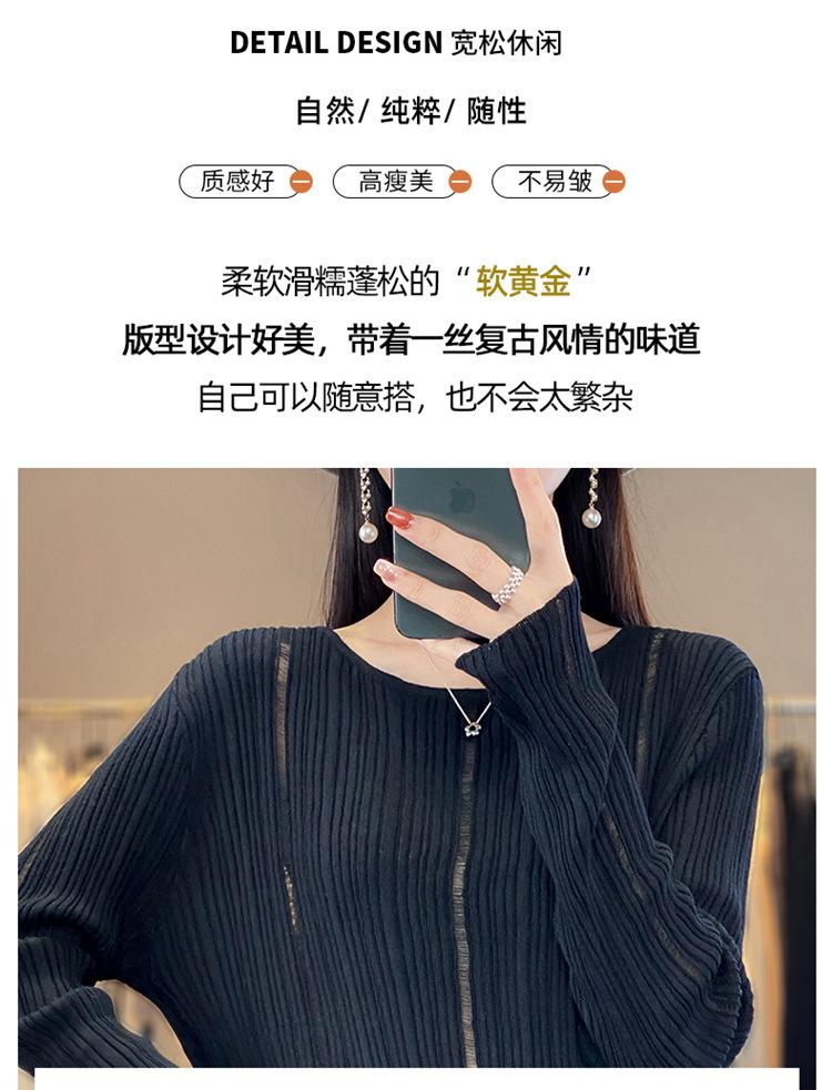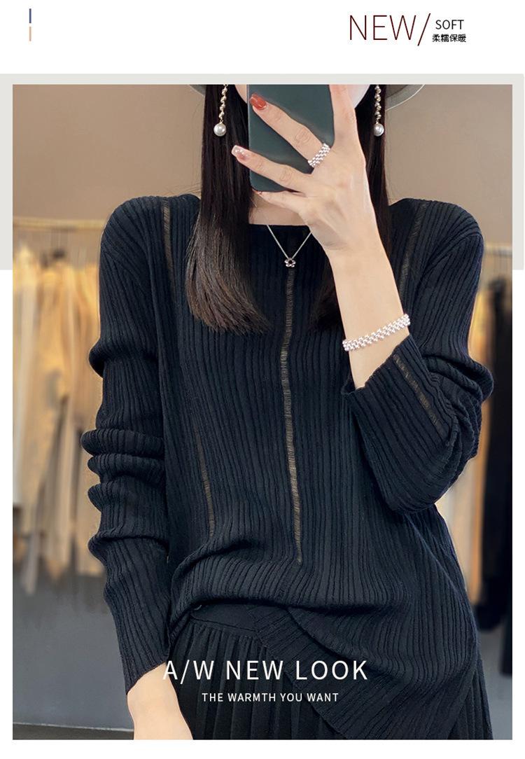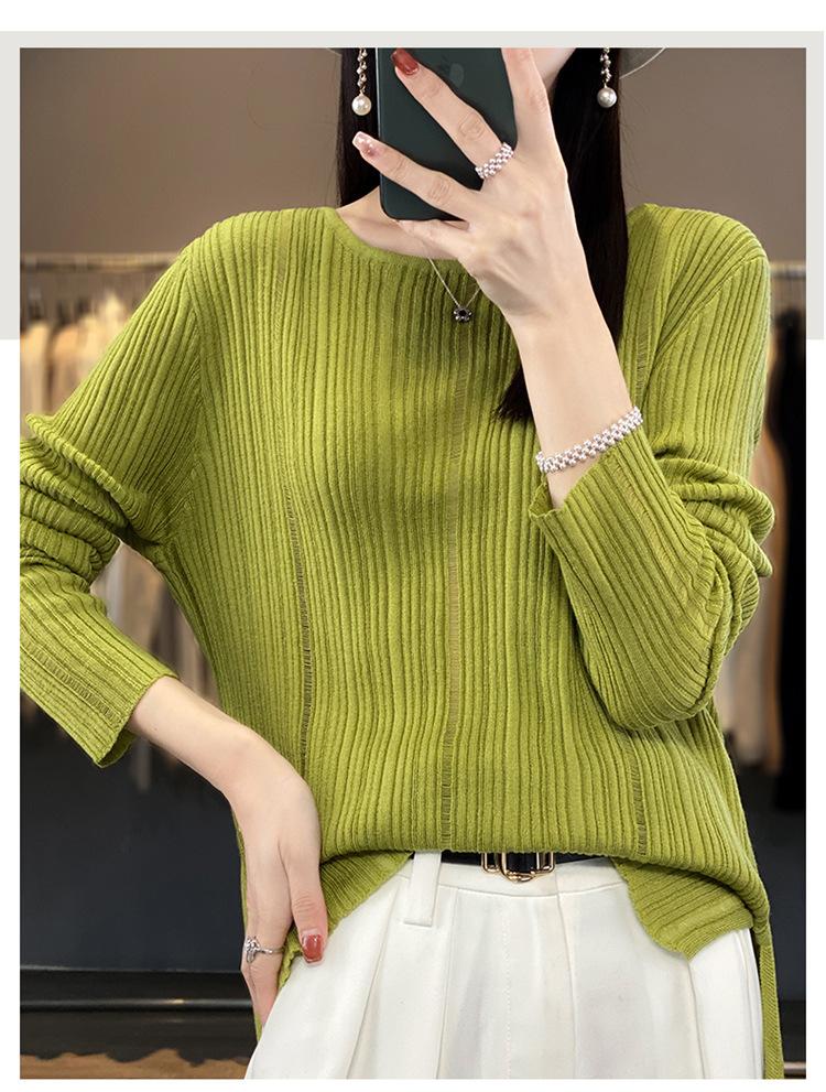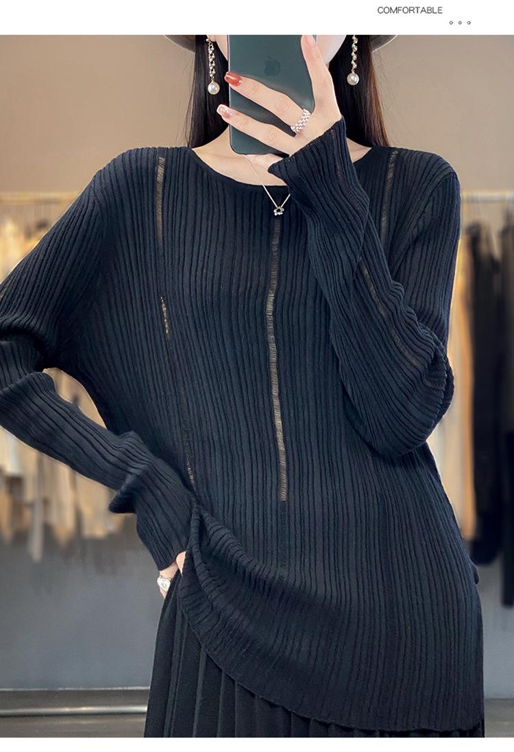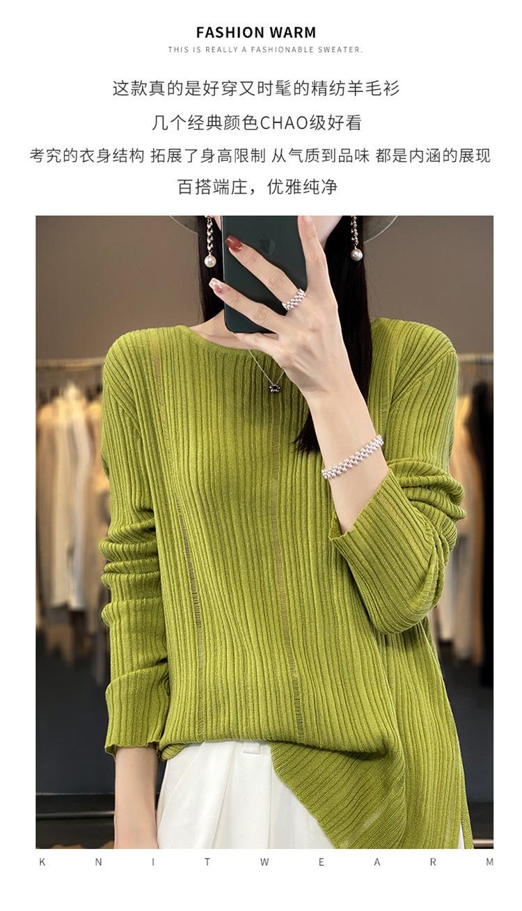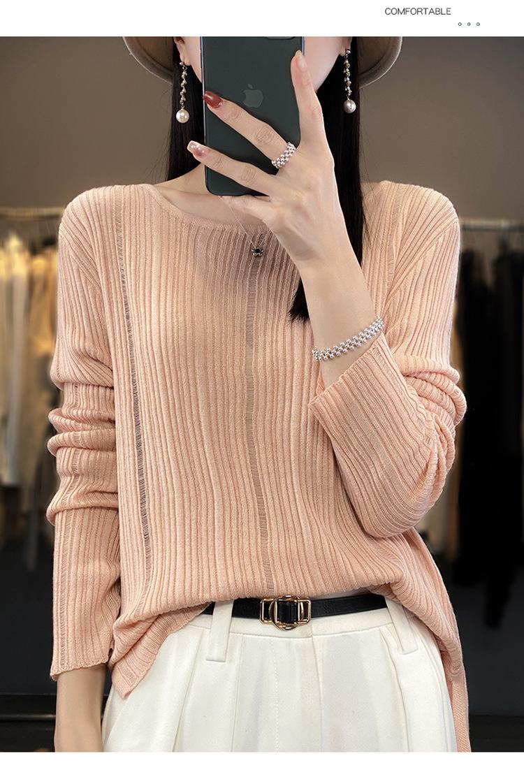 Otoño e invierno 2023 Nuevo estilo coreano para mujer cuello redondo lana peinada manga larga suéter calado para mujer camisa básica de color sólido