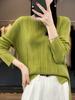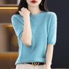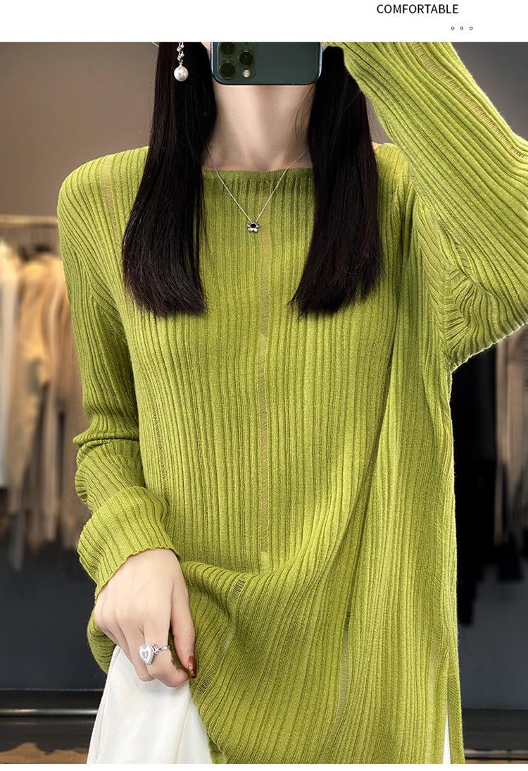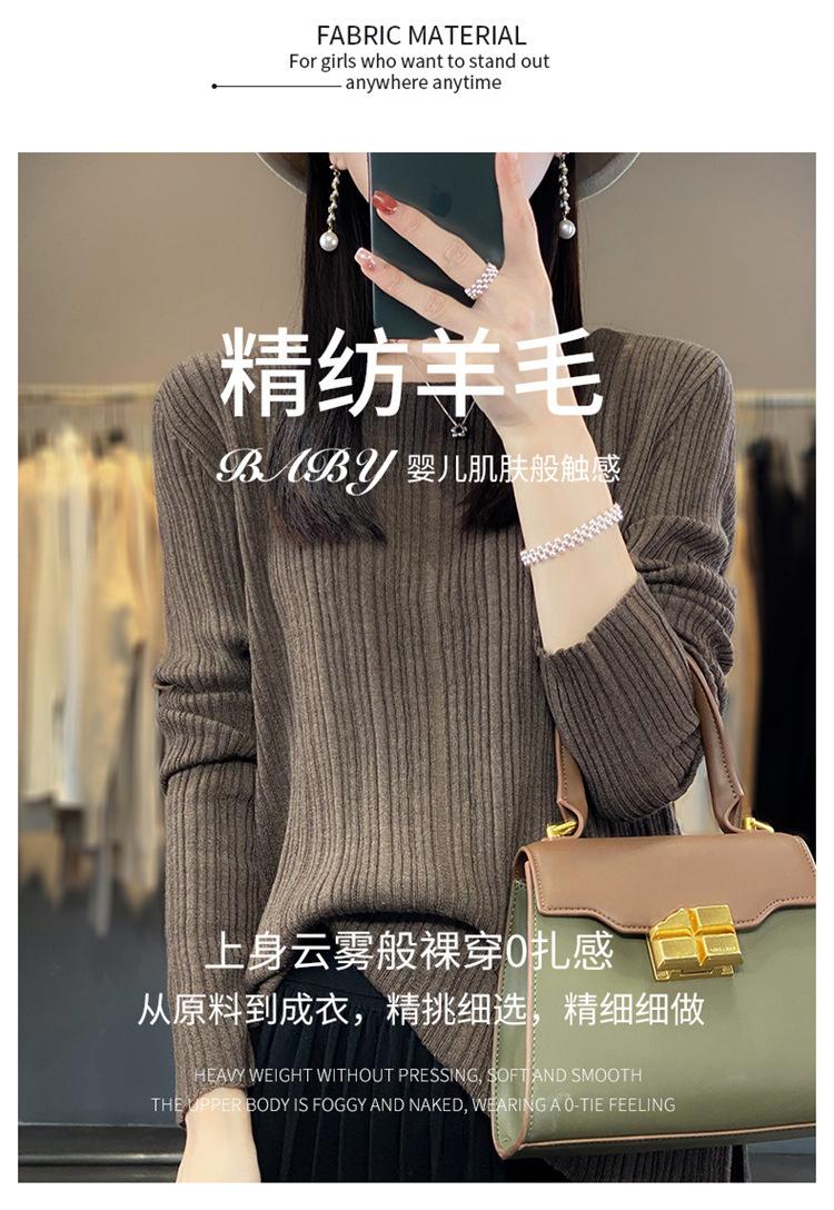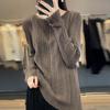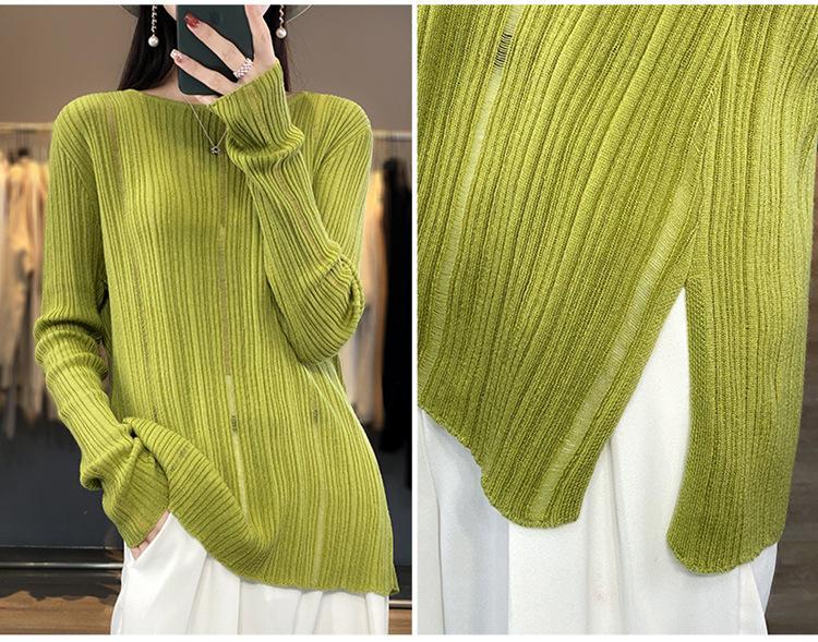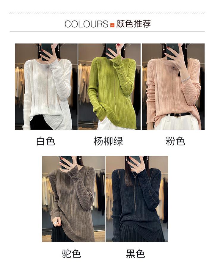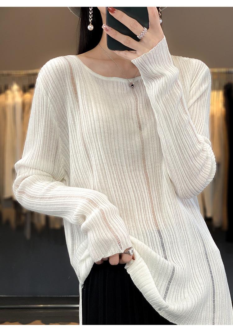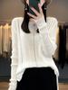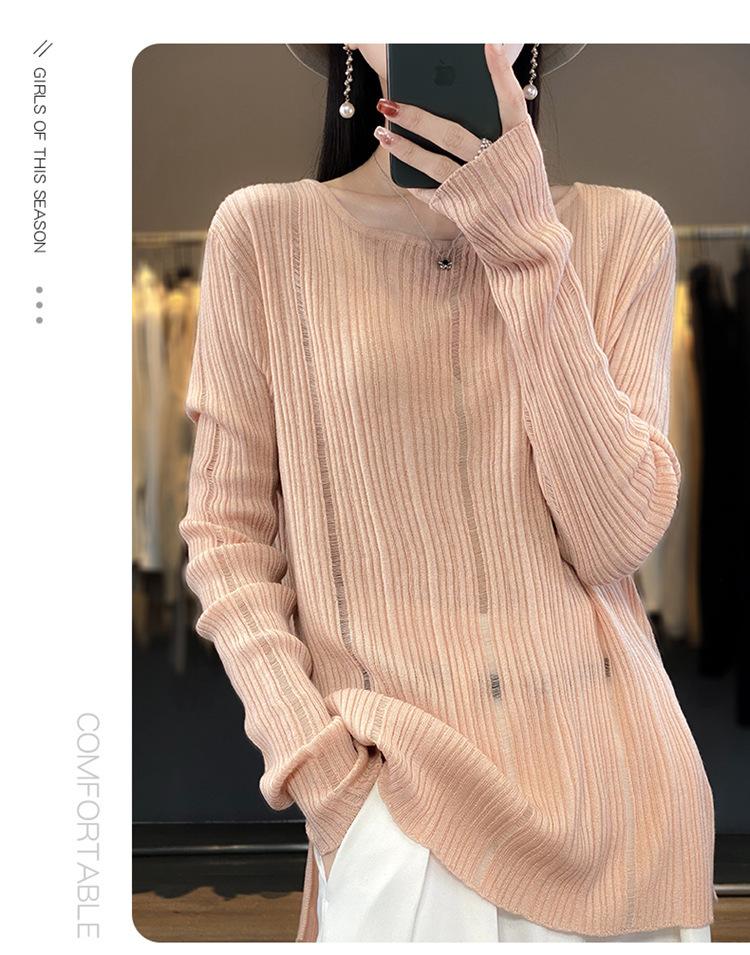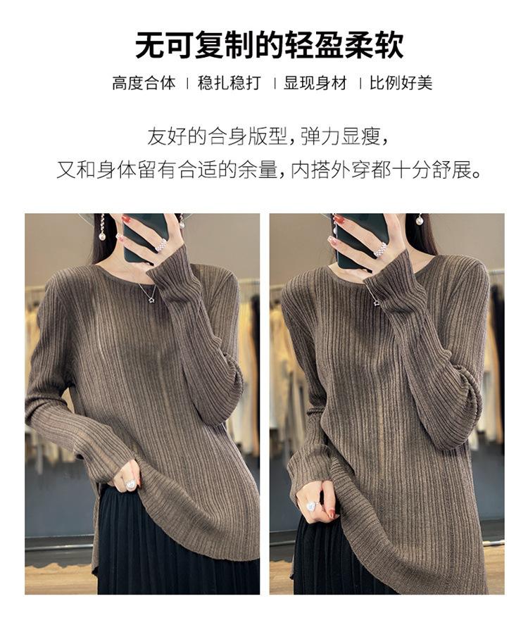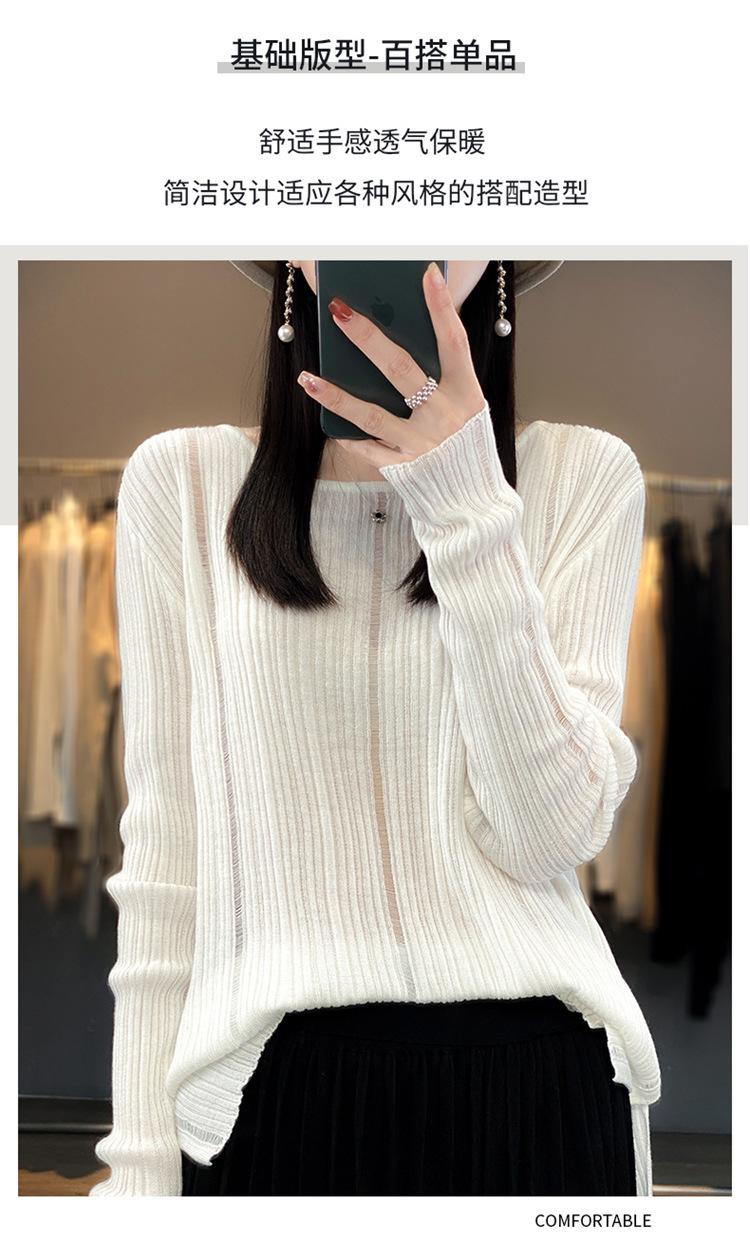 Otoño e invierno 2023 Nuevo estilo coreano para mujer cuello redondo lana peinada manga larga suéter calado para mujer camisa básica de color sólido