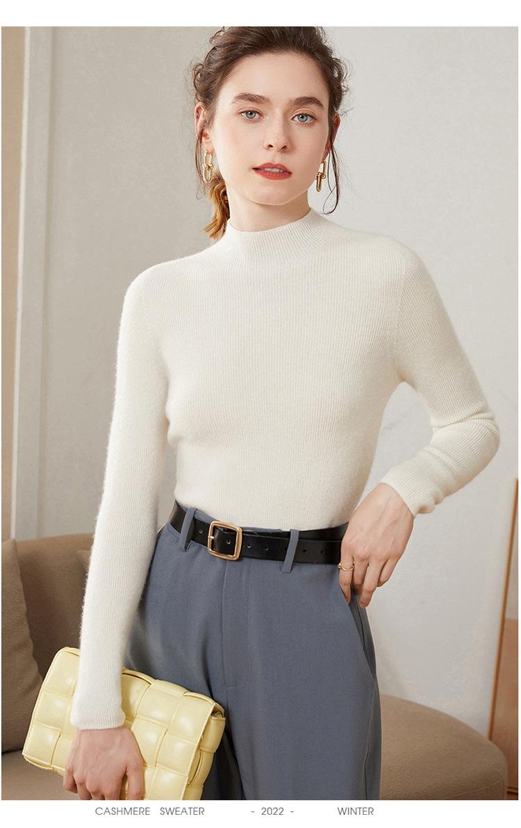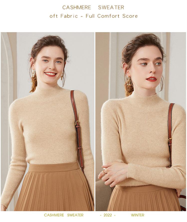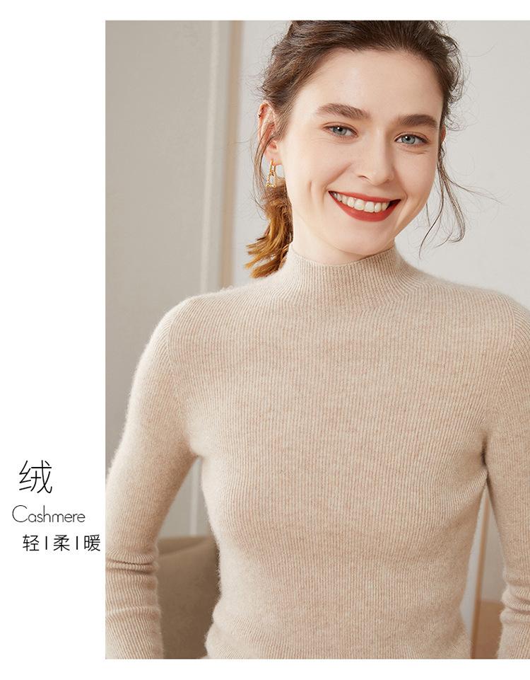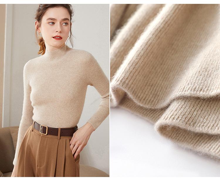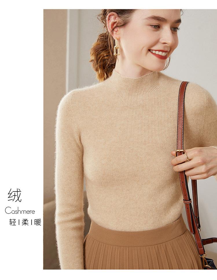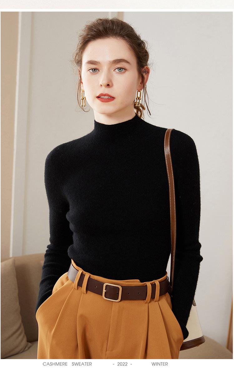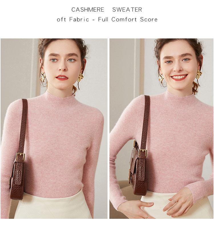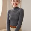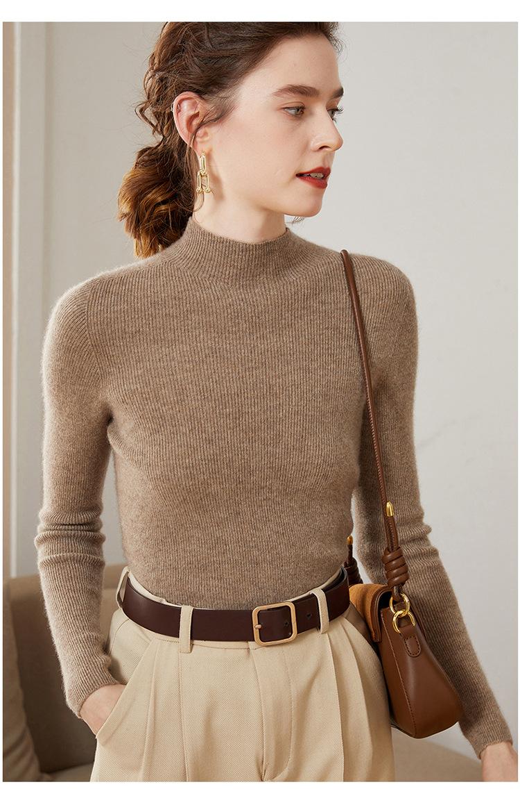 Ropa de primera línea sin costuras ~ suéter de cachemira ajustado de cuello medio alto para mujer 100% cachemira pura interior jersey delgado básico