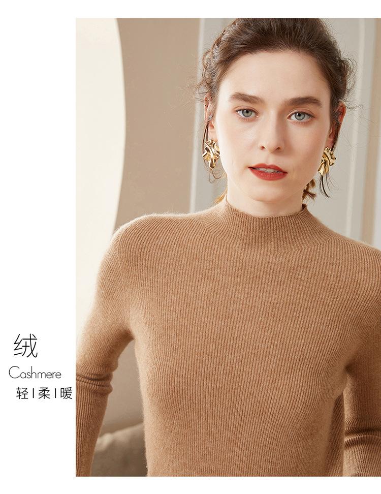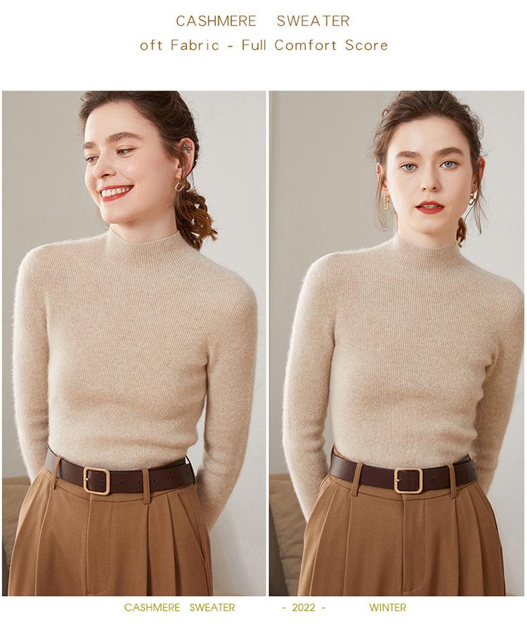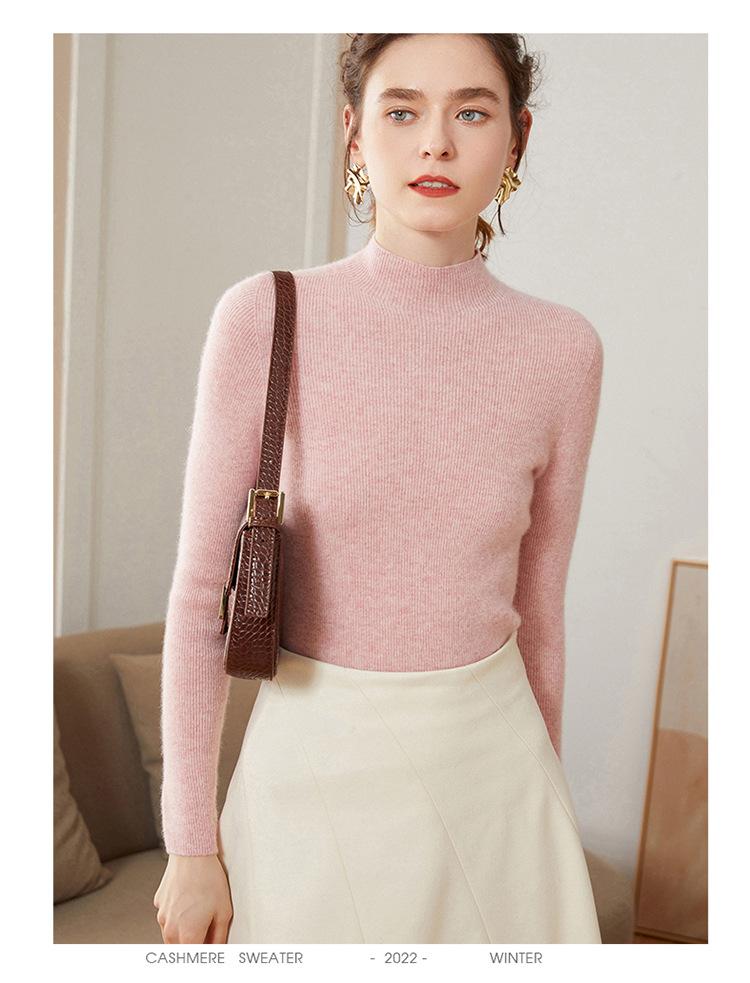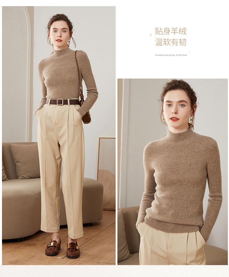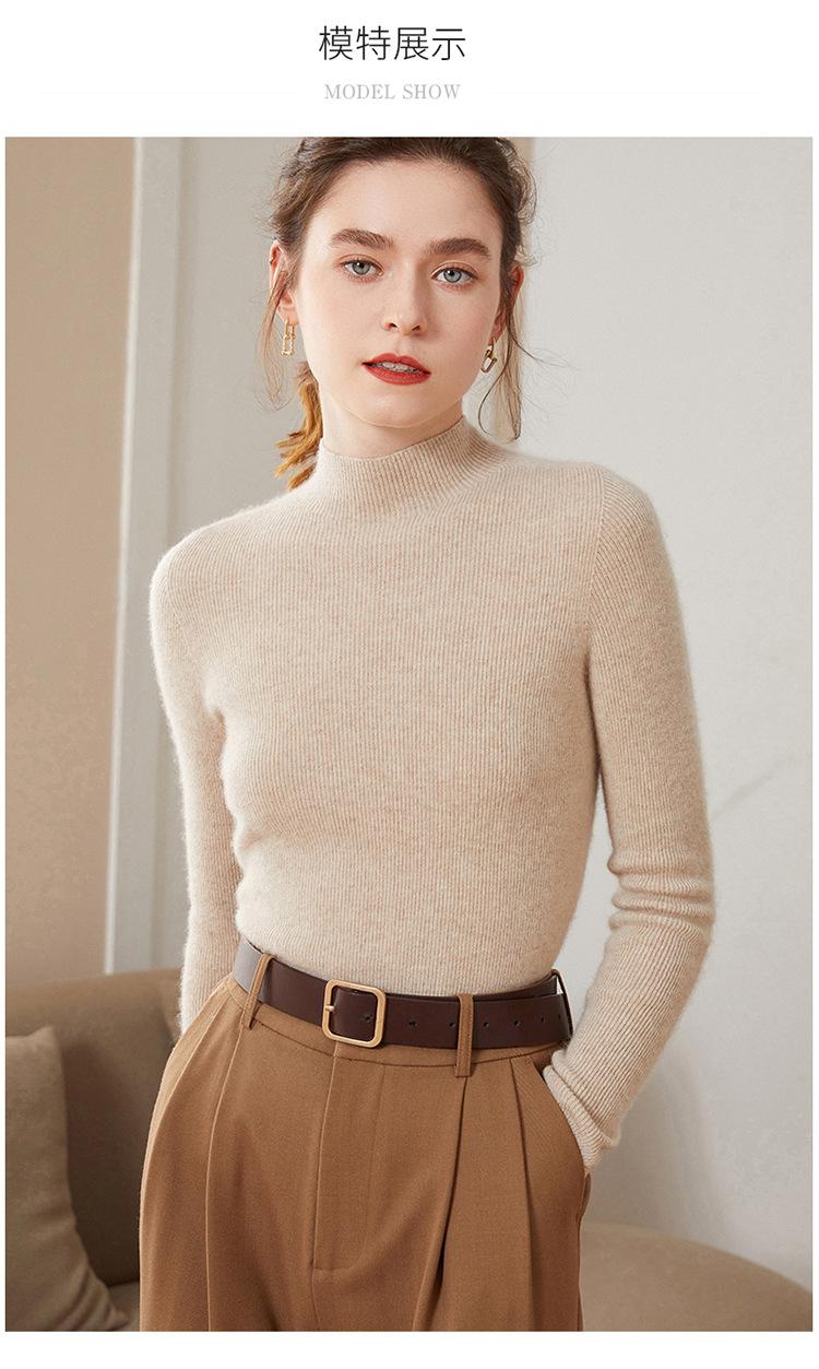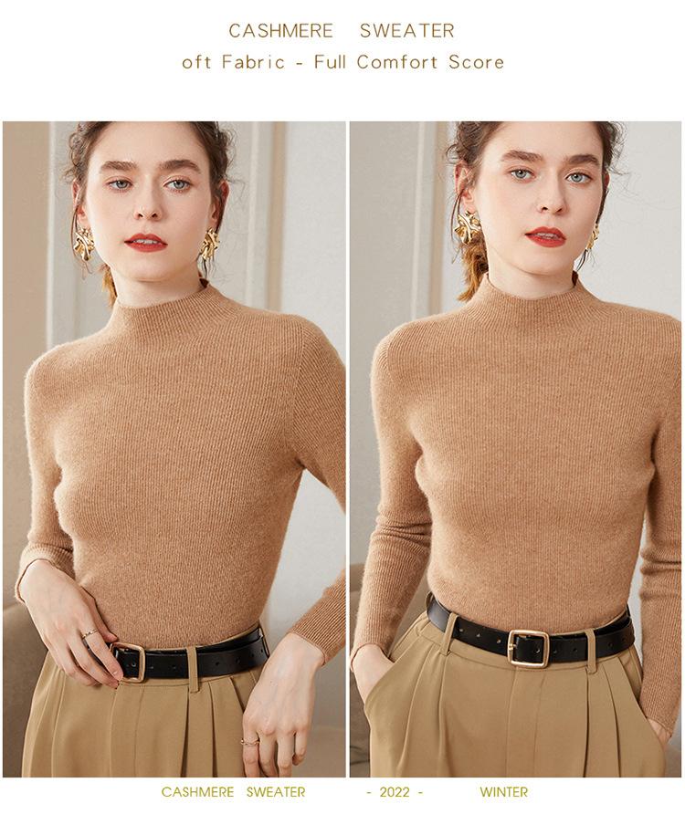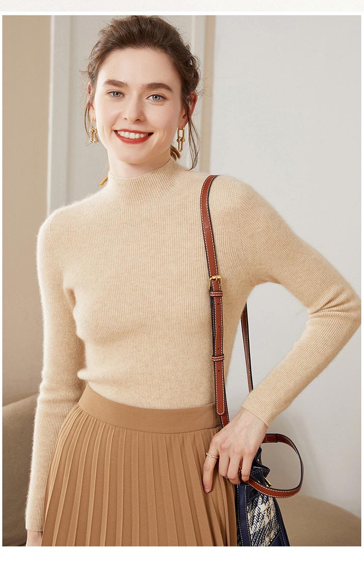 Ropa de primera línea sin costuras ~ suéter de cachemira ajustado de cuello medio alto para mujer 100% cachemira pura interior jersey delgado básico