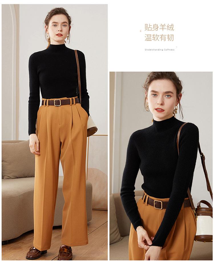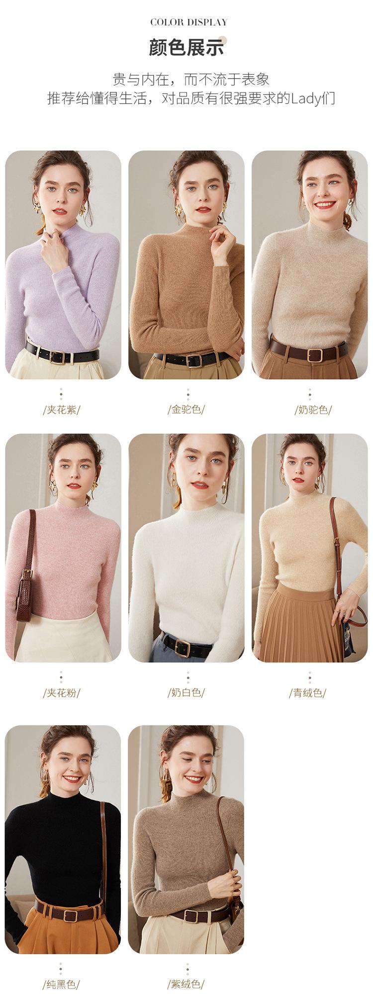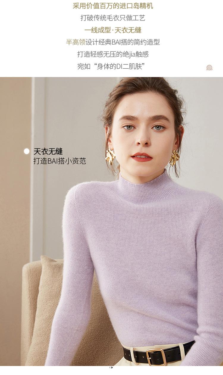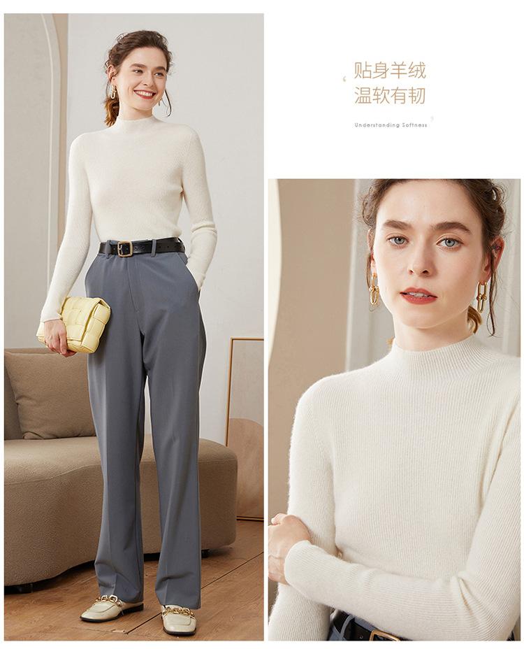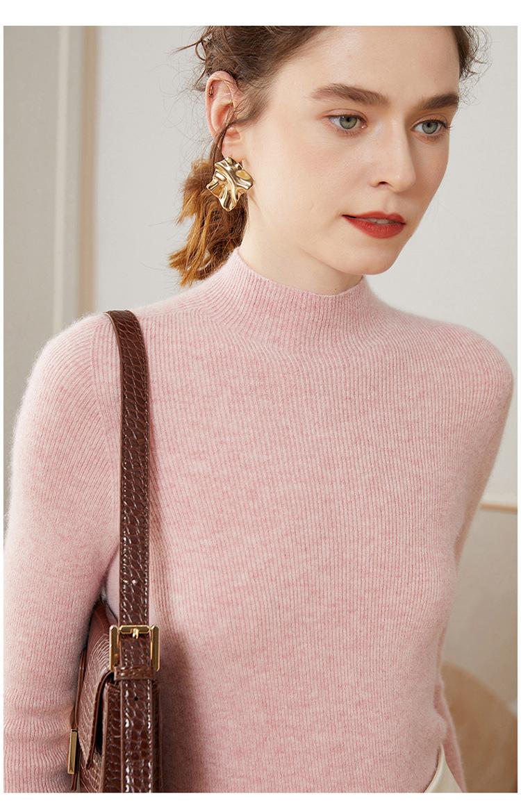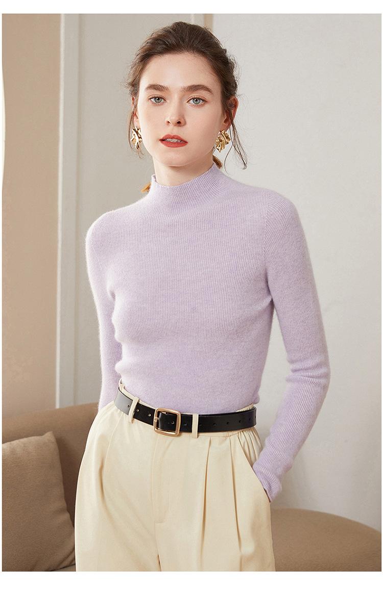 Ropa de primera línea sin costuras ~ suéter de cachemira ajustado de cuello medio alto para mujer 100% cachemira pura interior jersey delgado básico