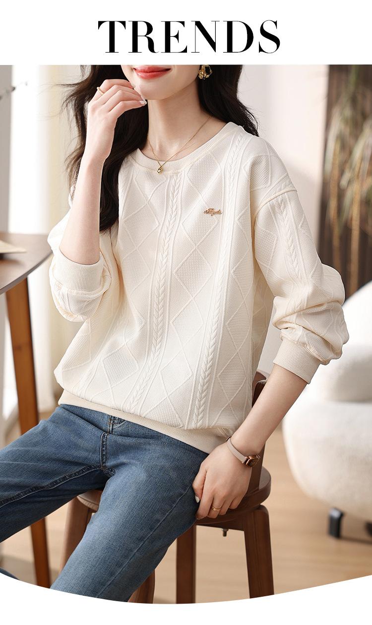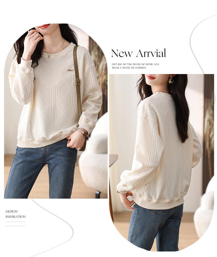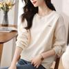 Sudadera de Cuello Redondo para Mujer 2023 Nueva Moda Estilo Primavera y Otoño Blanco Versátil Casual Nicho Tops para Mujer