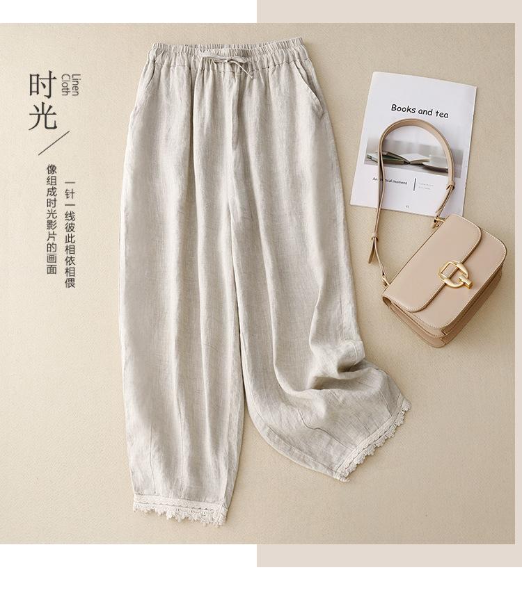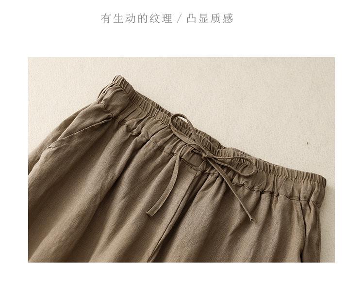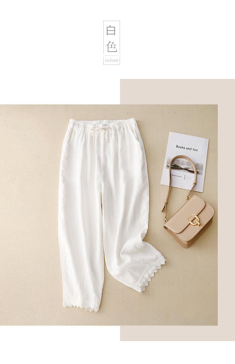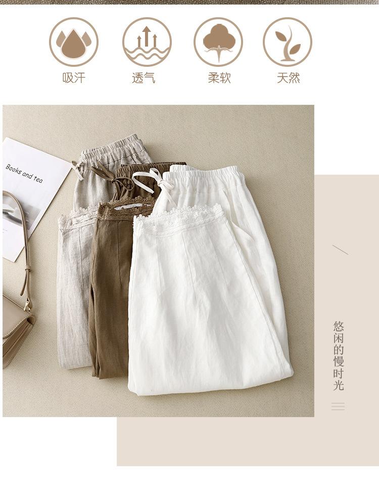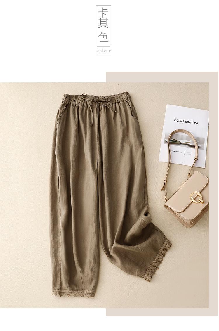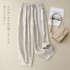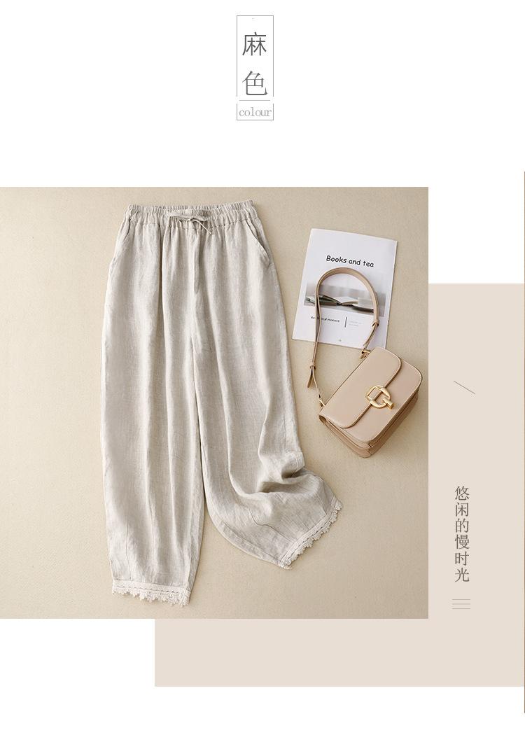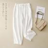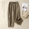 Pantalones Harem de Algodón y Lino 2024 Pantalones Nueve Puntos Cintura Elástica para Mujer Versátiles Color Sólido Pantalones Casuales Mujeres a la Moda