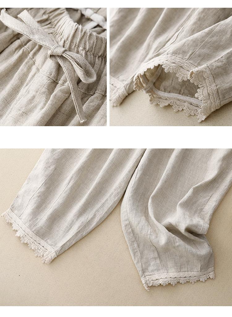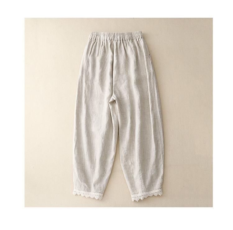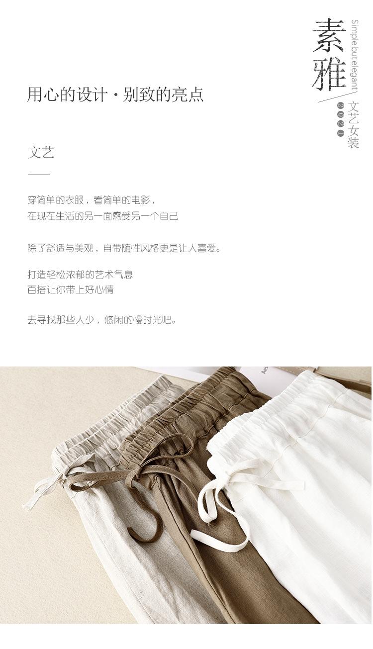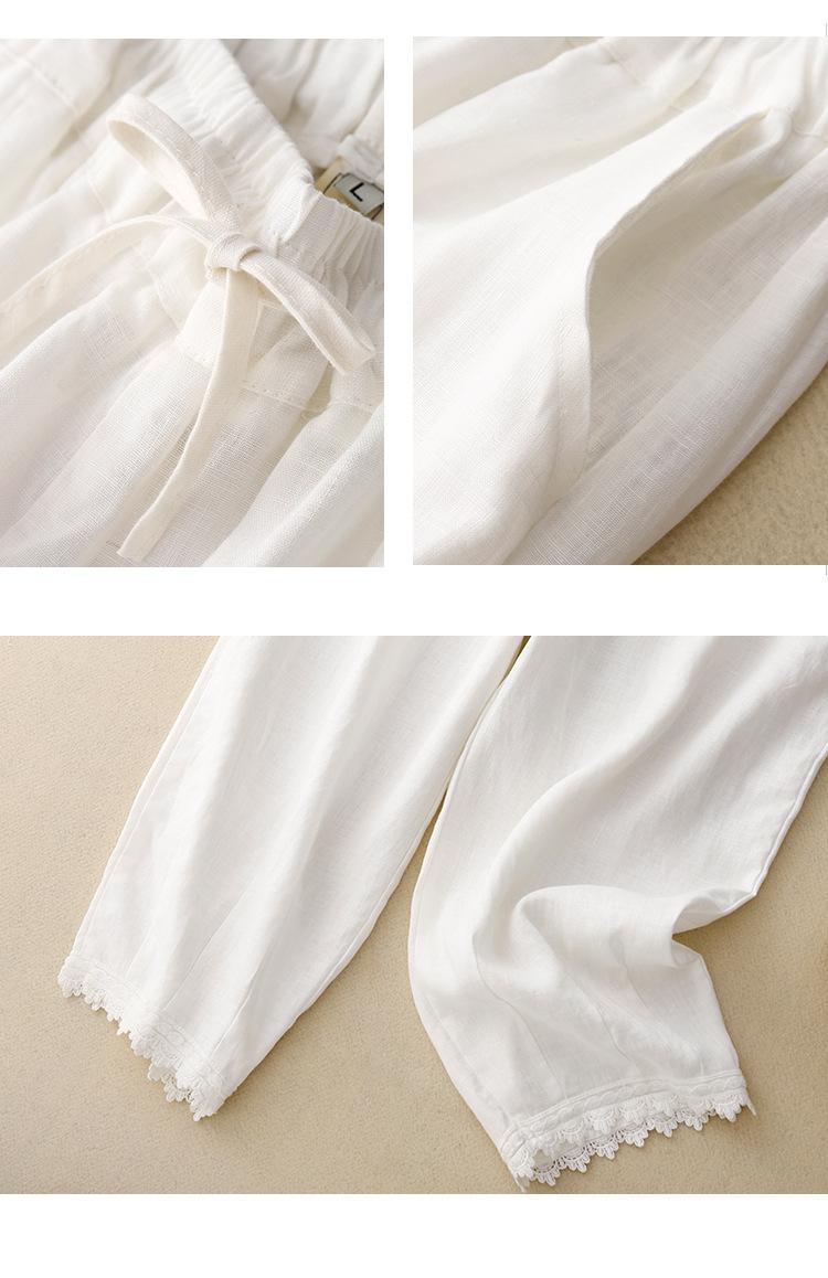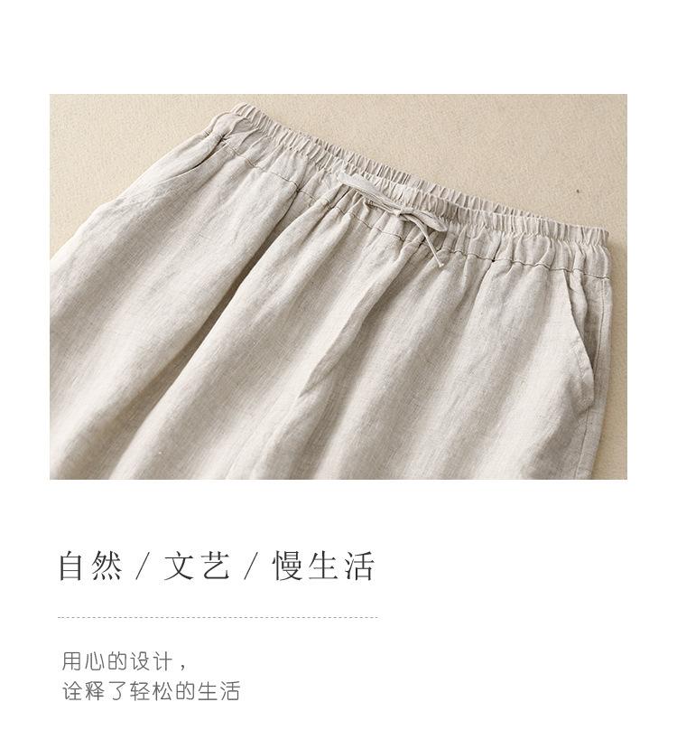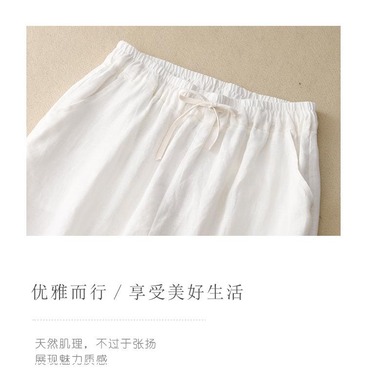 Pantalones Harem de Algodón y Lino 2024 Pantalones Nueve Puntos Cintura Elástica para Mujer Versátiles Color Sólido Pantalones Casuales Mujeres a la Moda