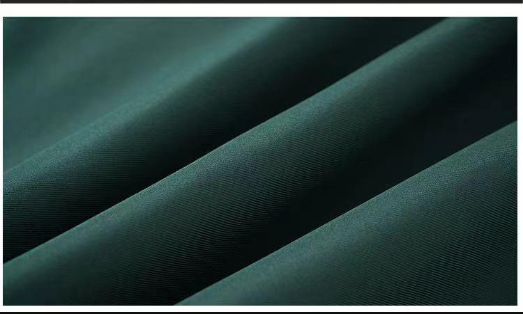 Hecho de tela de uniforme de alta calidad color verde oscuro, es resistente a las bolitas y tiene buena caída.
