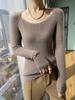 Suéter de cachemira de cuello redondo para mujer, camiseta de manga corta 100% cachemira pura, suéter de punto fino que combina con todo, ropa interior, otoño e invierno, nuevo