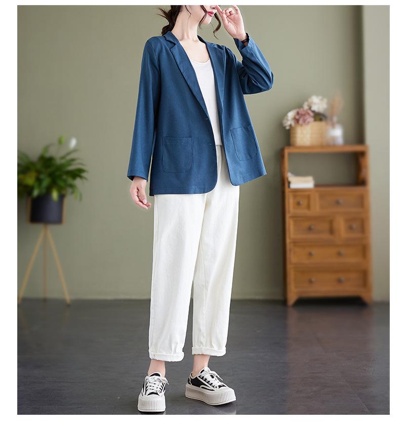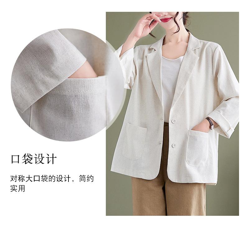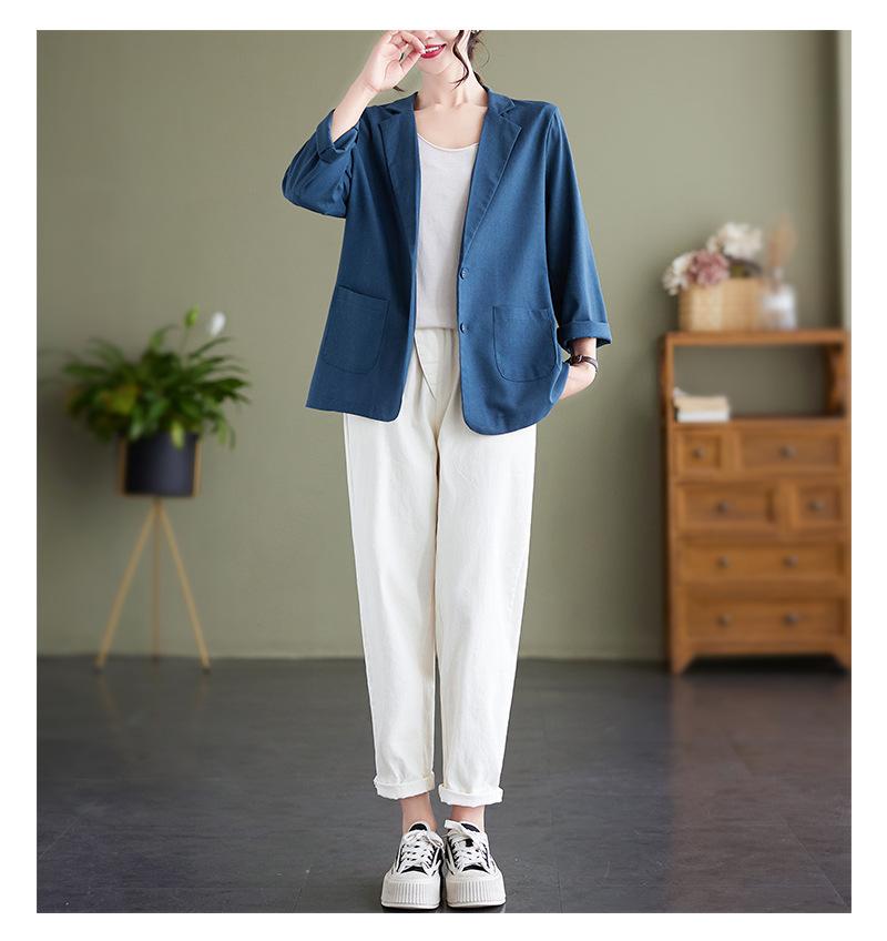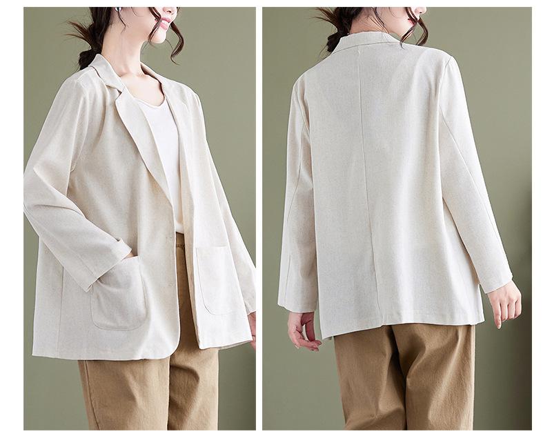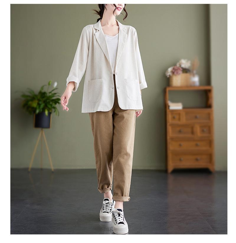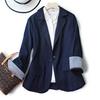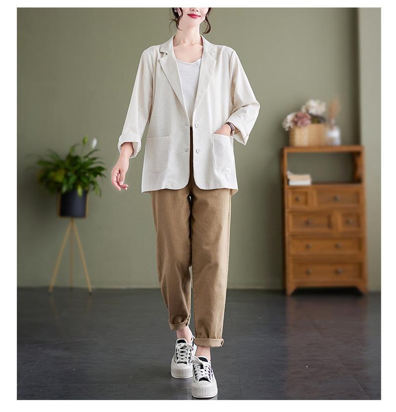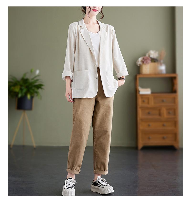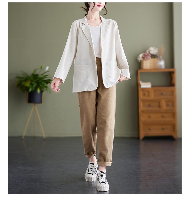 Foto Real de Otoño 2025 Nuevo Traje Pequeño Casual de Lino Chaqueta de Mujer de Manga Larga Delgada de Algodón y Lino Traje Pequeño para Mujer