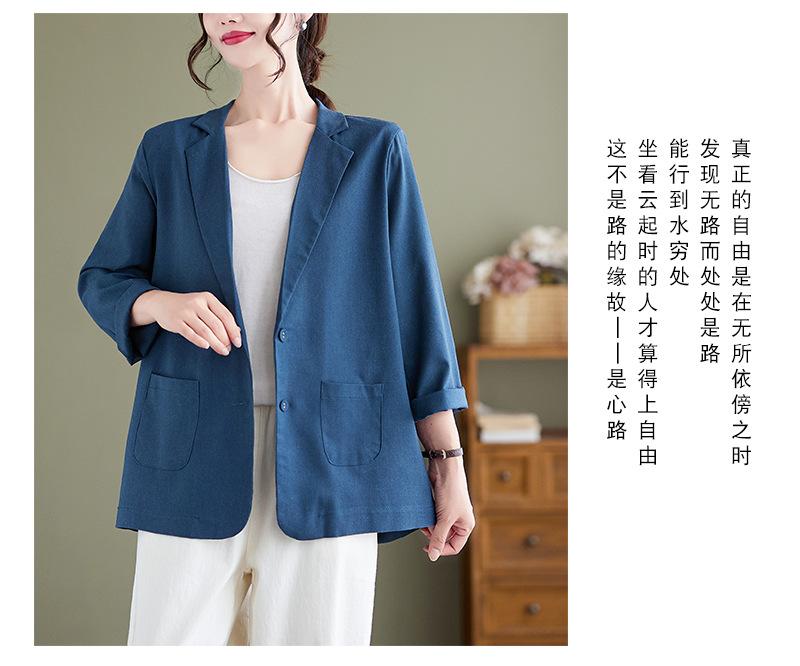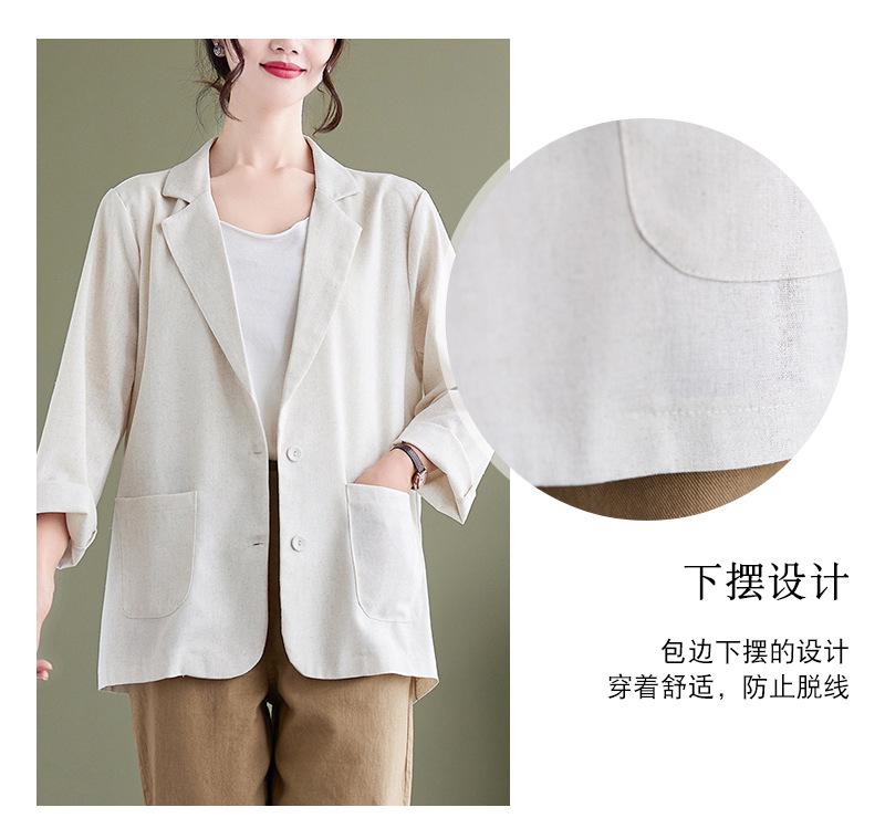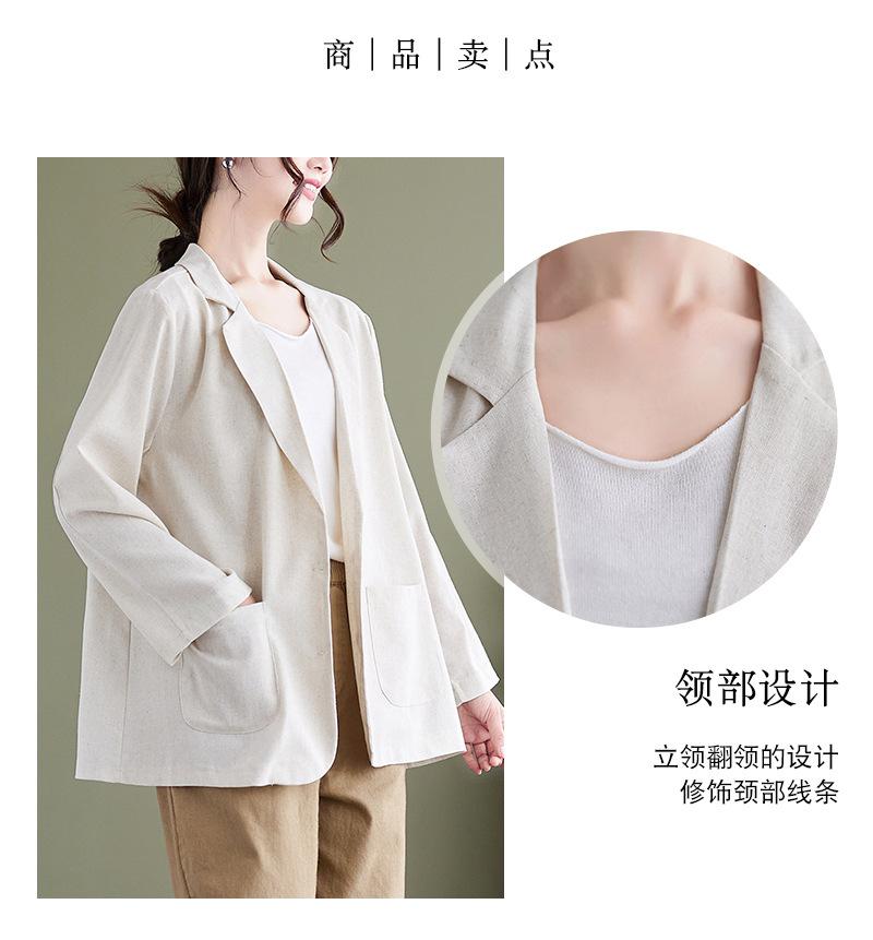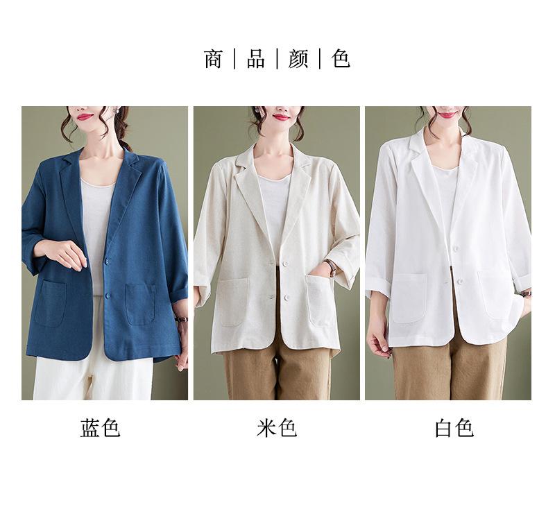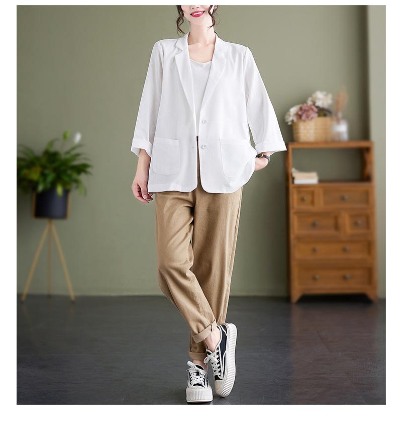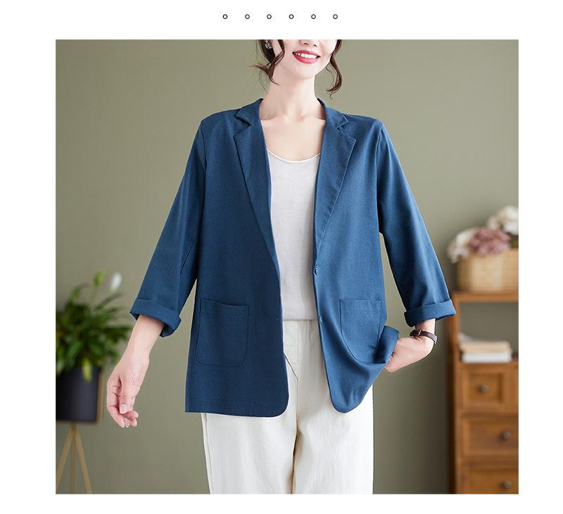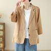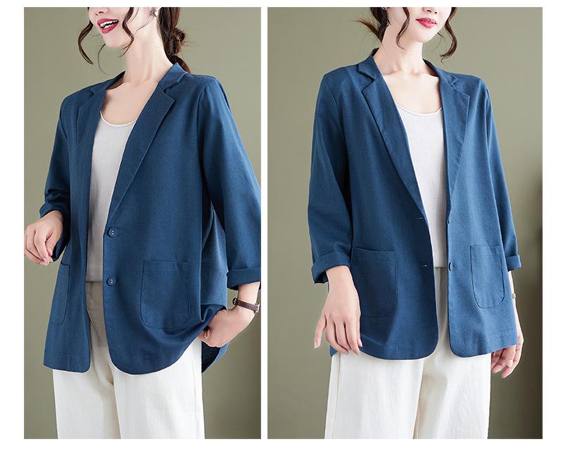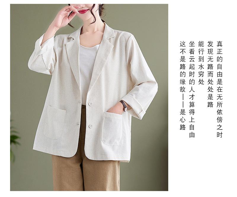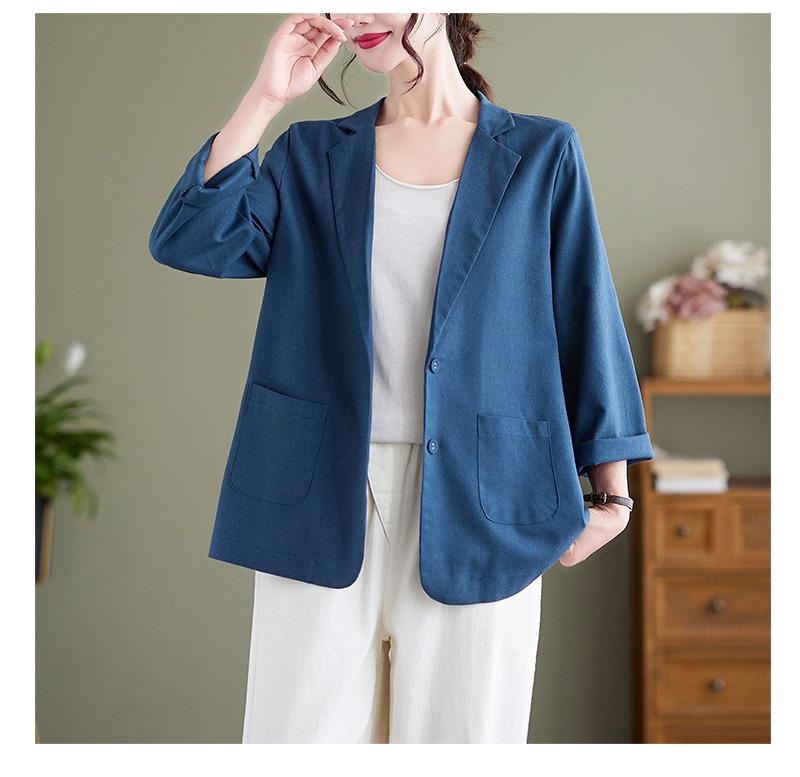Foto Real de Otoño 2025 Nuevo Traje Pequeño Casual de Lino Chaqueta de Mujer de Manga Larga Delgada de Algodón y Lino Traje Pequeño para Mujer