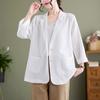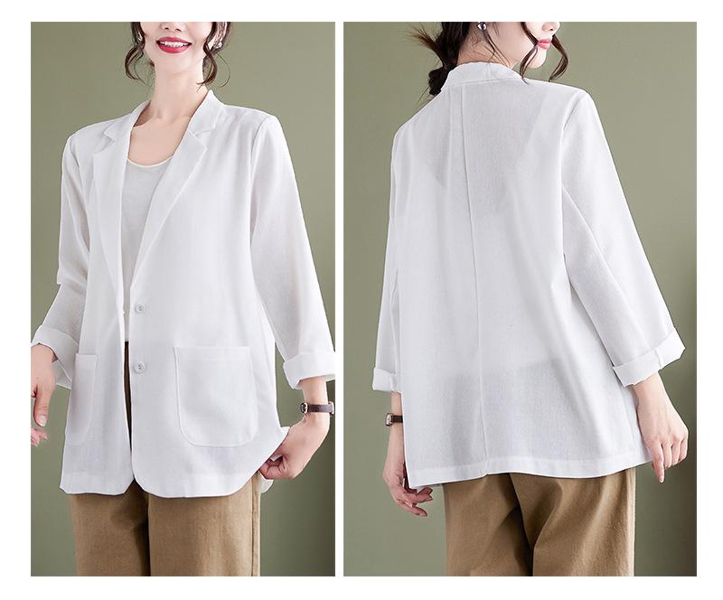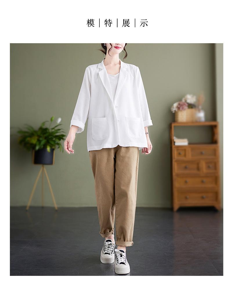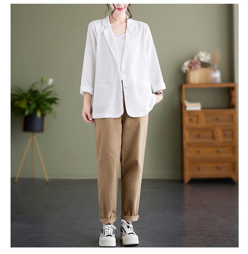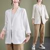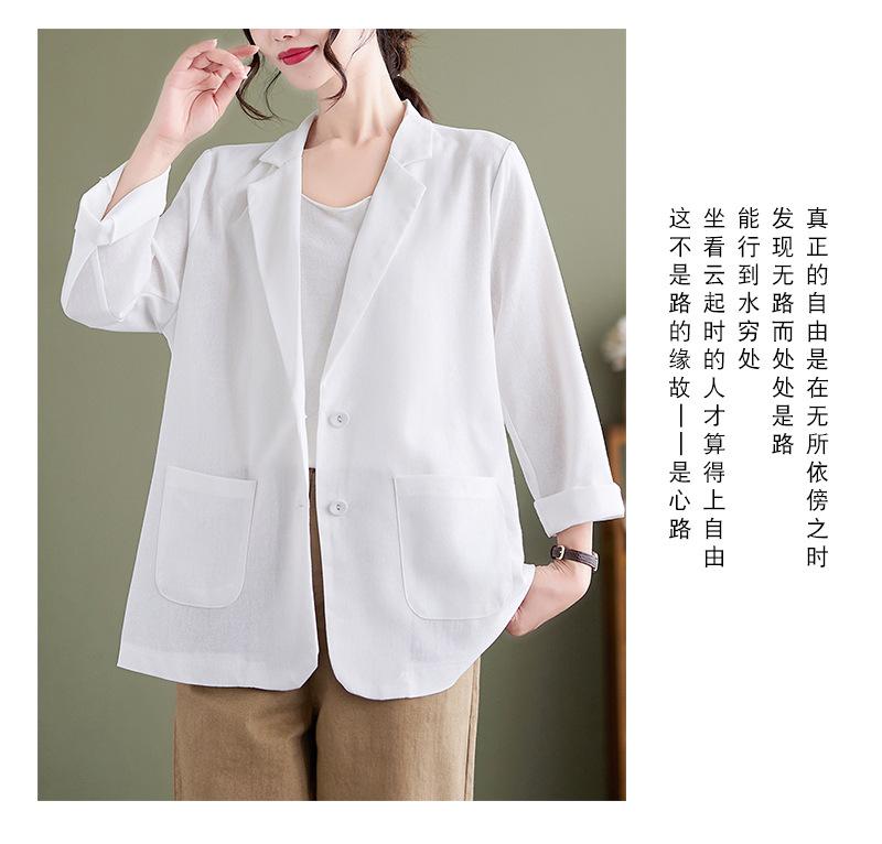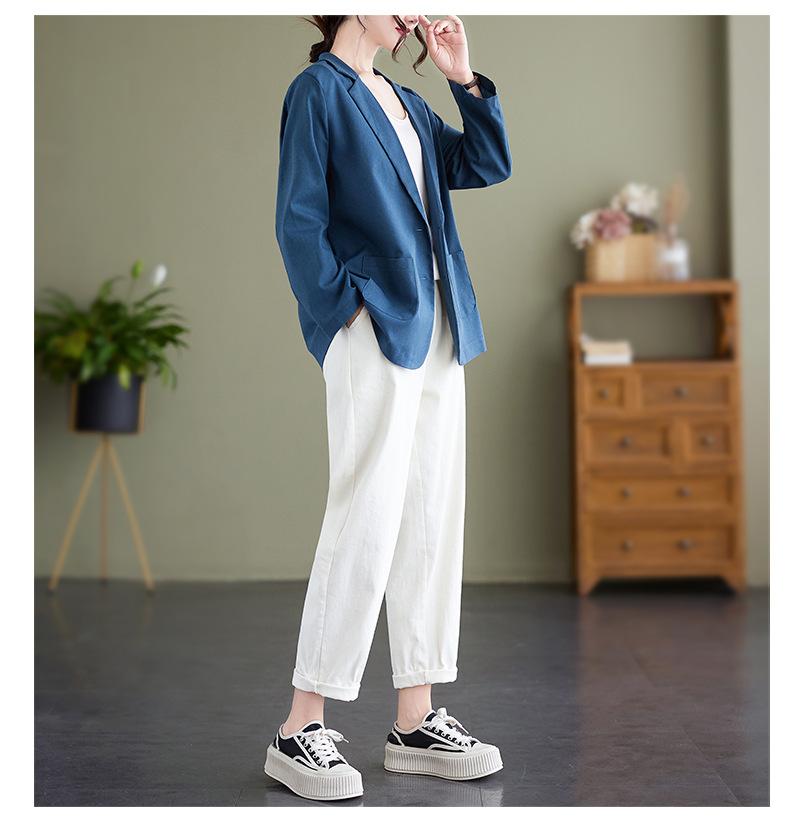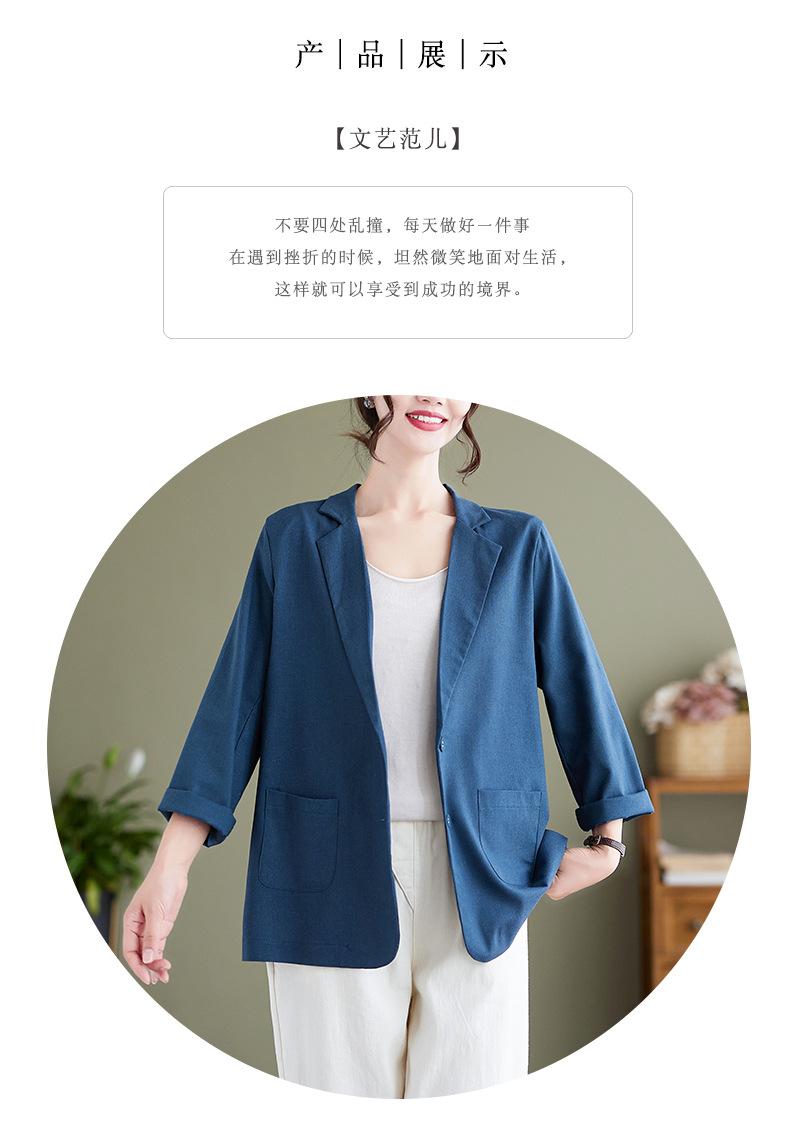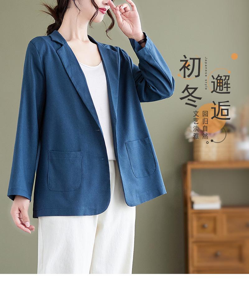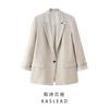 Foto Real de Otoño 2025 Nuevo Traje Pequeño Casual de Lino Chaqueta de Mujer de Manga Larga Delgada de Algodón y Lino Traje Pequeño para Mujer