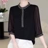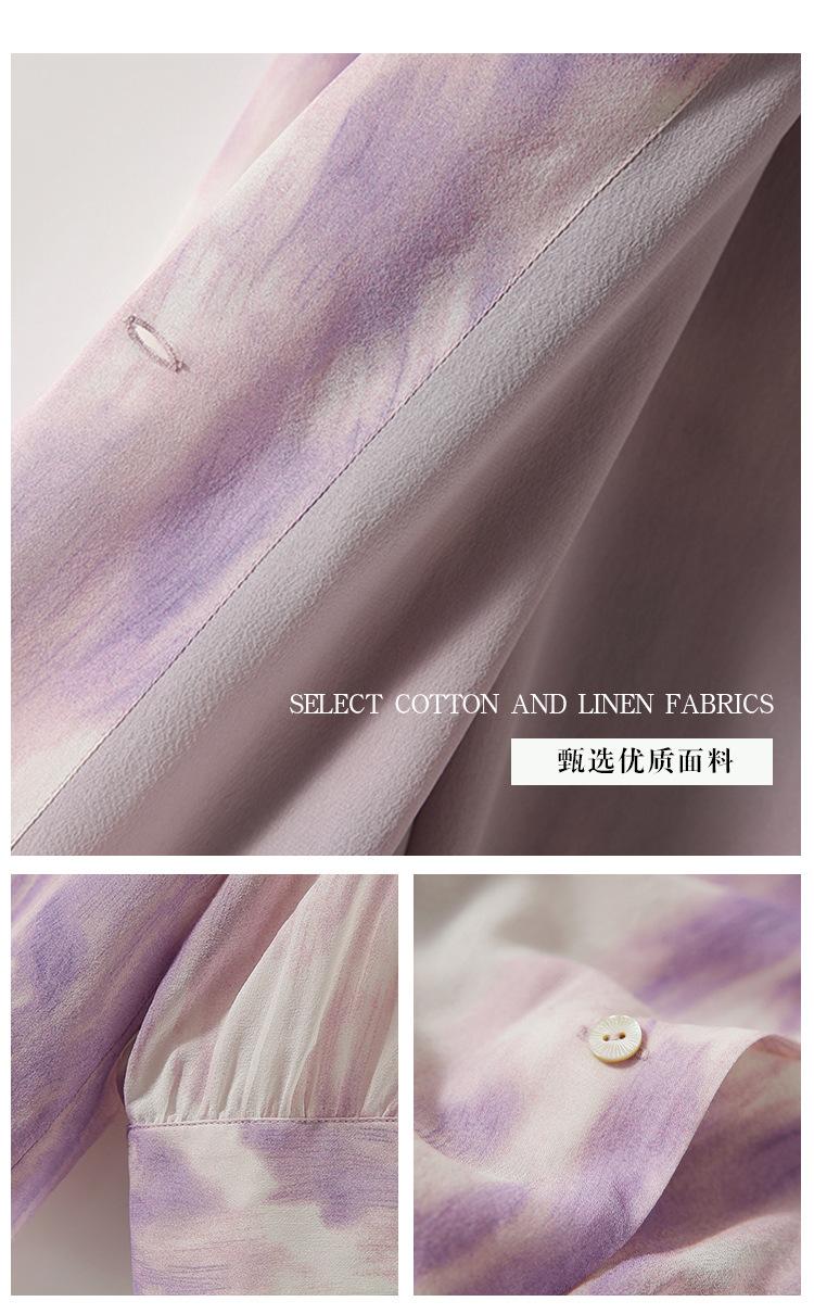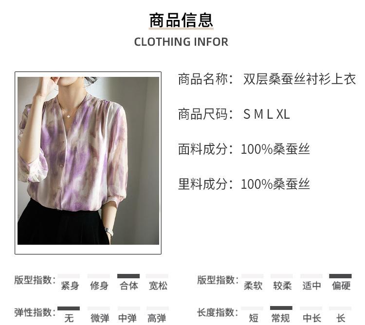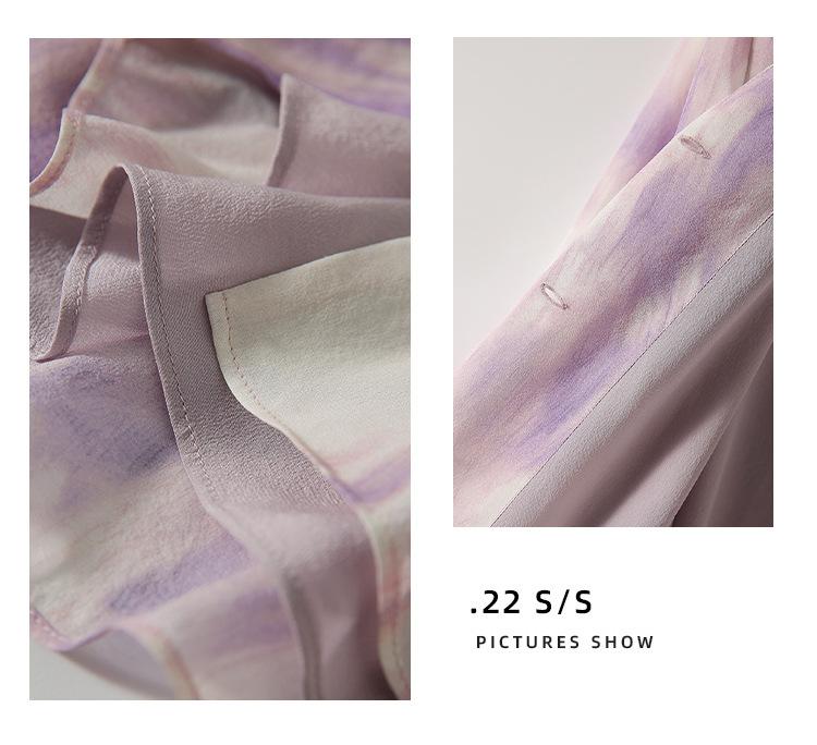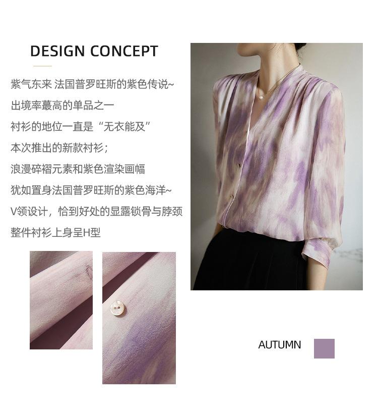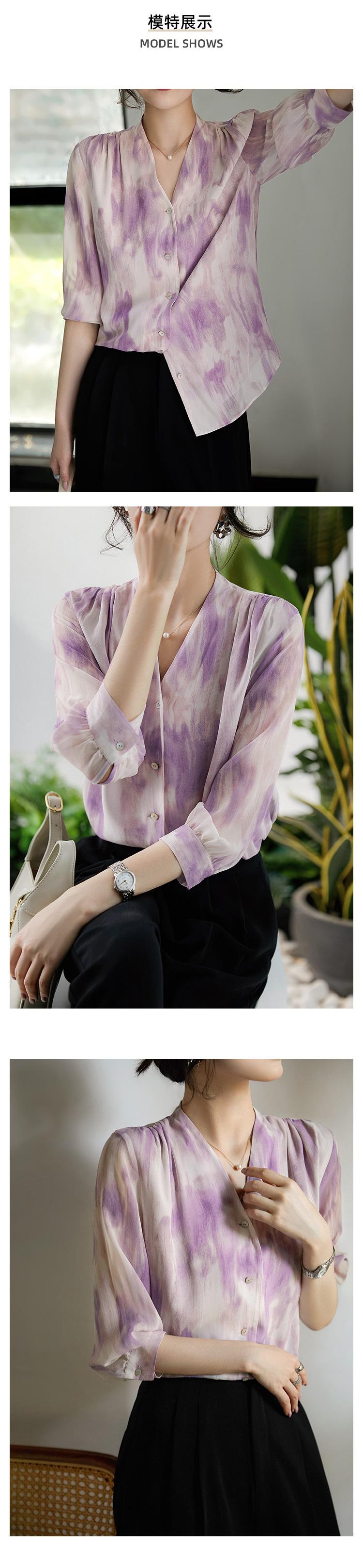 Camisa de Seda Francesa Morada Cuello en V Camisa de Seda de Morera Pesada de Doble Capa Verano 2025 Top Estampado para Mujer