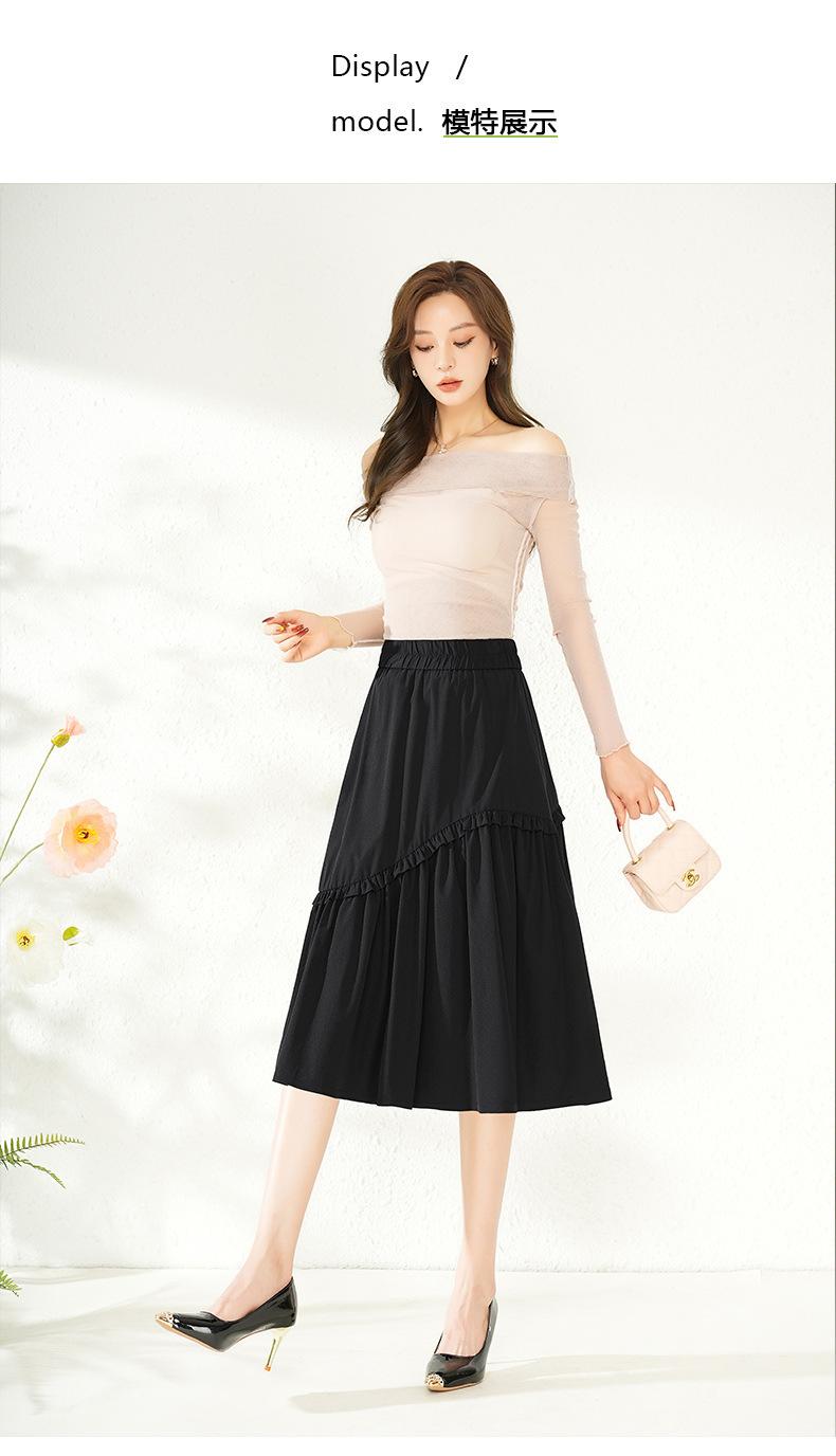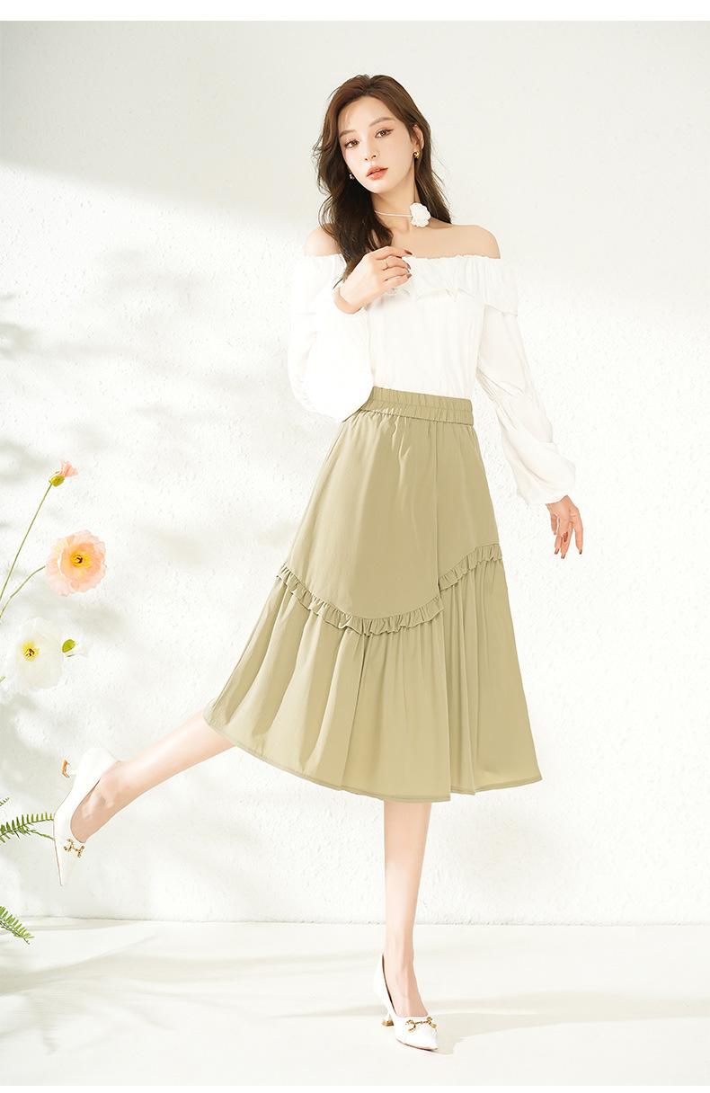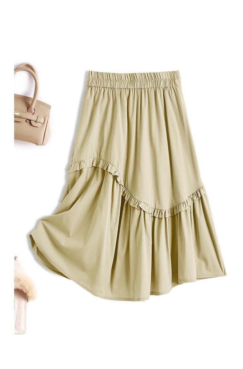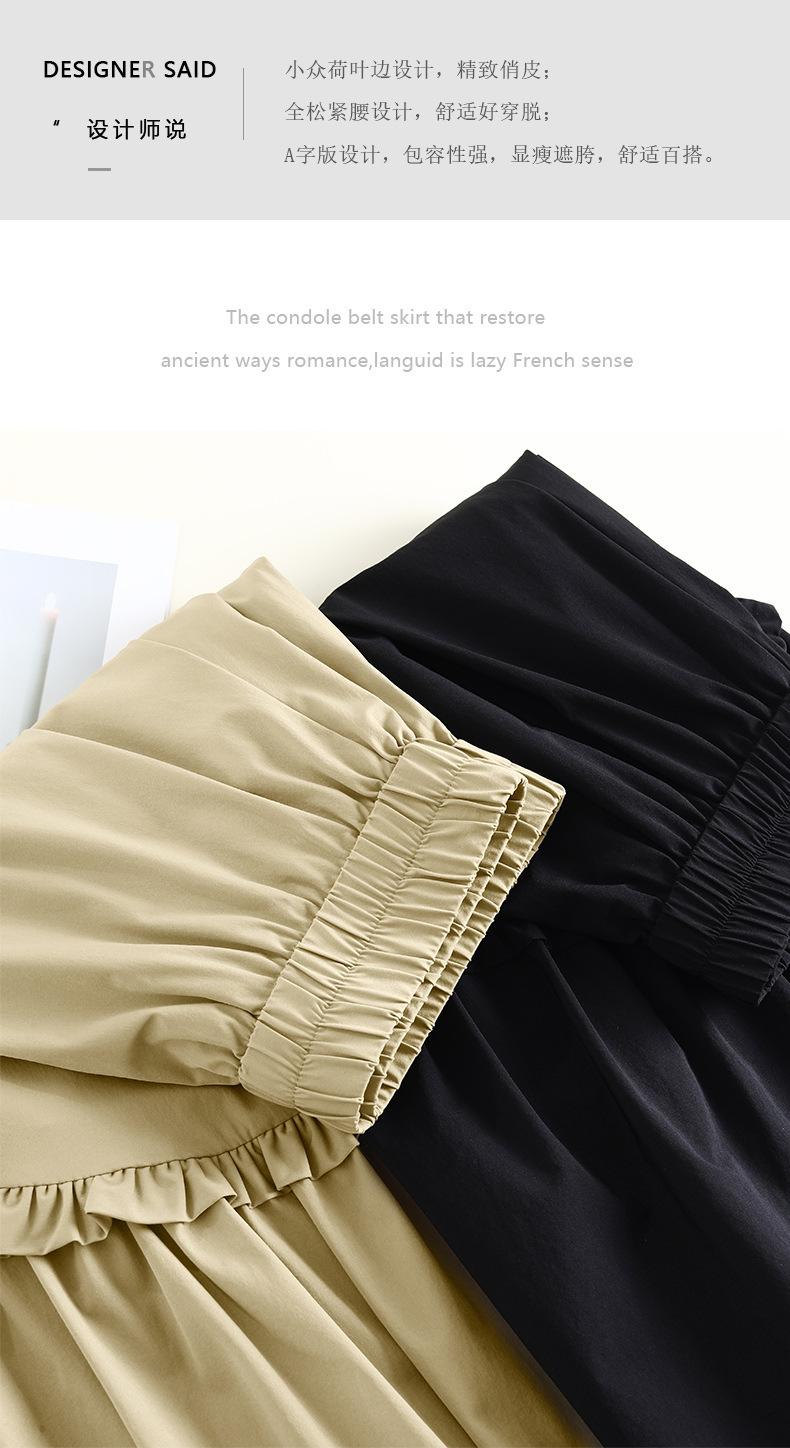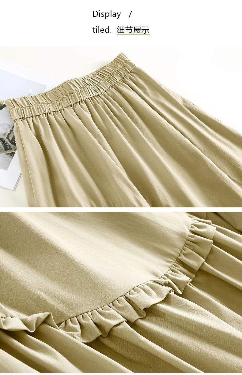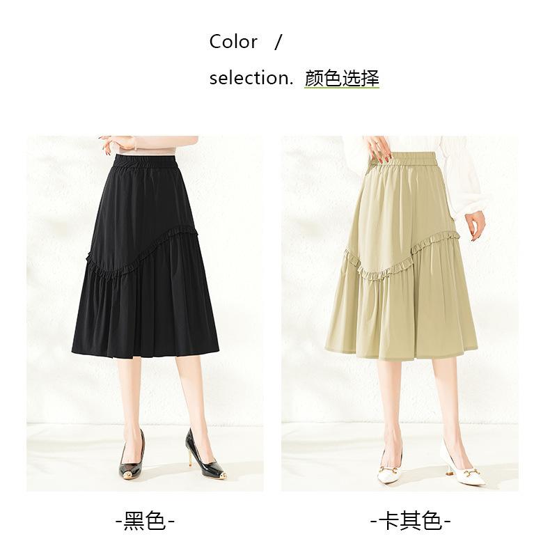 Falda casual acampanada de cintura elástica para mujer 2025 Verano Nuevo Estilo Coreano Falda plisada delgada Falda de largo medio con dobladillo amplio