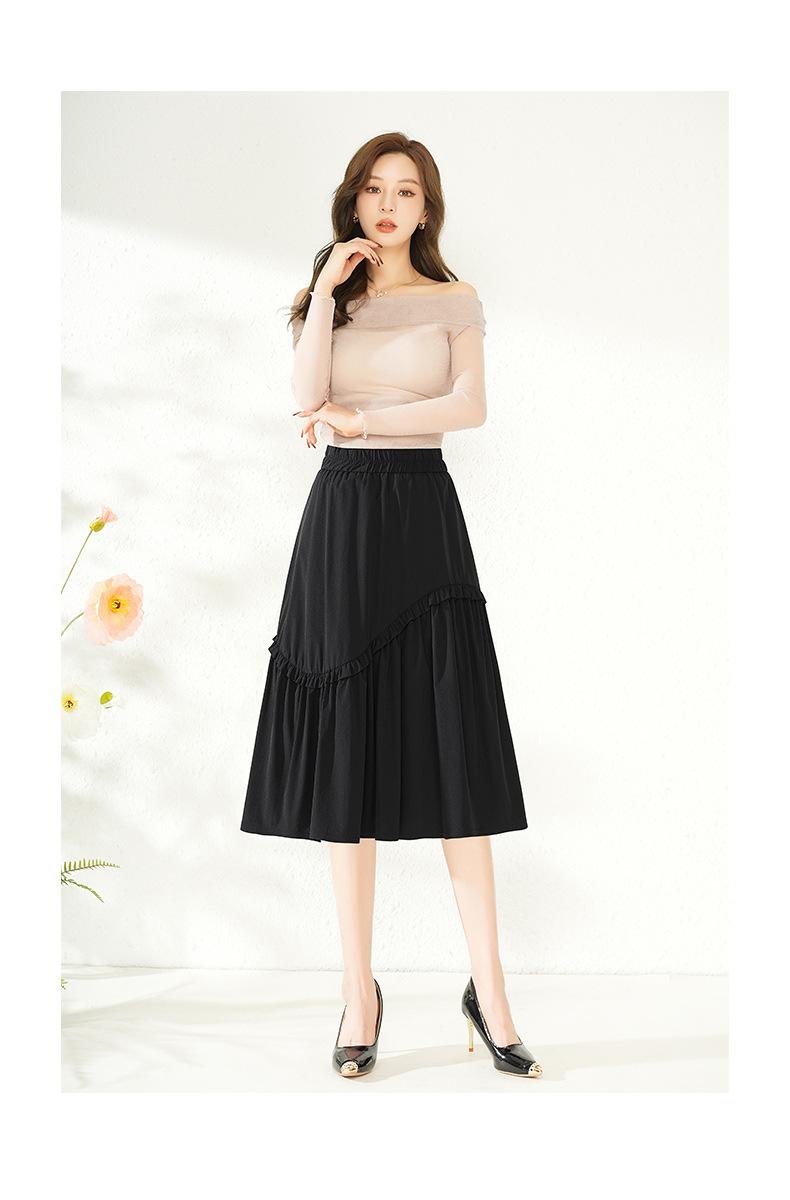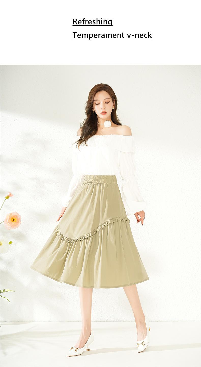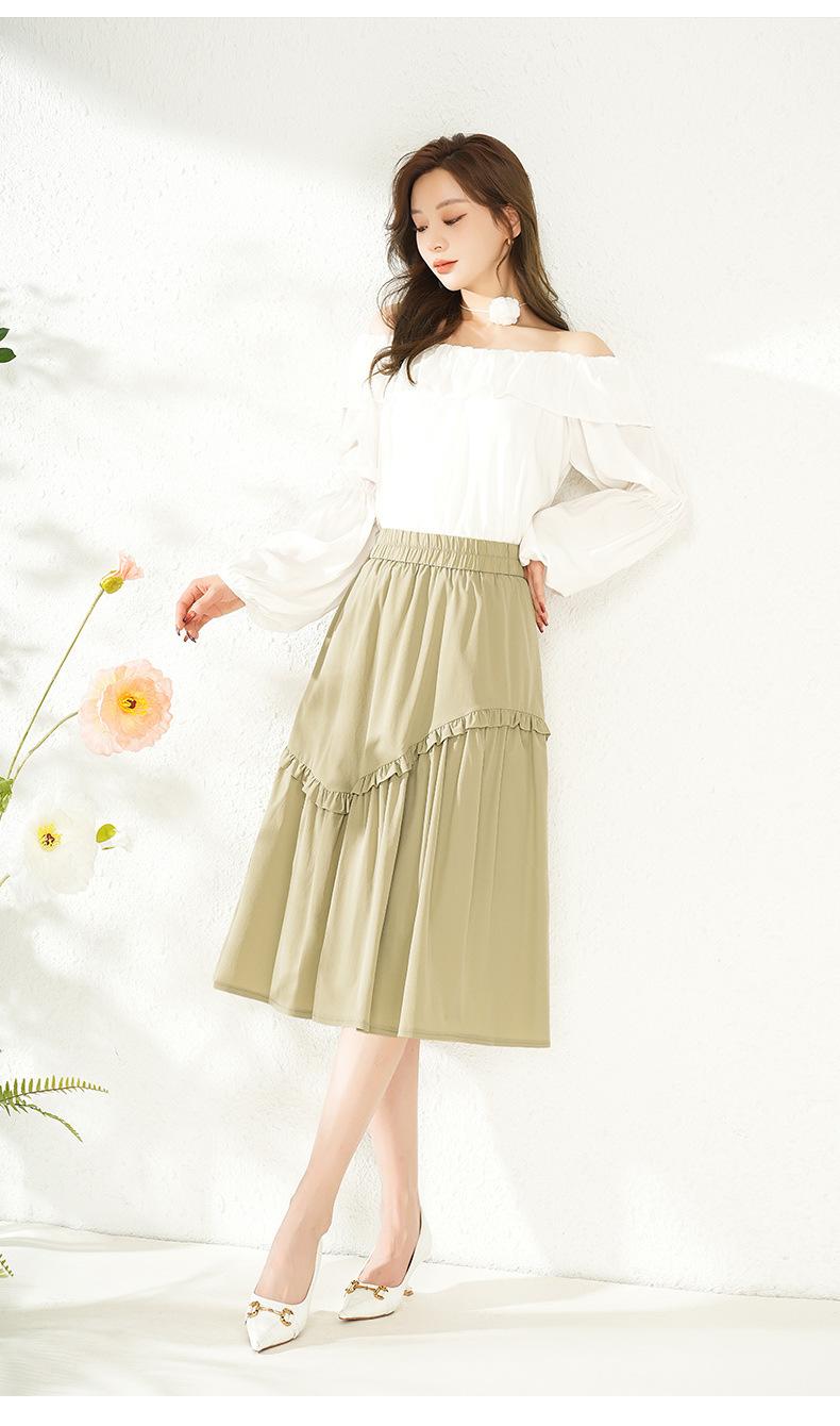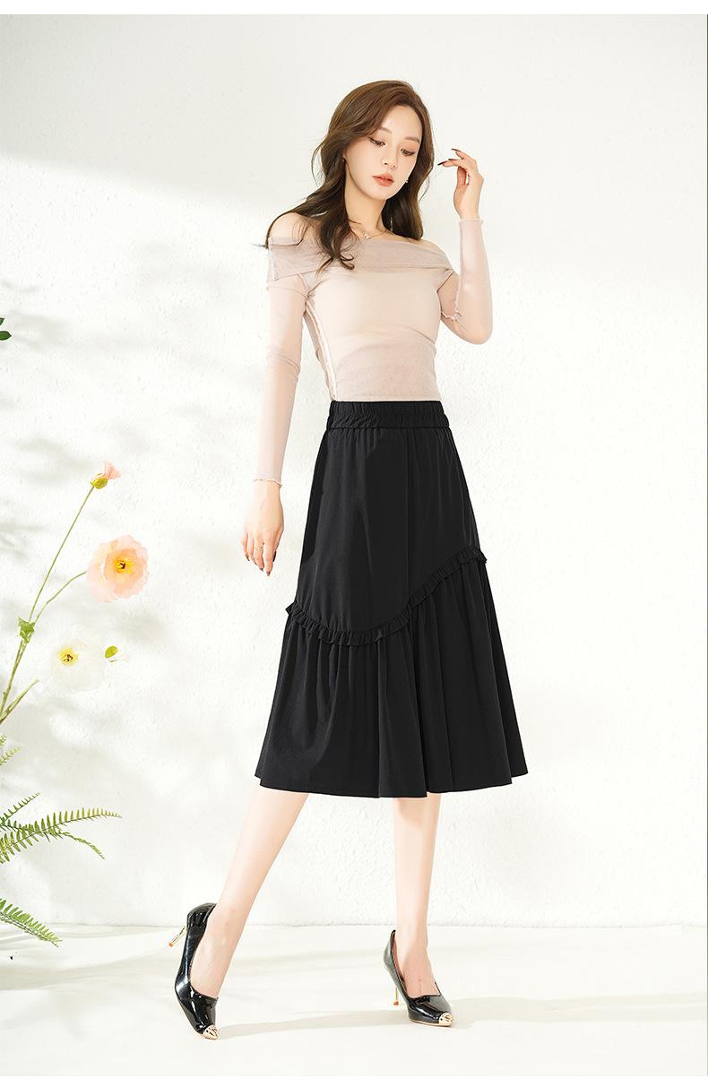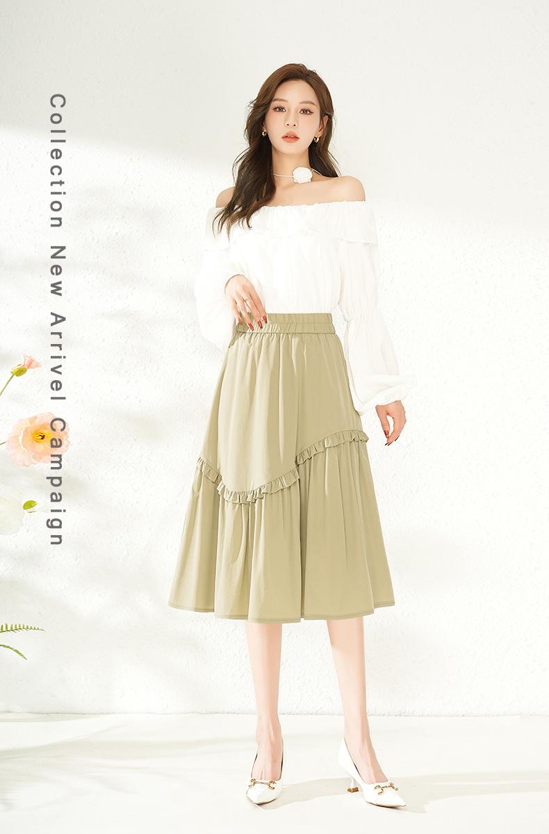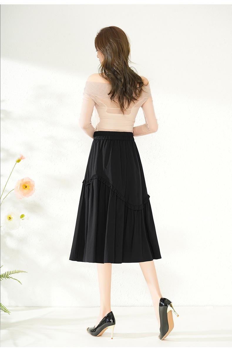 Falda casual acampanada de cintura elástica para mujer 2025 Verano Nuevo Estilo Coreano Falda plisada delgada Falda de largo medio con dobladillo amplio
