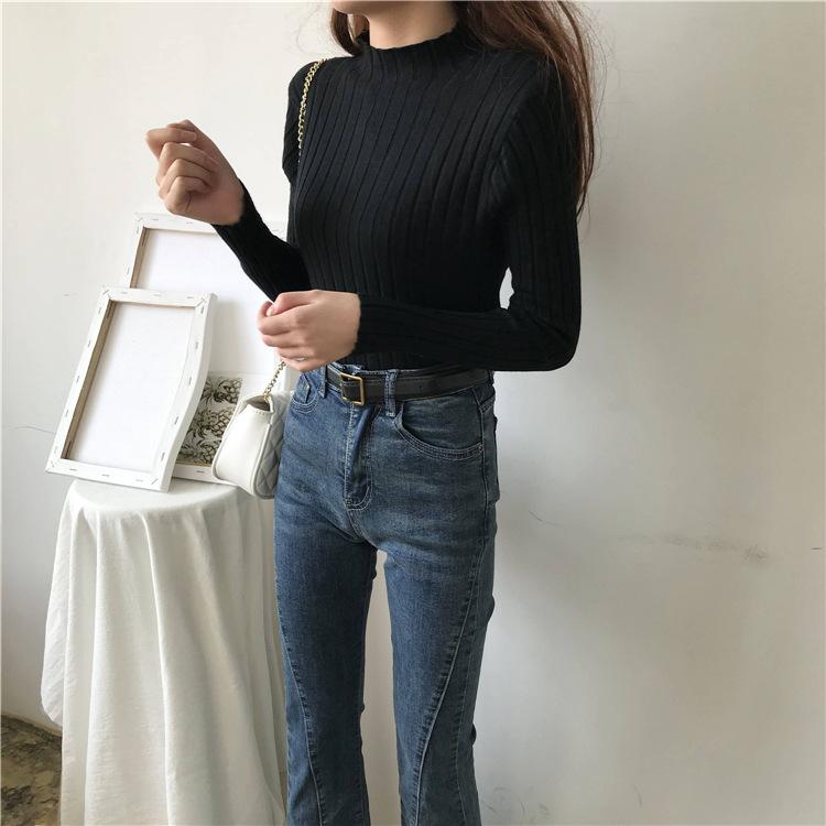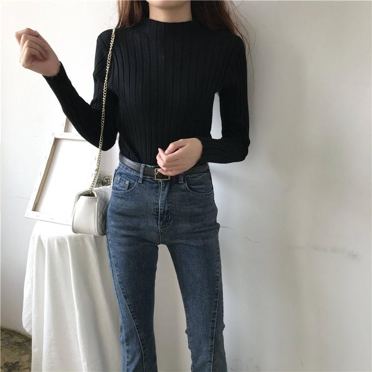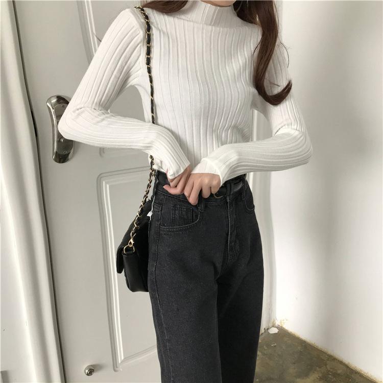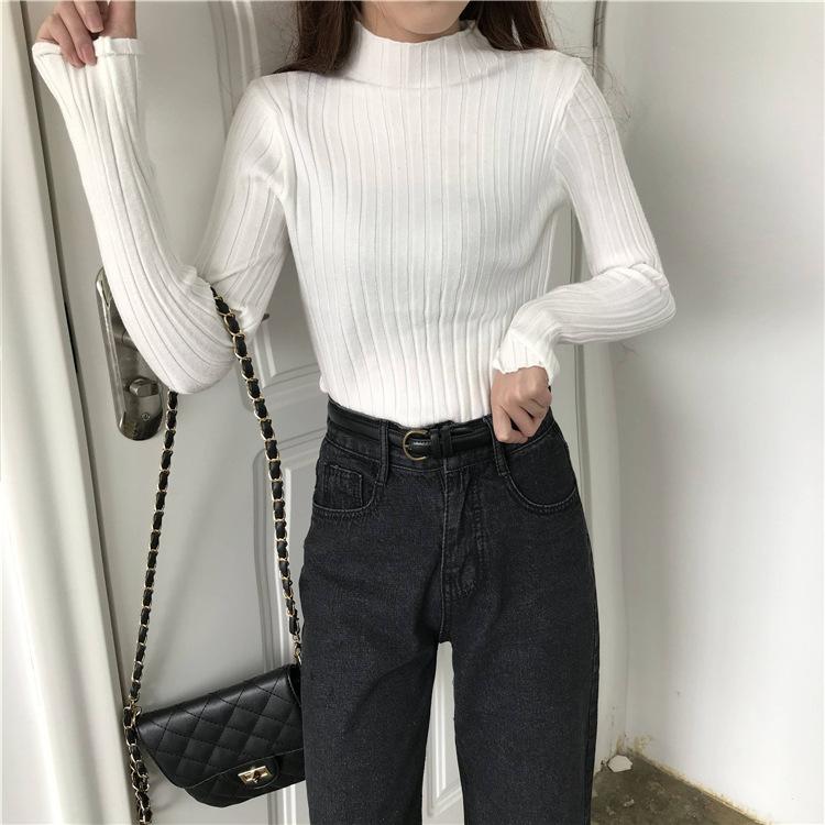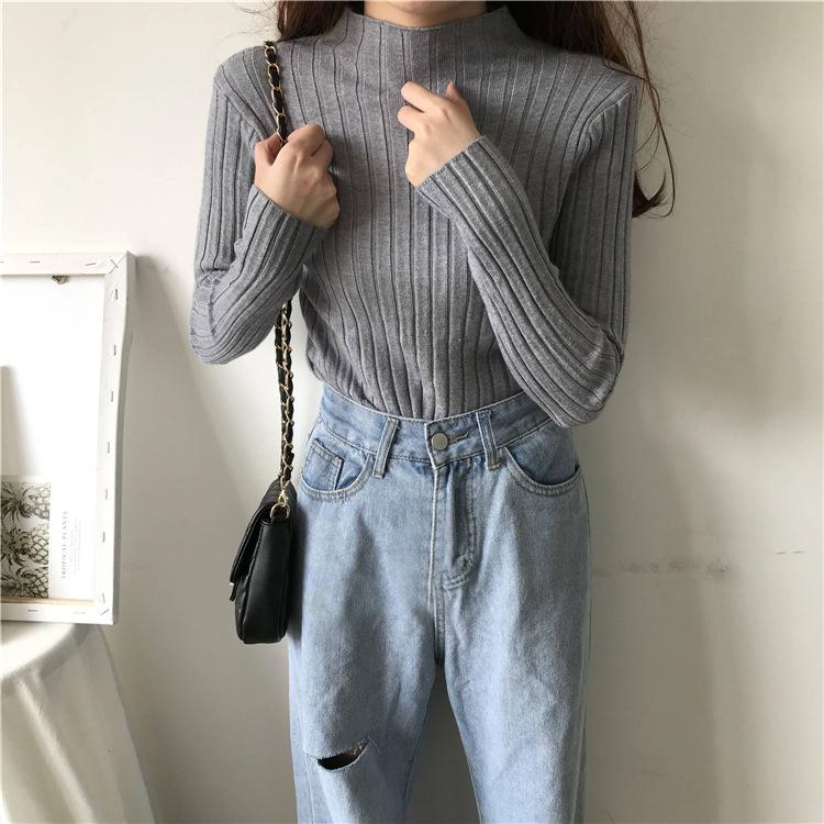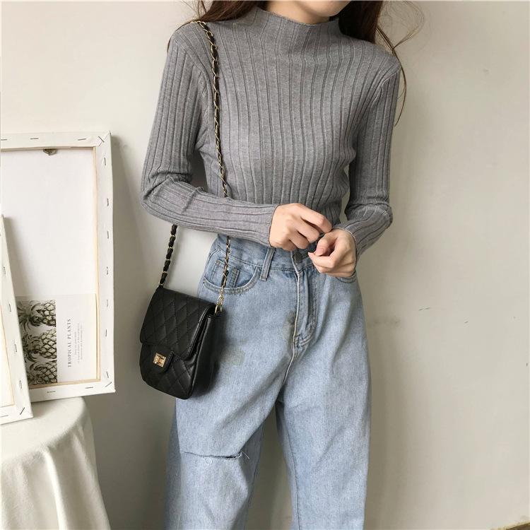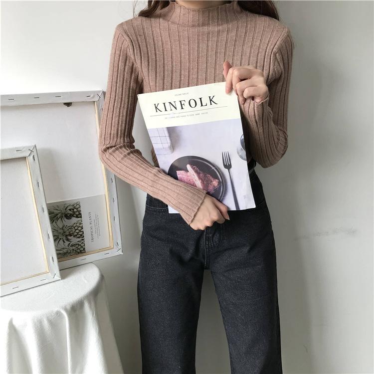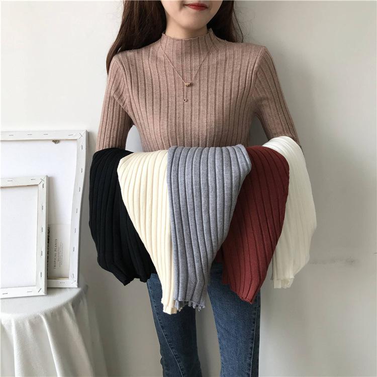 Un gran número de suéteres de punto holgados de temporada para mujer de primavera y otoño 2023 con cuello semi-alto y base