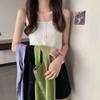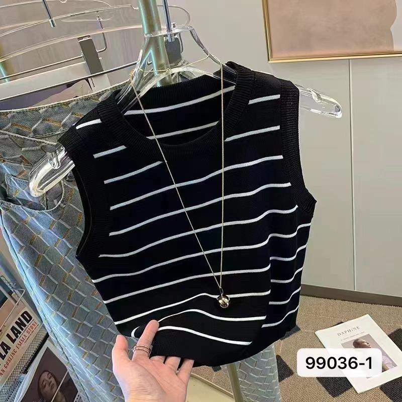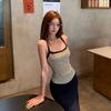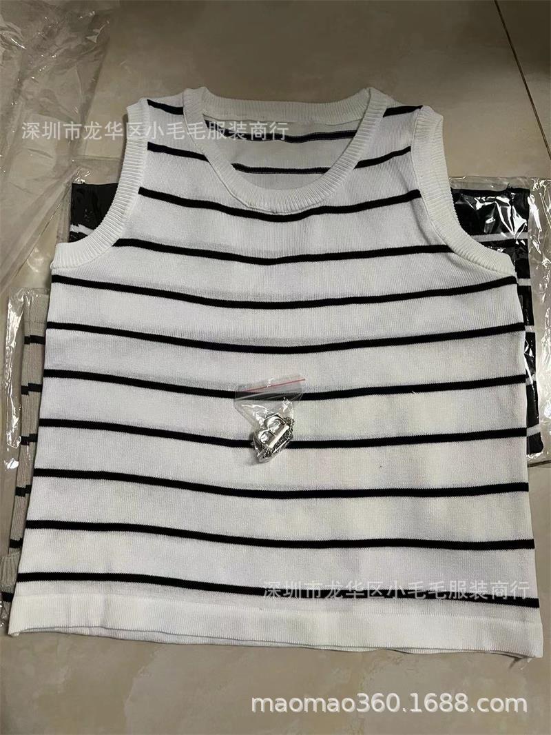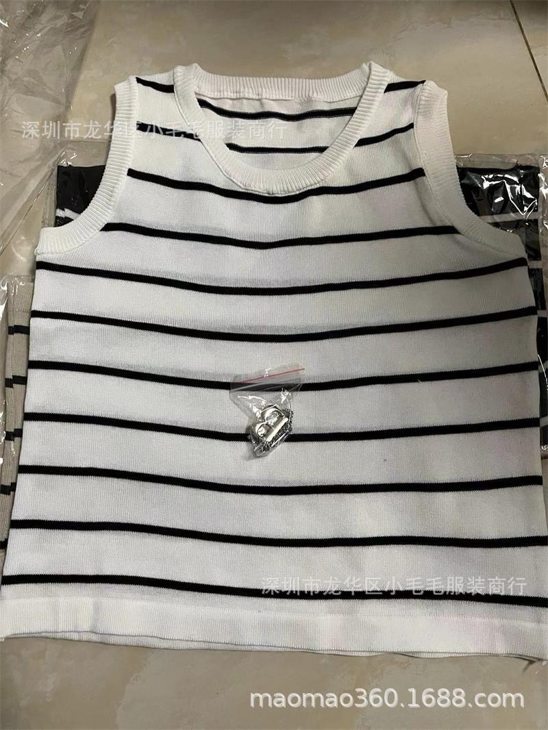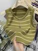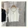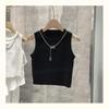 Suéter de punto con cadena y cuello redondo corto de verano 2023, camiseta sin mangas de color liso y corte entallado