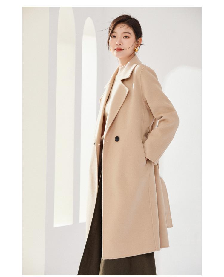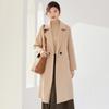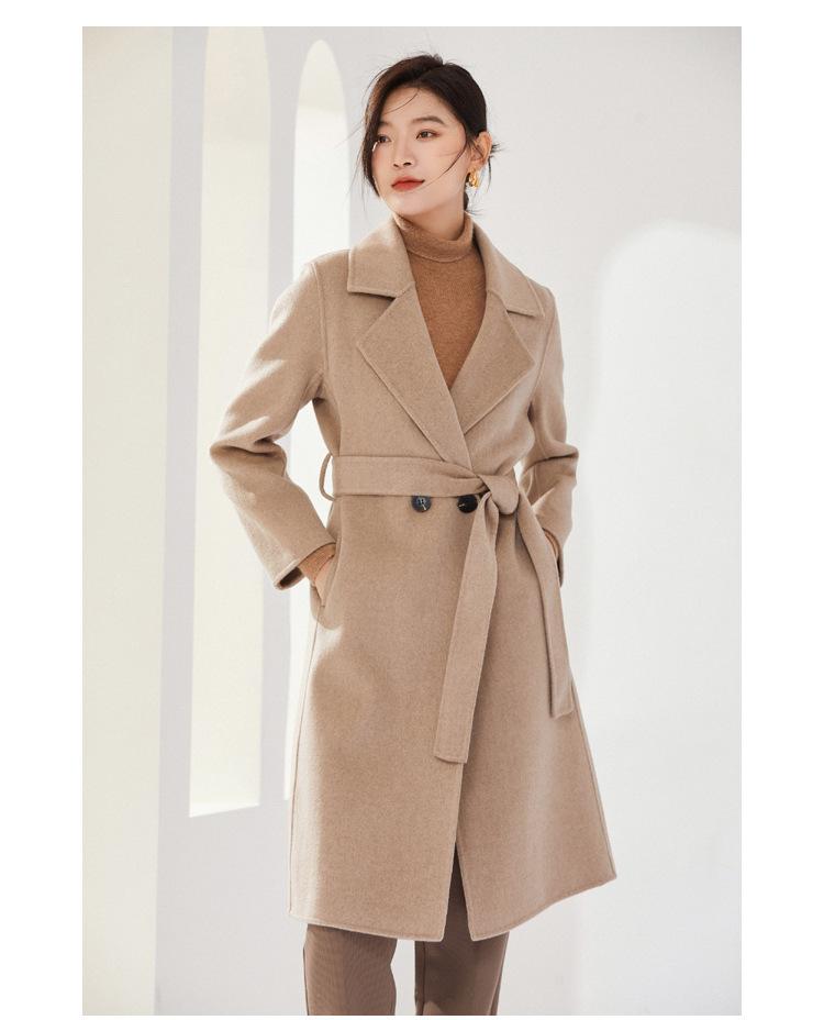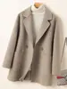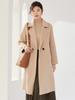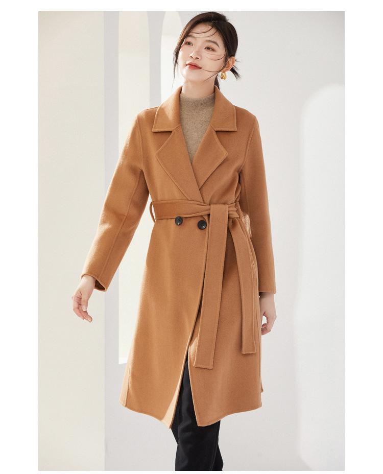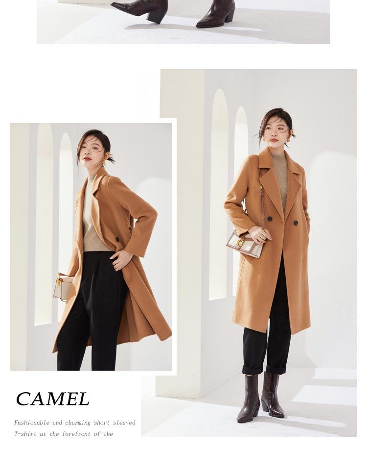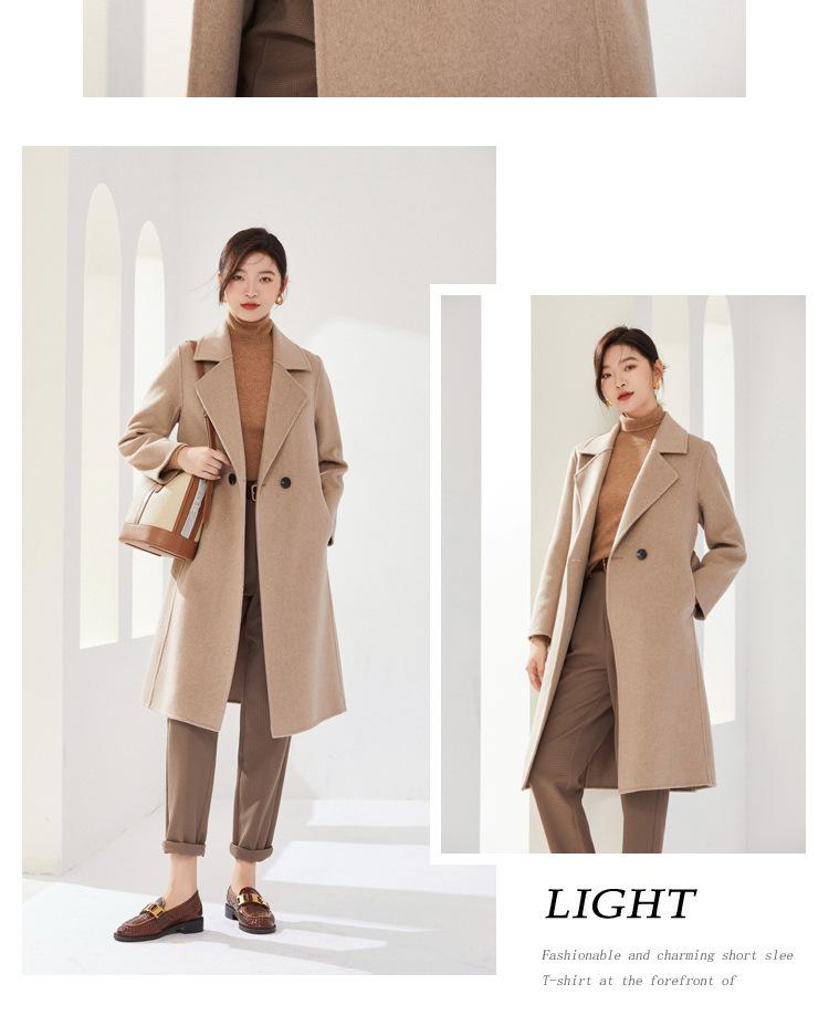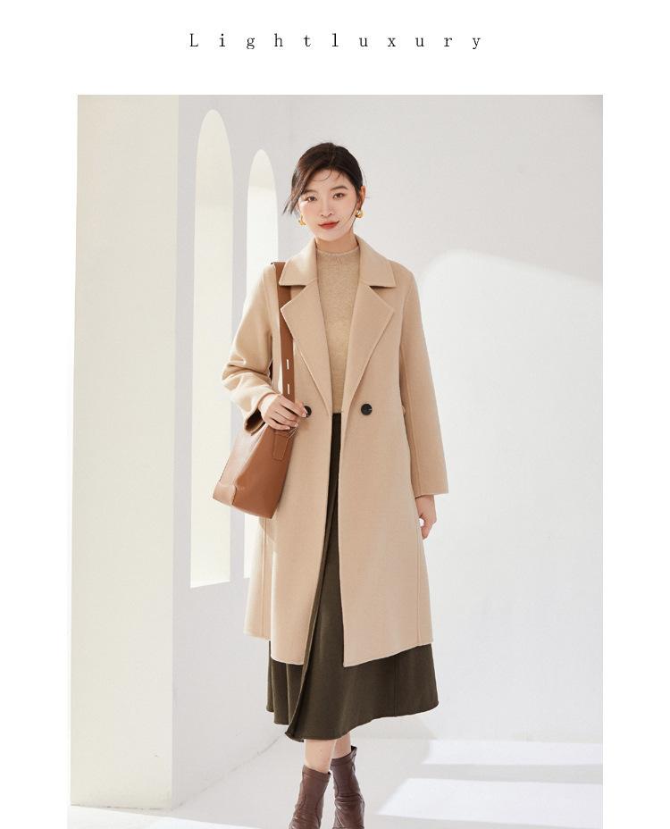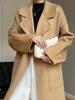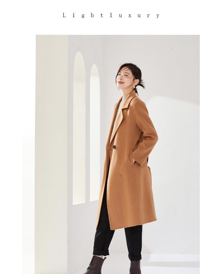 Abrigo de lana de doble cara de otoño e invierno para mujer, abrigo de lana de doble cara color camel con cuello de traje holgado hasta la rodilla de longitud media para mujer